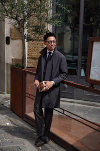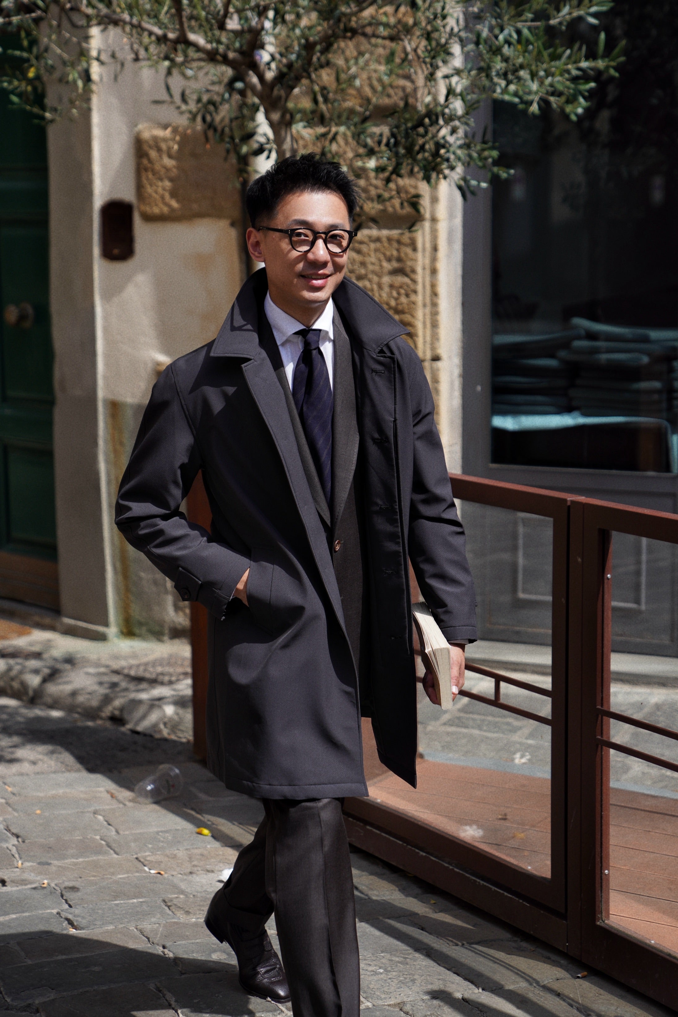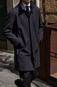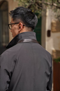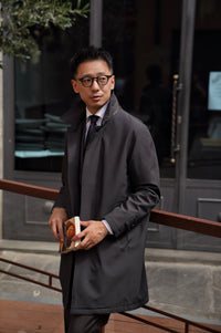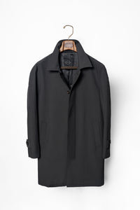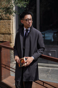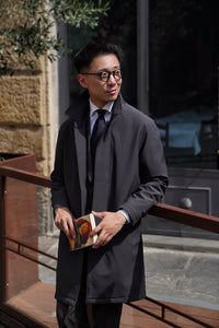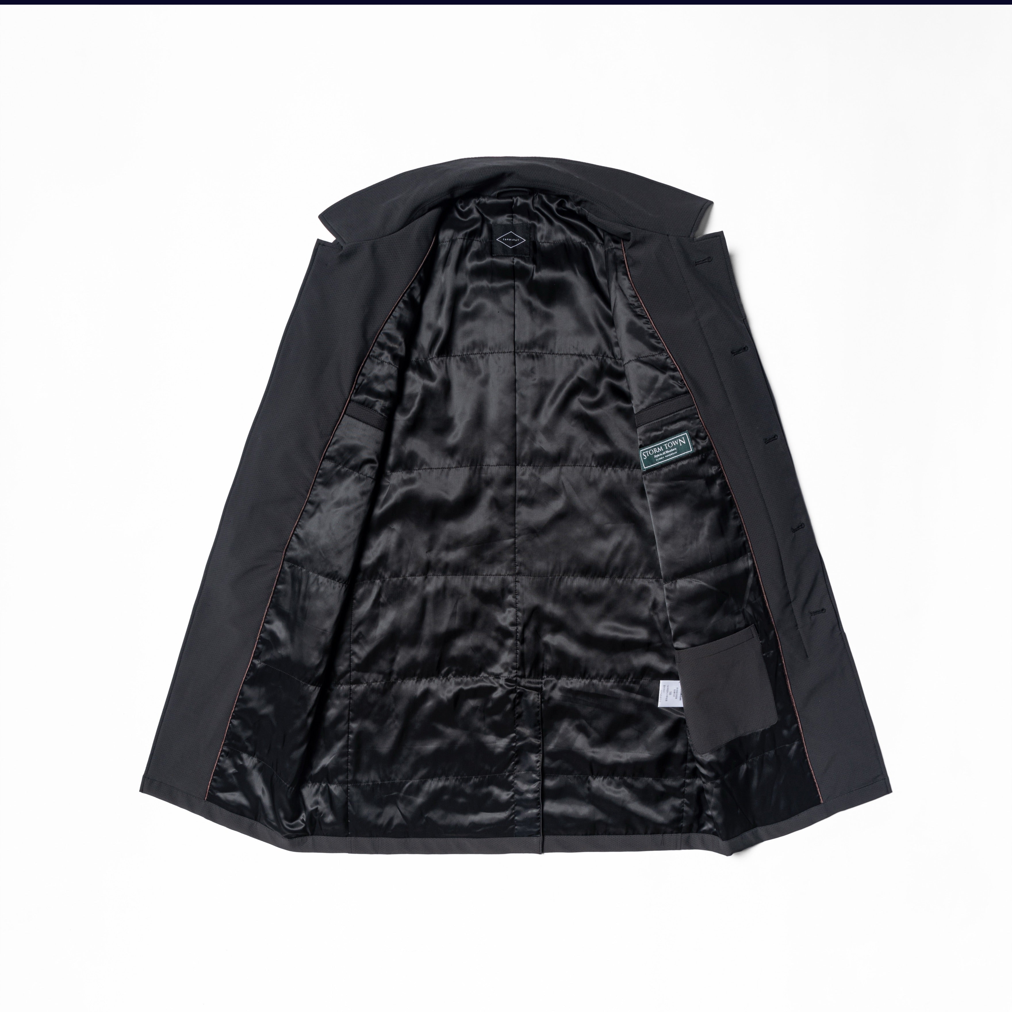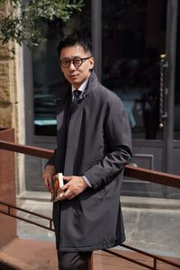 The Charcoal Nylon Mac Coat is a modern reinterpretation of a British classic, crafted from lightweight nylon in a deep charcoal tone. Designed with clean lines and a minimalist silhouette, it forgoes the military details of the trench in favor of understated elegance. The nylon shell offers durability and weather resistance, making it a practical yet refined outer layer that transitions seamlessly between smart and casual ensembles.