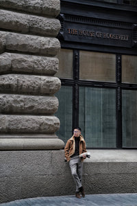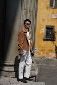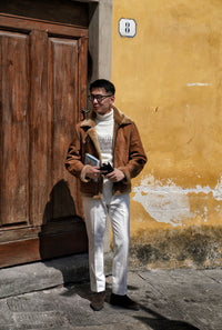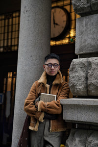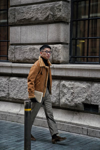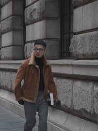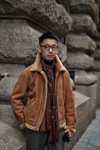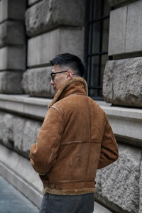 • The Tobacco Lambskin Shearling B3 Flight Jacket is a heritage-inspired icon, crafted from supple lambskin with a full shearling lining for exceptional warmth. Presented in a rich tobacco tone, the jacket retains the classic B3 design elements—broad shearling collar, heavy-duty zips, and reinforced panels—originally developed for aviators. Combining rugged functionality with timeless style, it delivers both comfort and character, making it a standout piece for cold-weather wear.