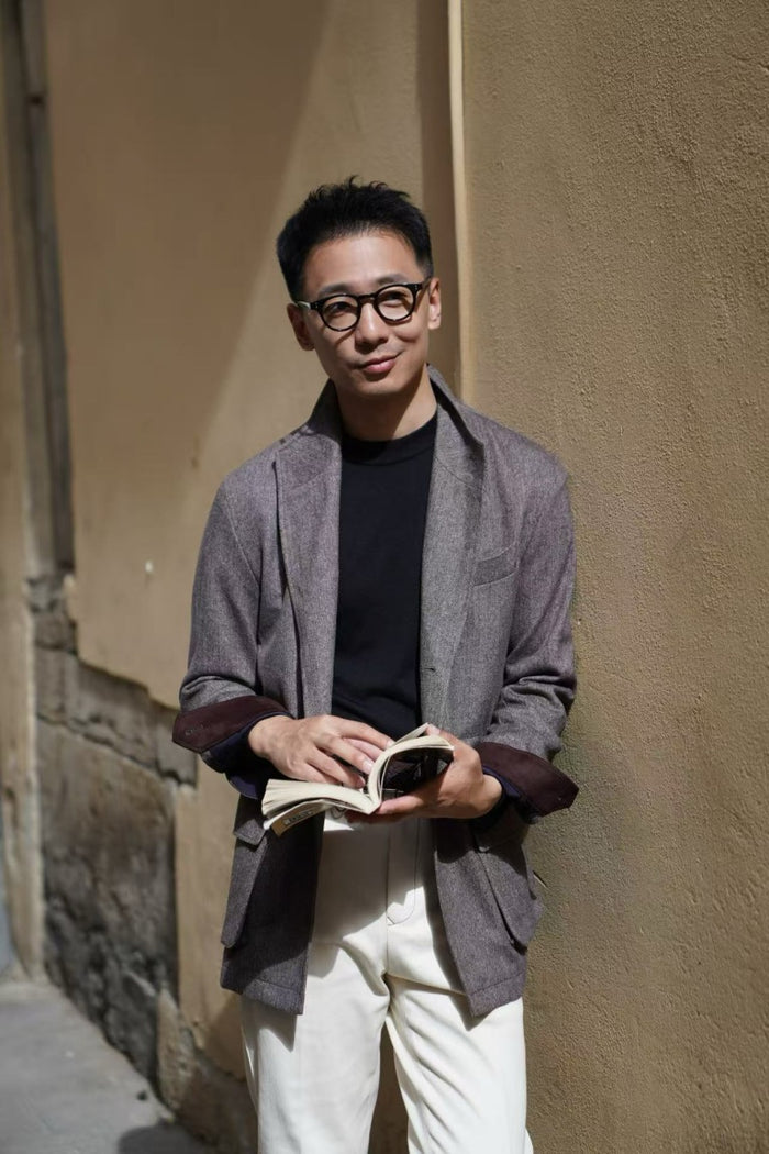 Taupe Herringbone Silk Wool Teba Jacket #221