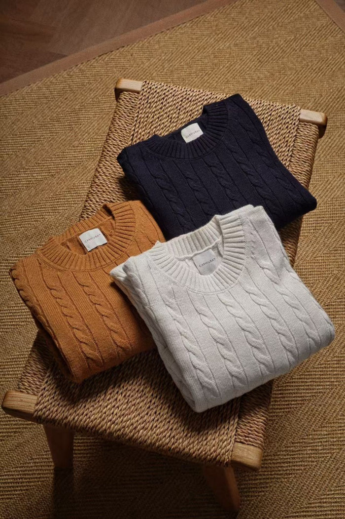 Navy / Ginger / Beige Crew Neck Cable Knit Jumper