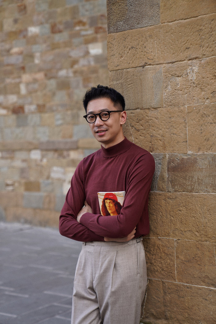 Black / Burgundy Silk Cashmere Crew Neck