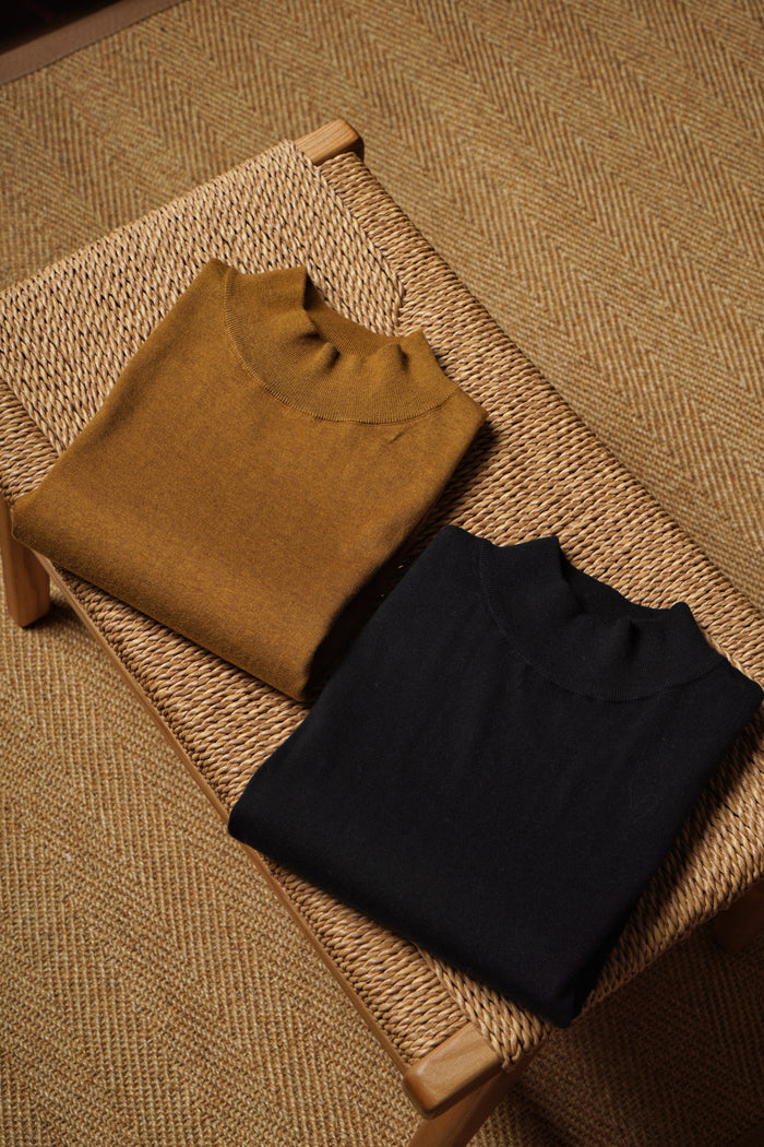 Tobacco/Black Silk Cashmere Knitted Polo