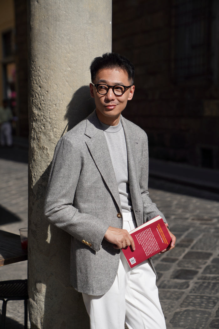 Foggy Blue / Honey Gold / White Cotton Silk Knitted Polo