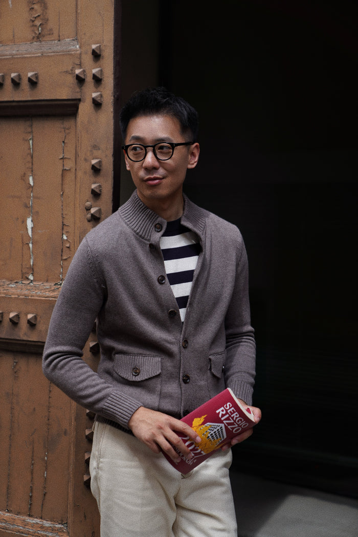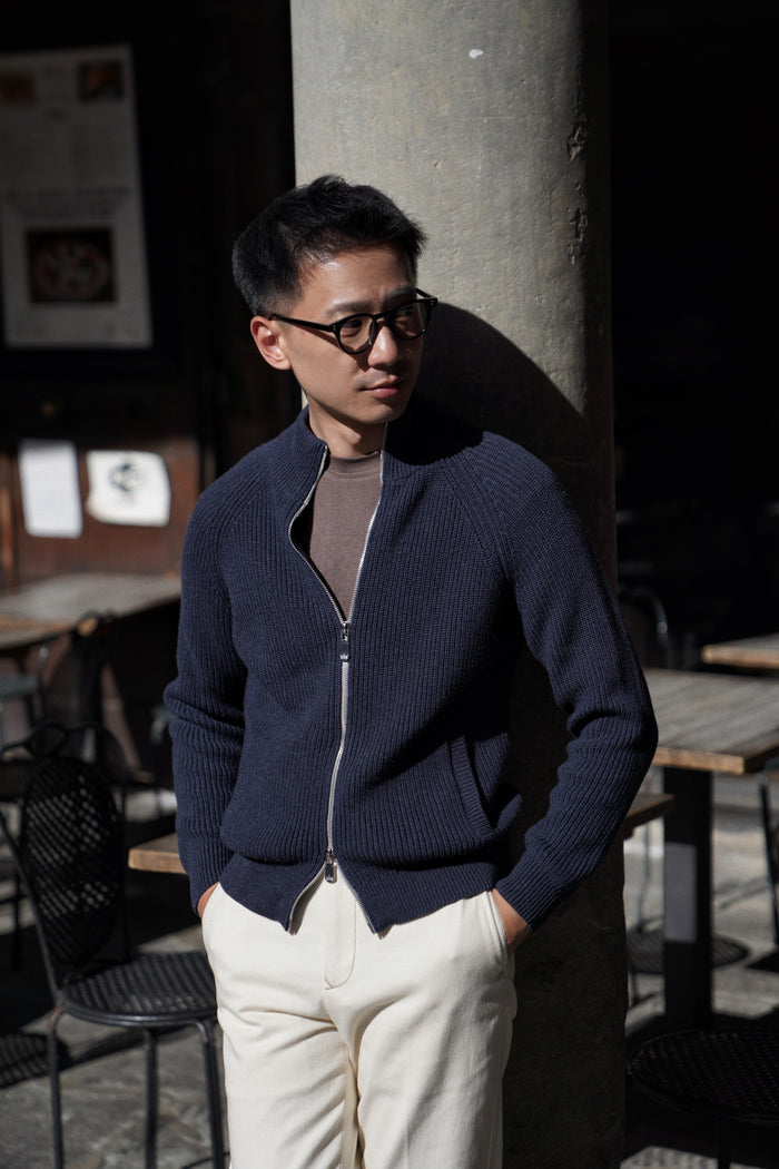 Navy / Tobacco Cotton Cashmere Knitted Breton Polo