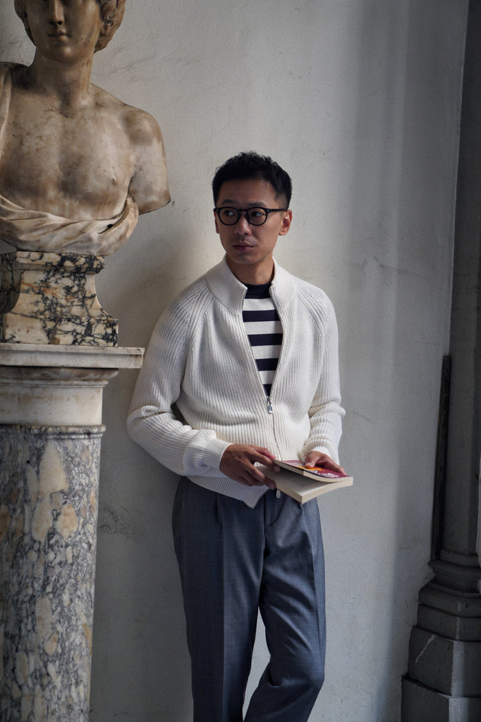 White Knitted Zip Cardigan