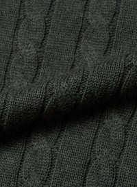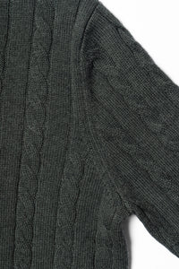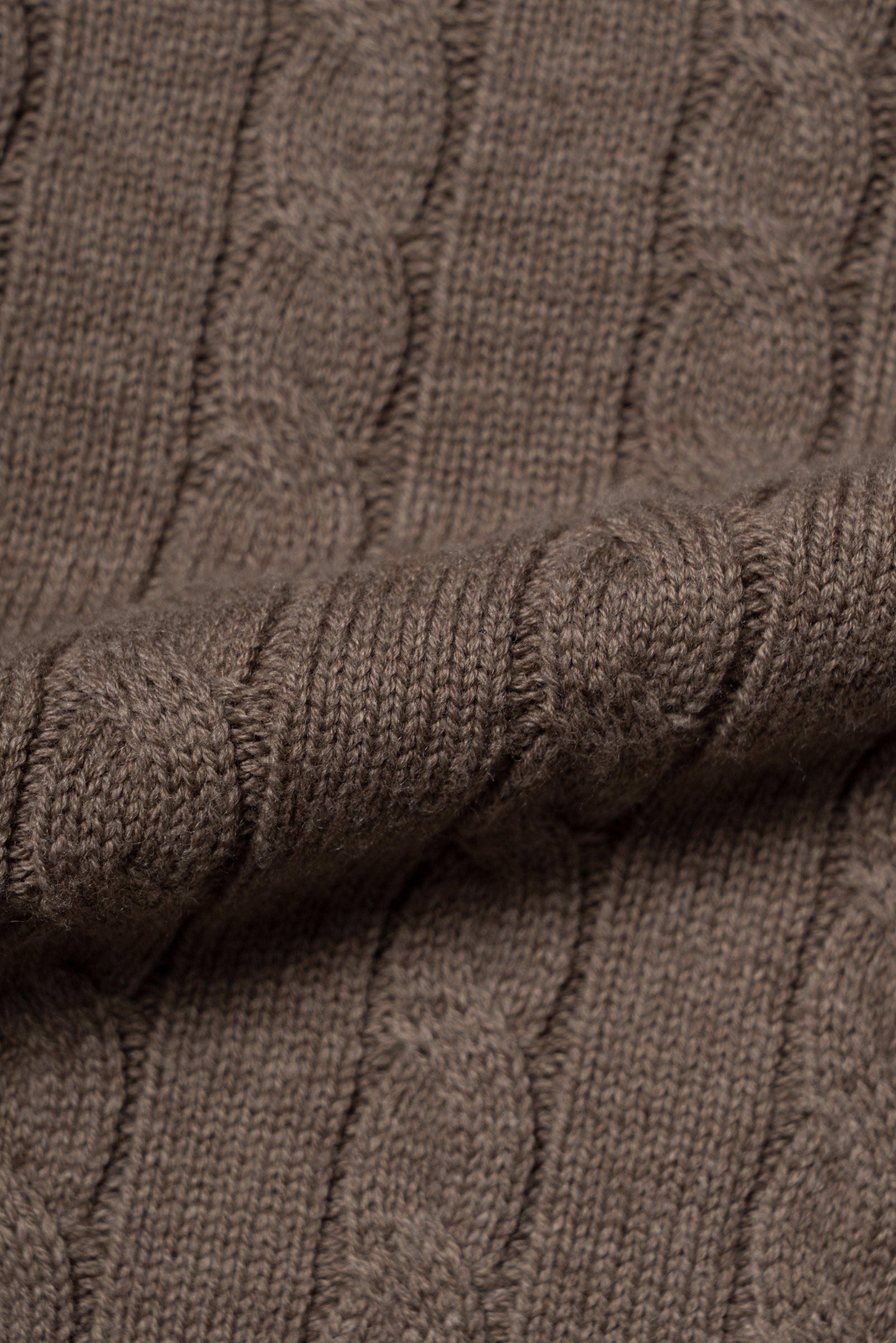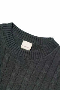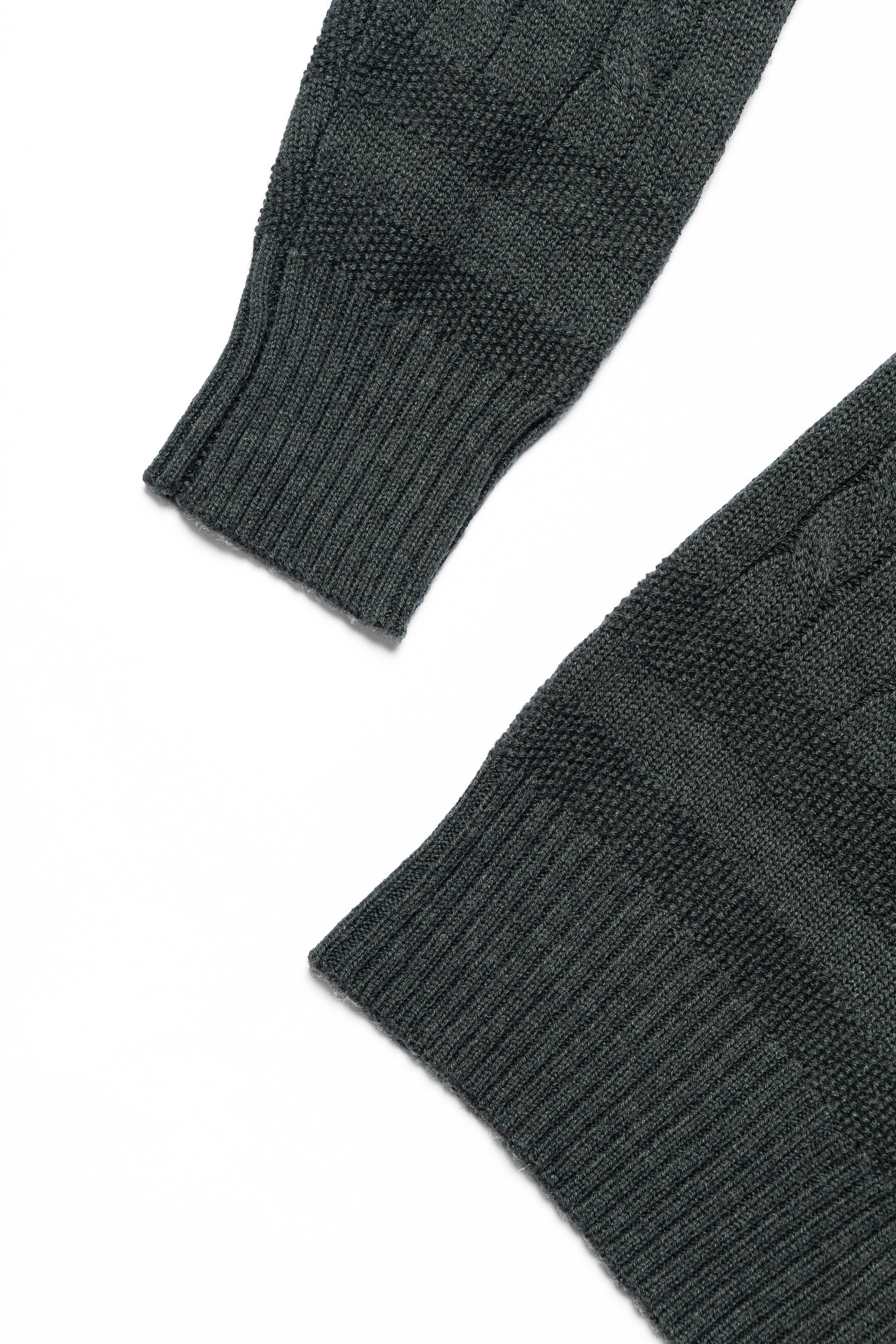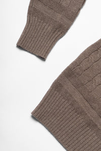 Forest / Taupe Crew Neck Cable Knit Jumper