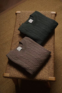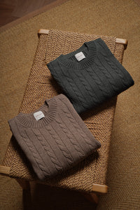 The Crew Neck Cable Knit Jumper is a classic essential, offered in two versatile shades: Forest and Taupe. Crafted from soft, breathable knit, it features a traditional cable pattern and a crew neck for a comfortable yet refined fit. Ideal for layering or wearing solo, both colorways provide timeless style and everyday ease.