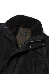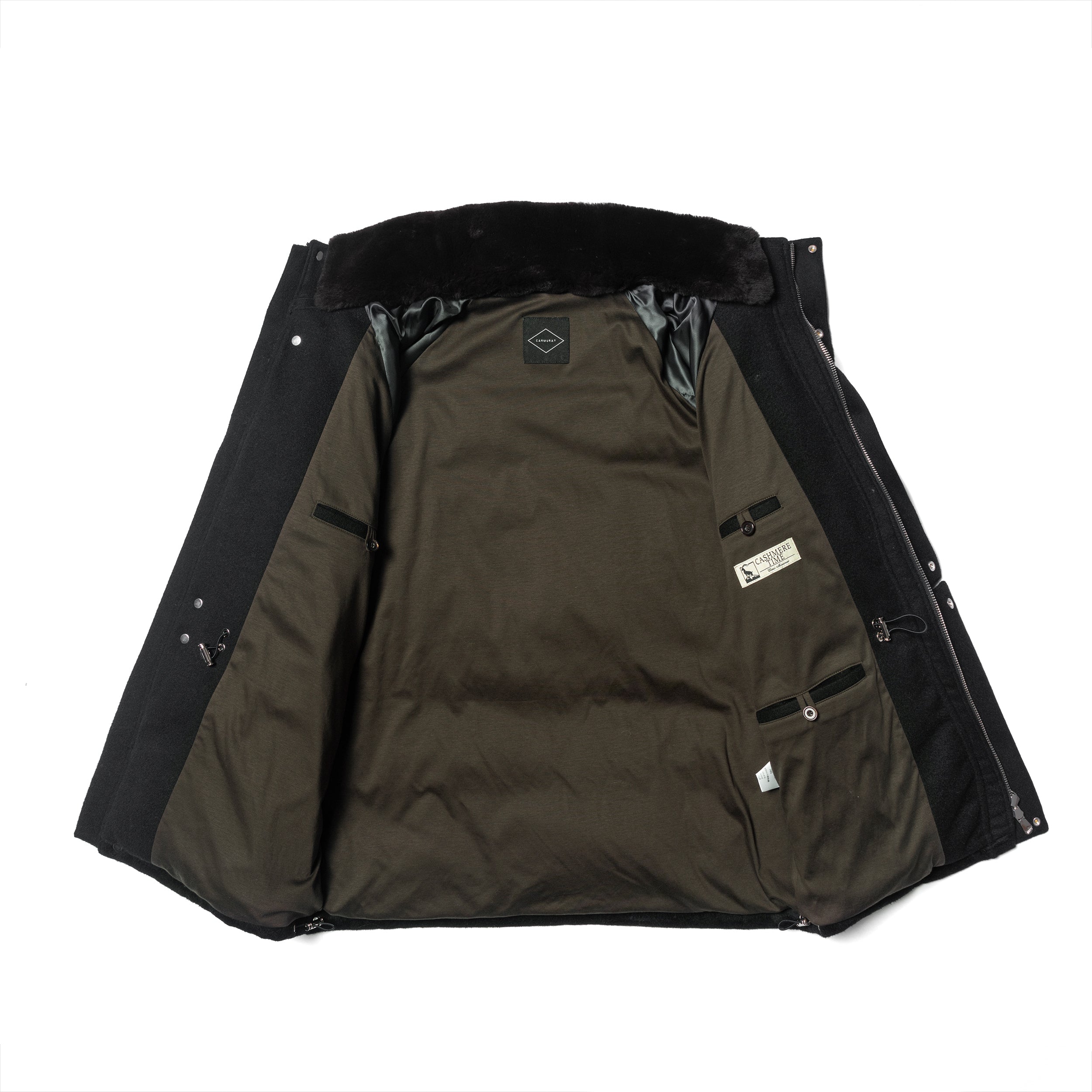 • The Black Wool Cashmere Down Ski Jacket is crafted from a luxurious blend of wool and cashmere, providing exceptional warmth, softness, and a refined texture. Filled with premium down insulation, it ensures superior thermal performance while maintaining a lightweight feel. Its sleek black design combines sporty functionality with sophisticated elegance, making it perfect for both alpine adventures and stylish winter wear.