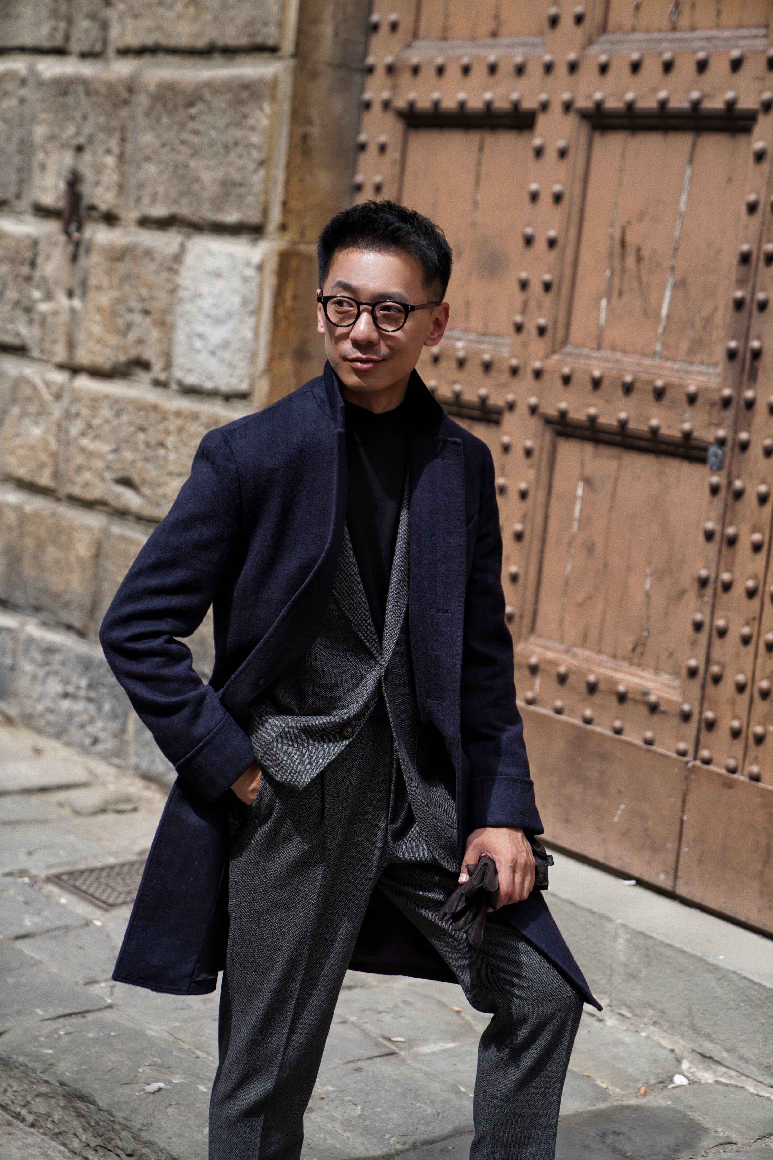 MTO Navy Herringbone Cashmere Chesterfield Coat #431