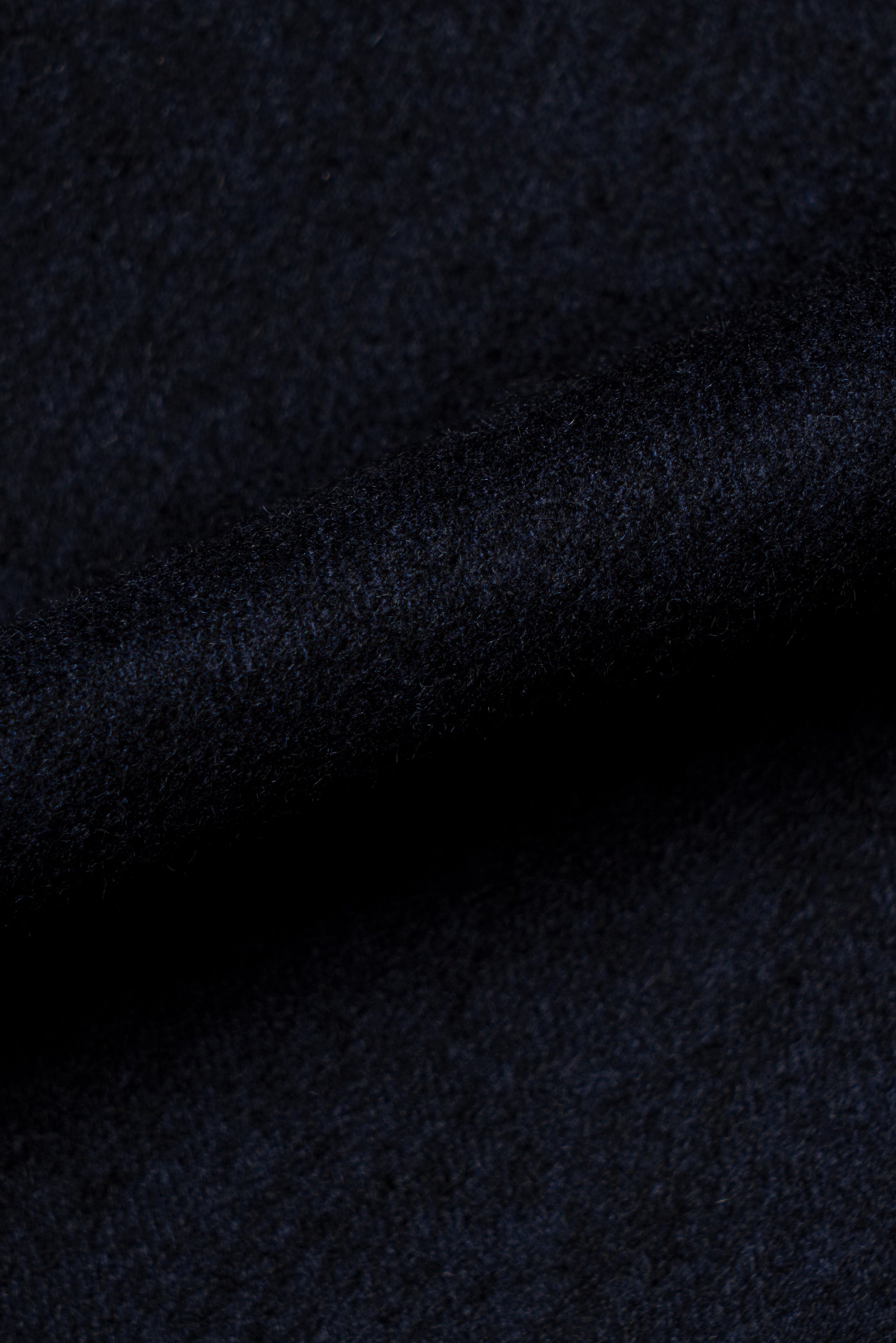 • Crafted in Italy from a richly textured navy herringbone cashmere, this Chesterfield coat epitomises understated luxury. The classic Chesterfield silhouette—single-breasted with a velvet collar, clean lines and a mid-length finish—meets the softness and refinement of premium cashmere. It is designed to sit perfectly over tailored suiting yet drapes effortlessly when worn over knitwear and dark denim, making it a versatile outerwear investment for the modern dress-aware gentleman.