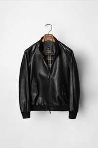 • The Black Sheepskin G9 Jacket is crafted from luxurious black sheepskin, featuring the iconic G9 jacket silhouette with front pockets and a structured fit that blends heritage design with refined texture.