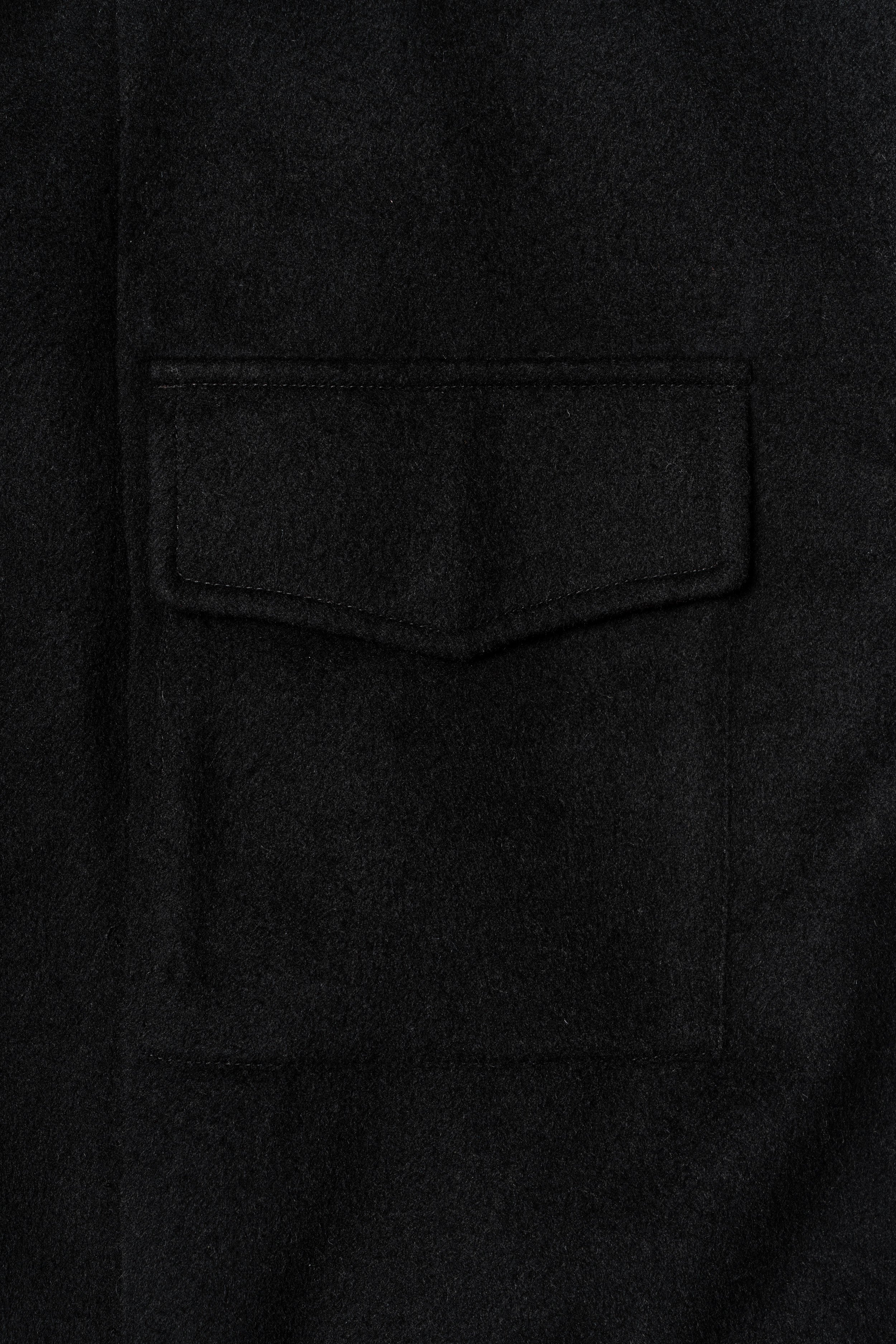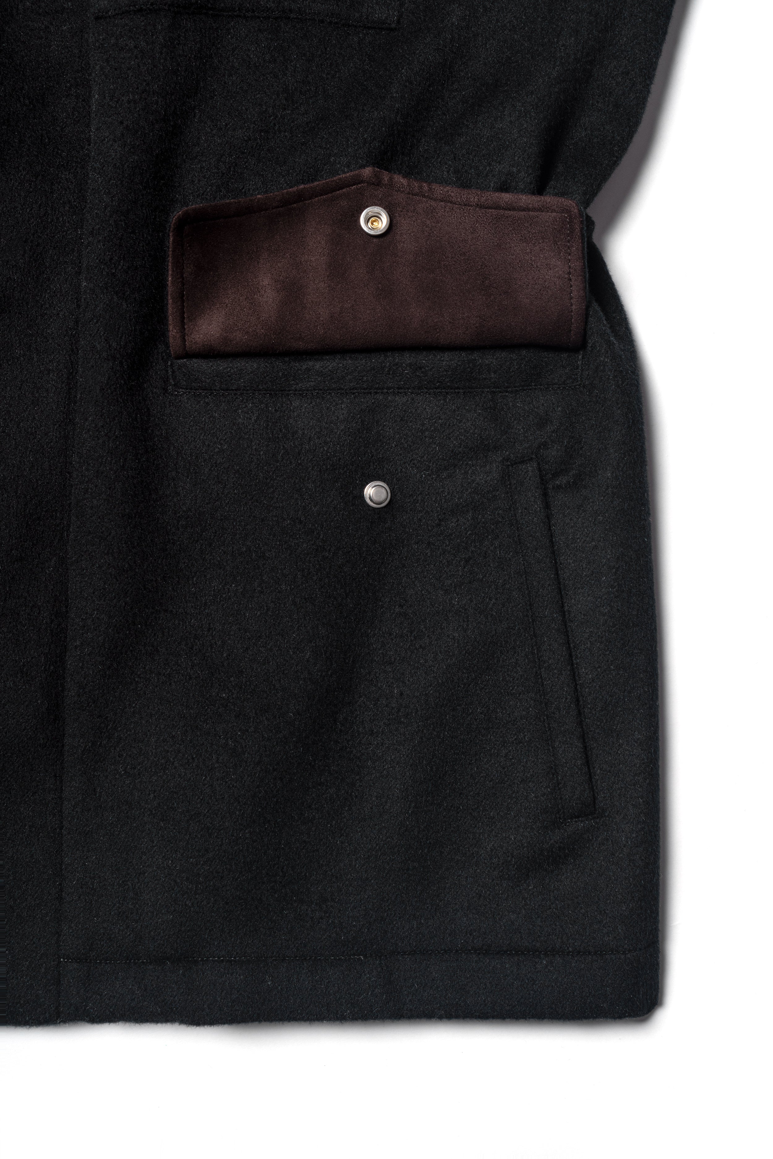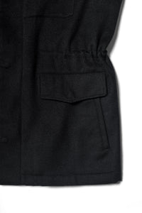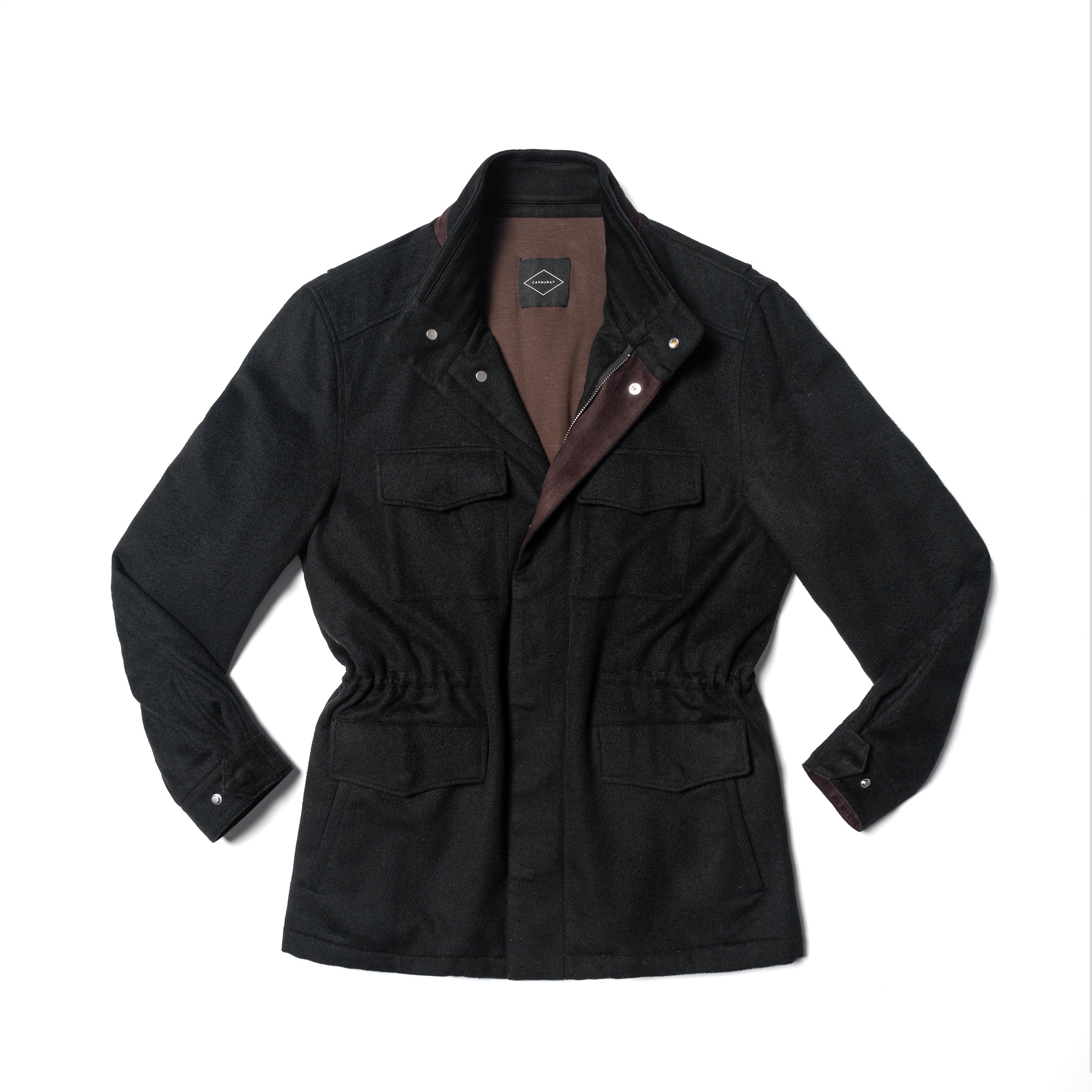 The Black Silk Camel Hair Wool M65 Jacket is a refined take on the iconic military field jacket. Crafted from a luxurious blend of silk, camel hair, and wool, it offers a soft hand-feel with subtle texture and natural warmth. Rendered in a deep black tone, it retains the utilitarian character of the M65 with a modern, sophisticated edge, making it a versatile piece for both urban and tailored wardrobes.