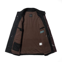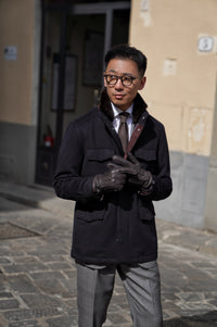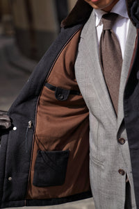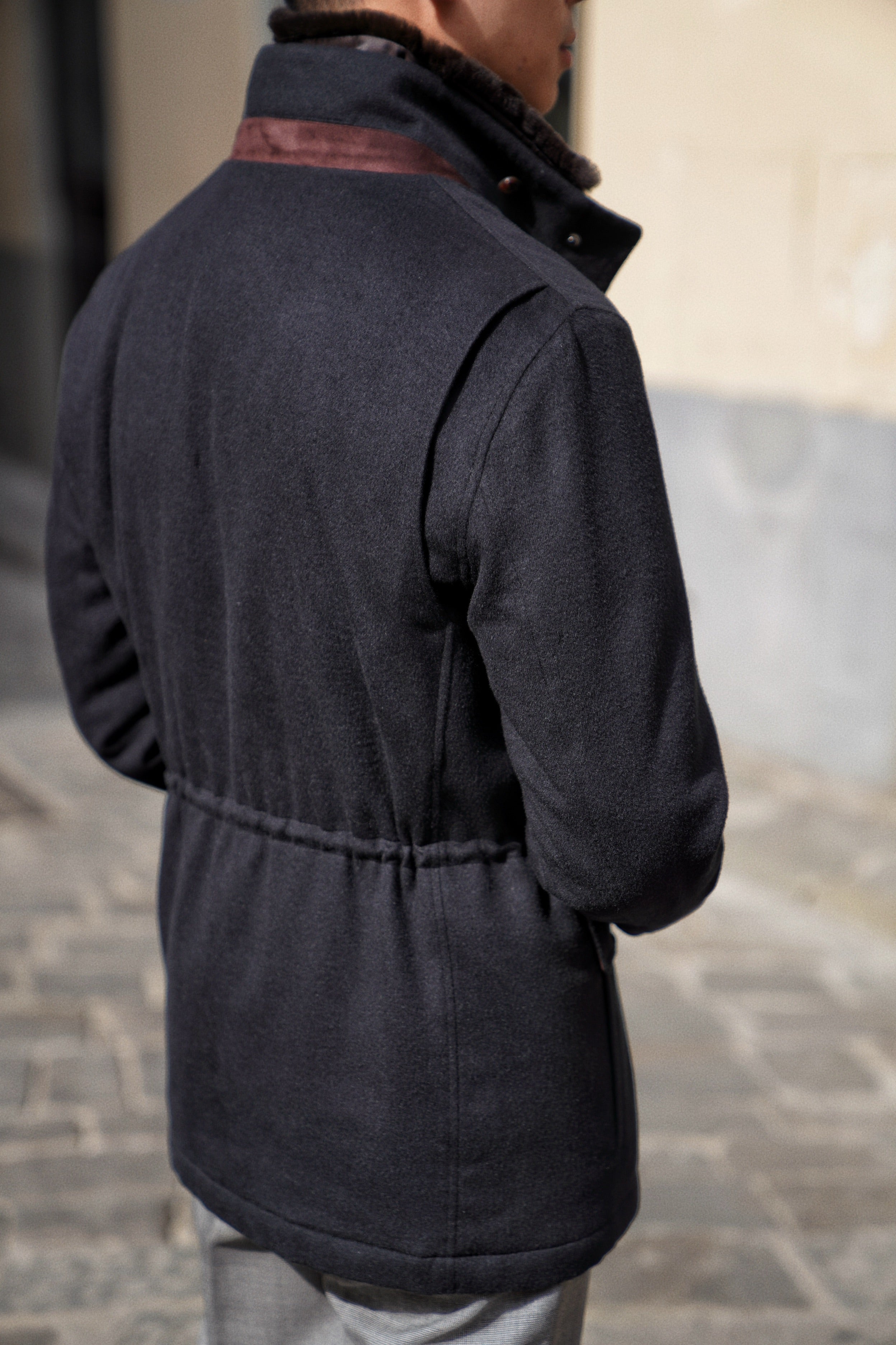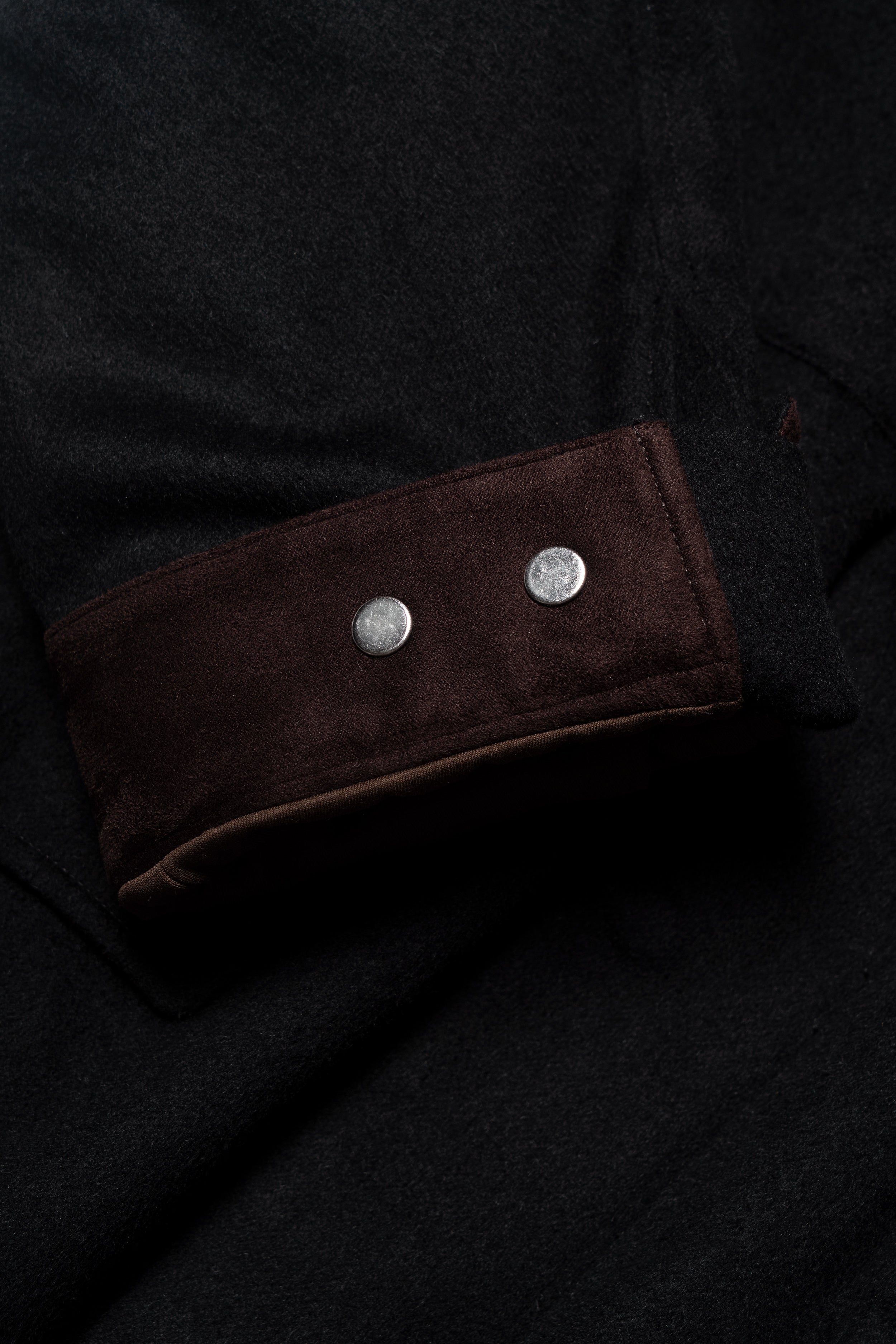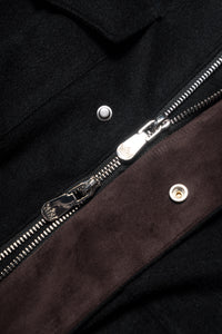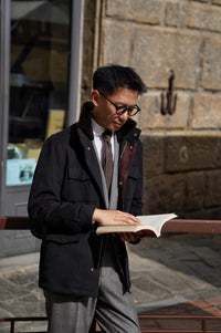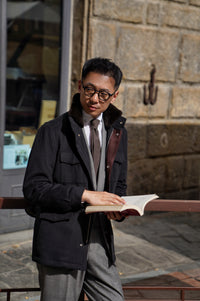 The Black Silk Camel Hair Wool M65 Jacket is a refined take on the iconic military field jacket. Crafted from a luxurious blend of silk, camel hair, and wool, it offers a soft hand-feel with subtle texture and natural warmth. Rendered in a deep black tone, it retains the utilitarian character of the M65 with a modern, sophisticated edge, making it a versatile piece for both urban and tailored wardrobes.