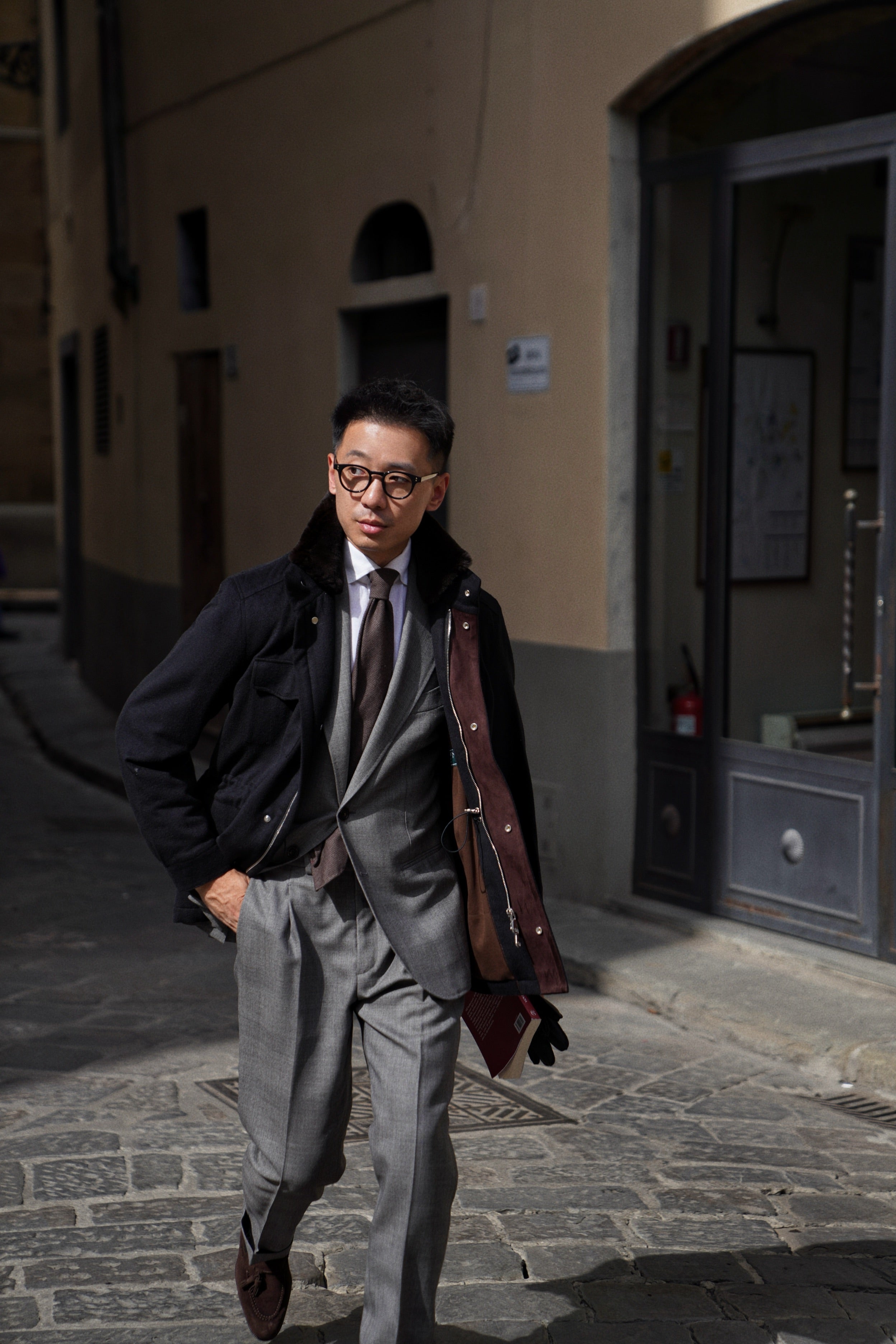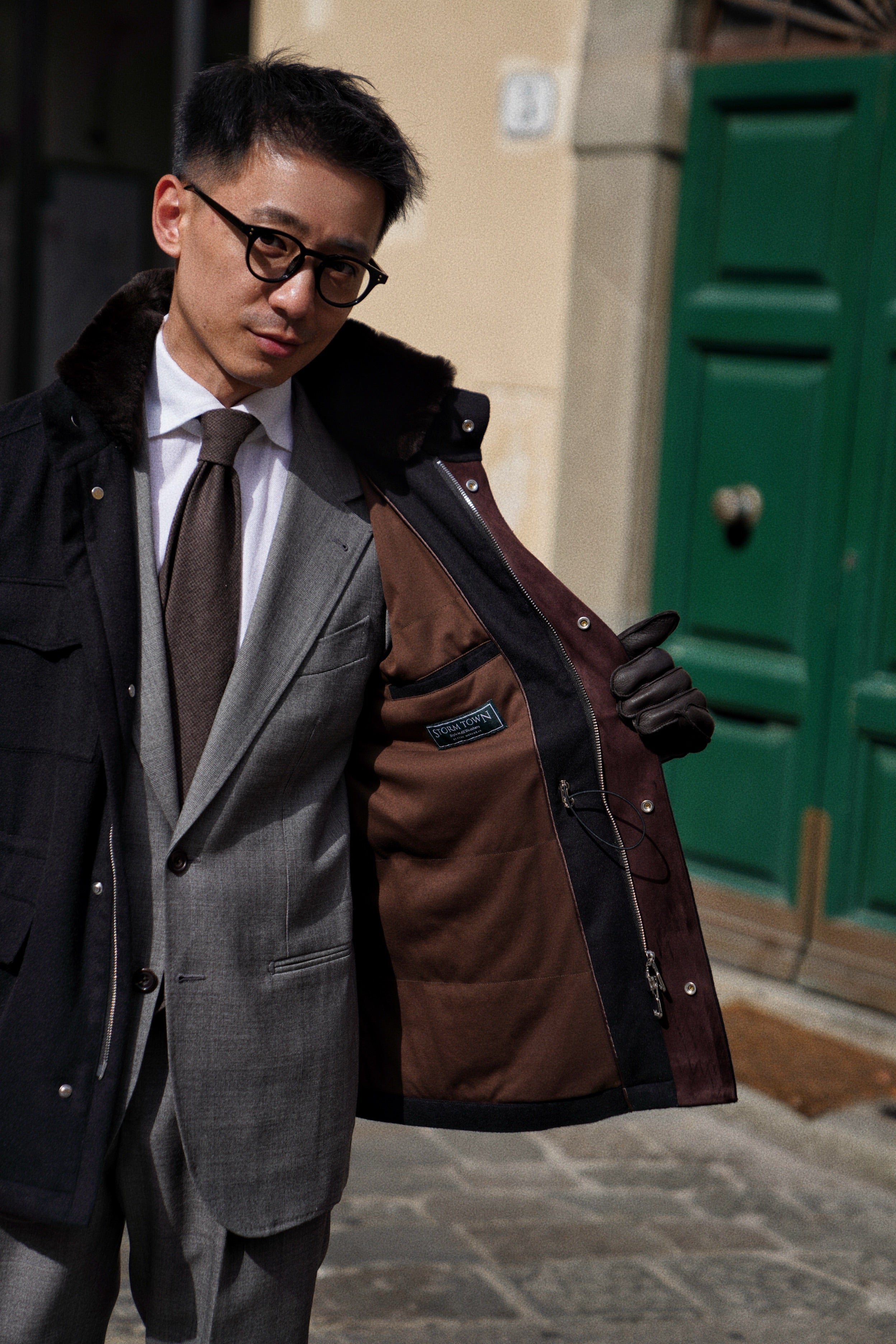 - 20% silk 10% camel hair 70% wool in 320g/m by CM Textile “Camel Silk”