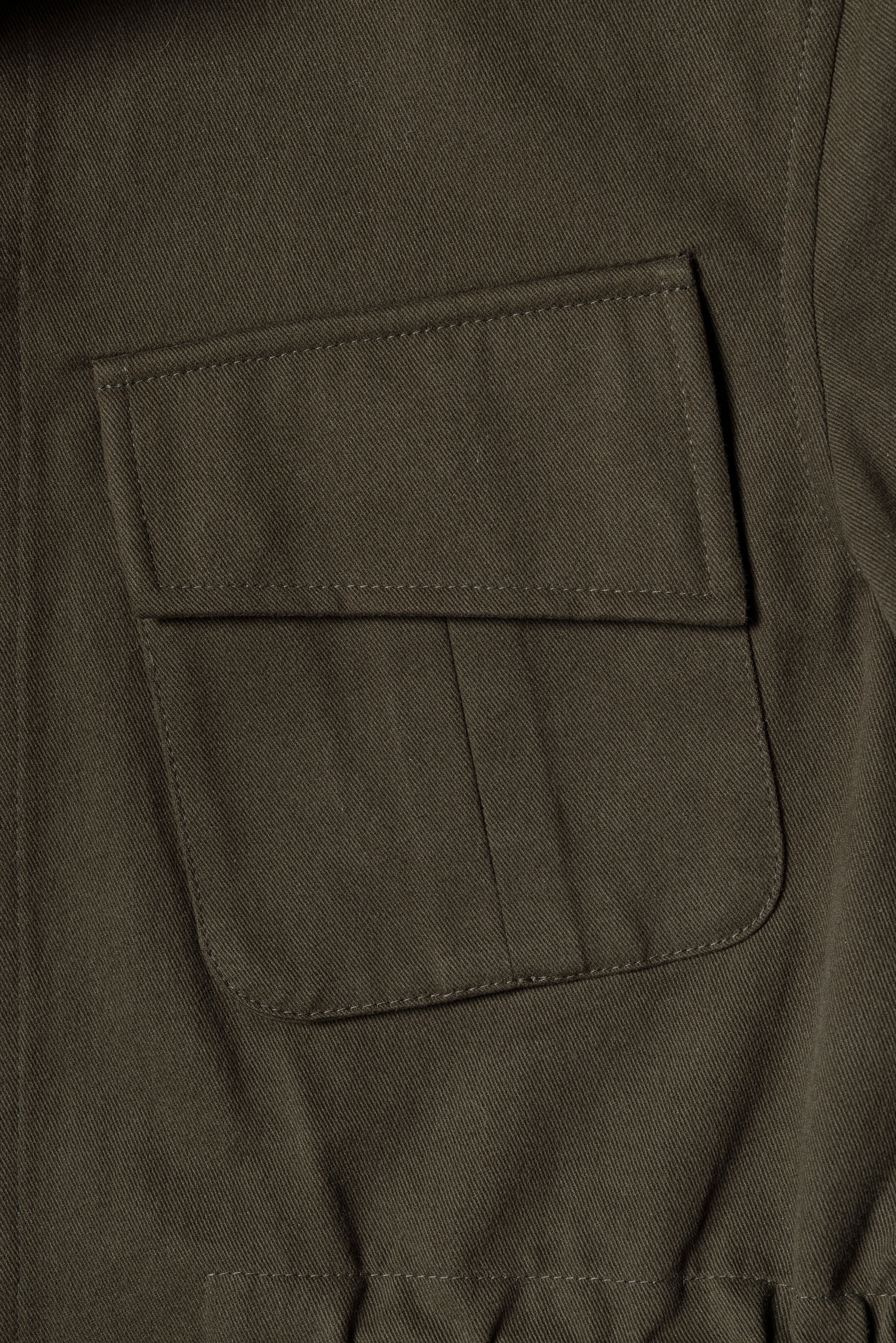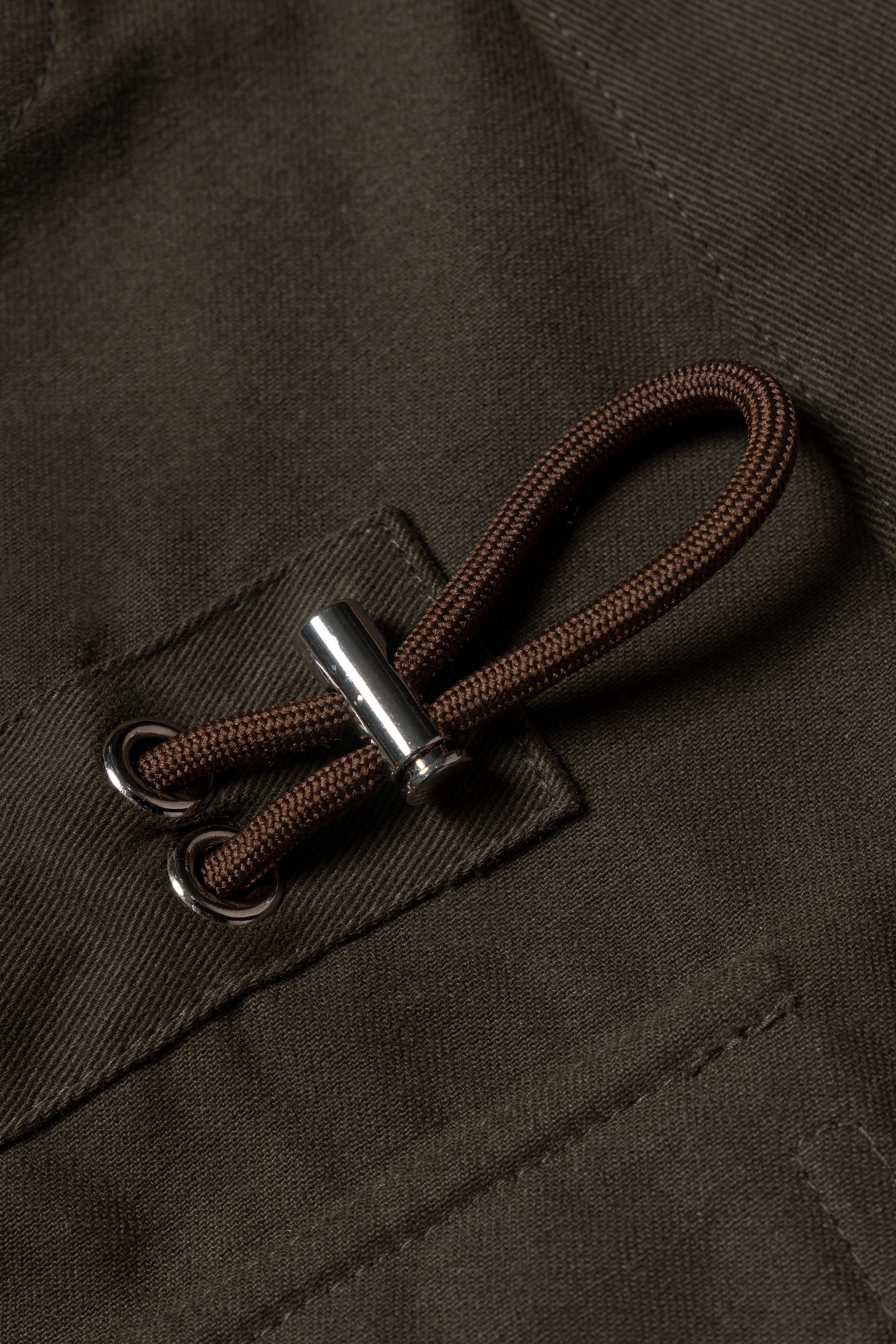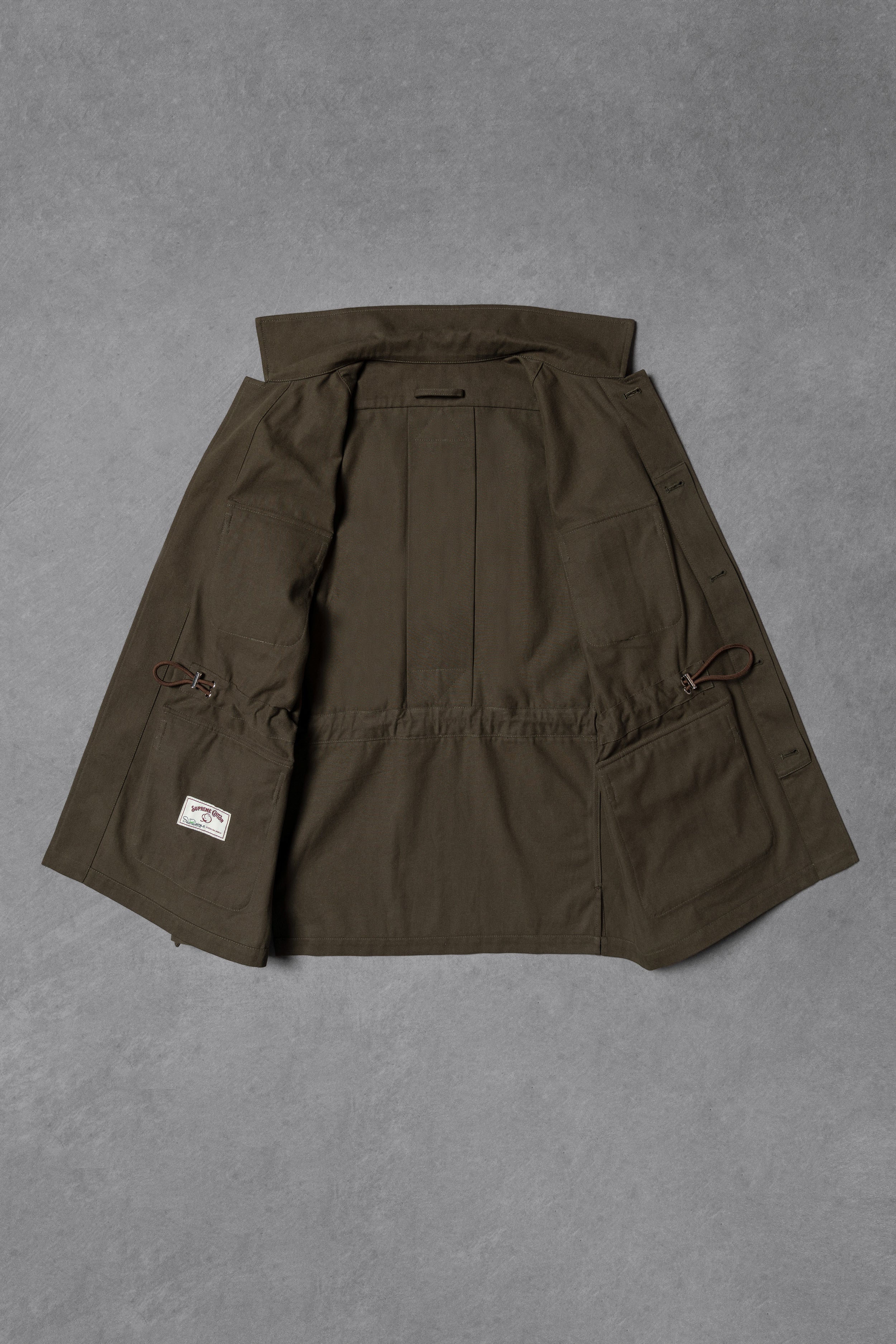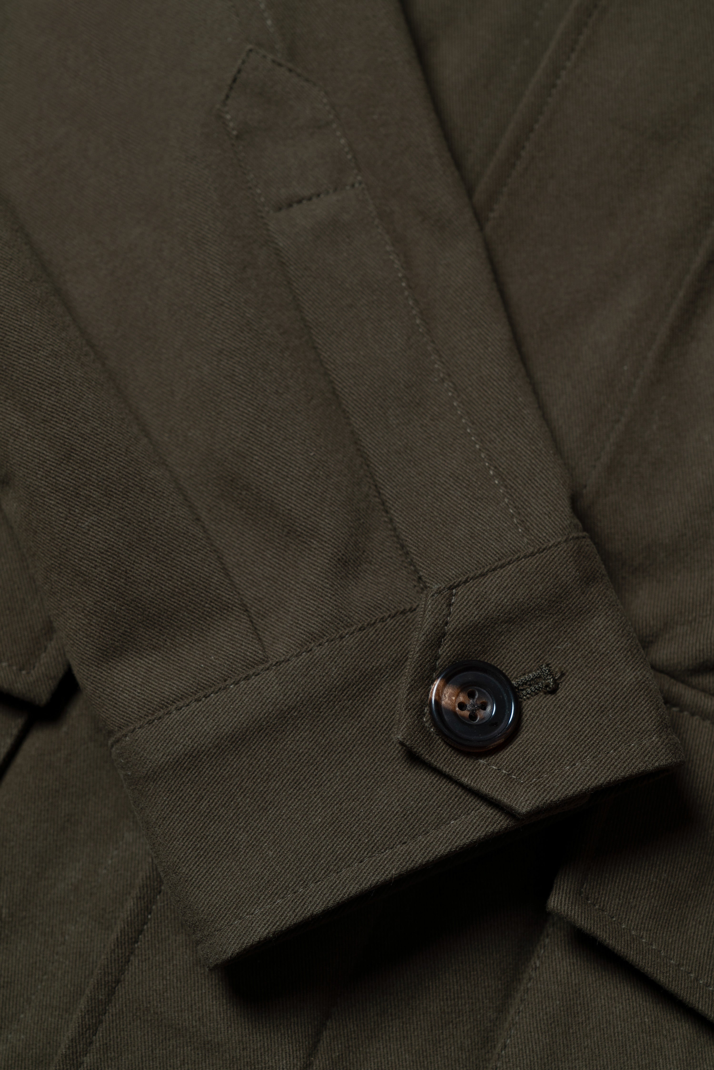 • The Military Pima Cotton M42 Jacket draws inspiration from vintage field gear, reimagined in premium materials. Crafted from soft yet durable Pima cotton, it offers a luxurious handfeel while maintaining the rugged practicality of the original M42 design. Featuring four spacious flap pockets, adjustable cuffs, and a classic stand collar, this jacket delivers both utility and timeless military style in a refined olive tone.