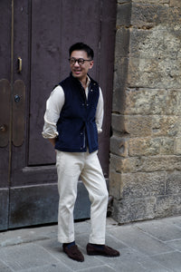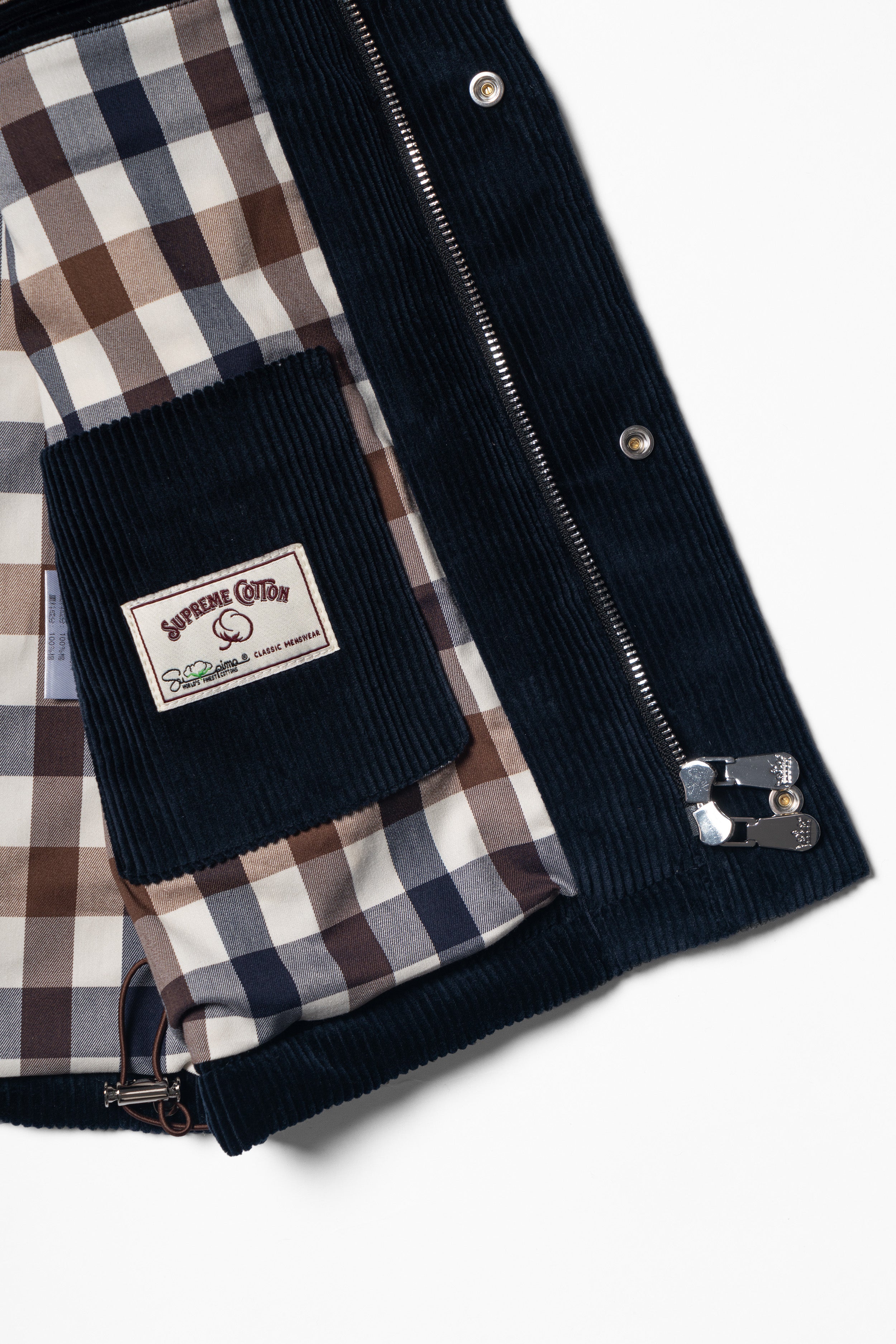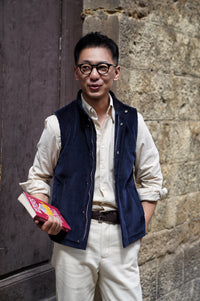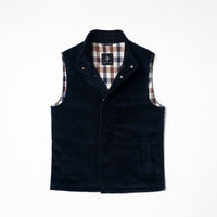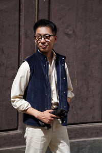 The Navy Cotton Corduroy Gilet is crafted from soft, textured cotton corduroy, offering both durability and casual sophistication. Rendered in a deep navy hue, it serves as a versatile layering piece that pairs effortlessly with shirts, knits, or jackets. Its classic cut and subtle detailing make it a timeless addition to any wardrobe.