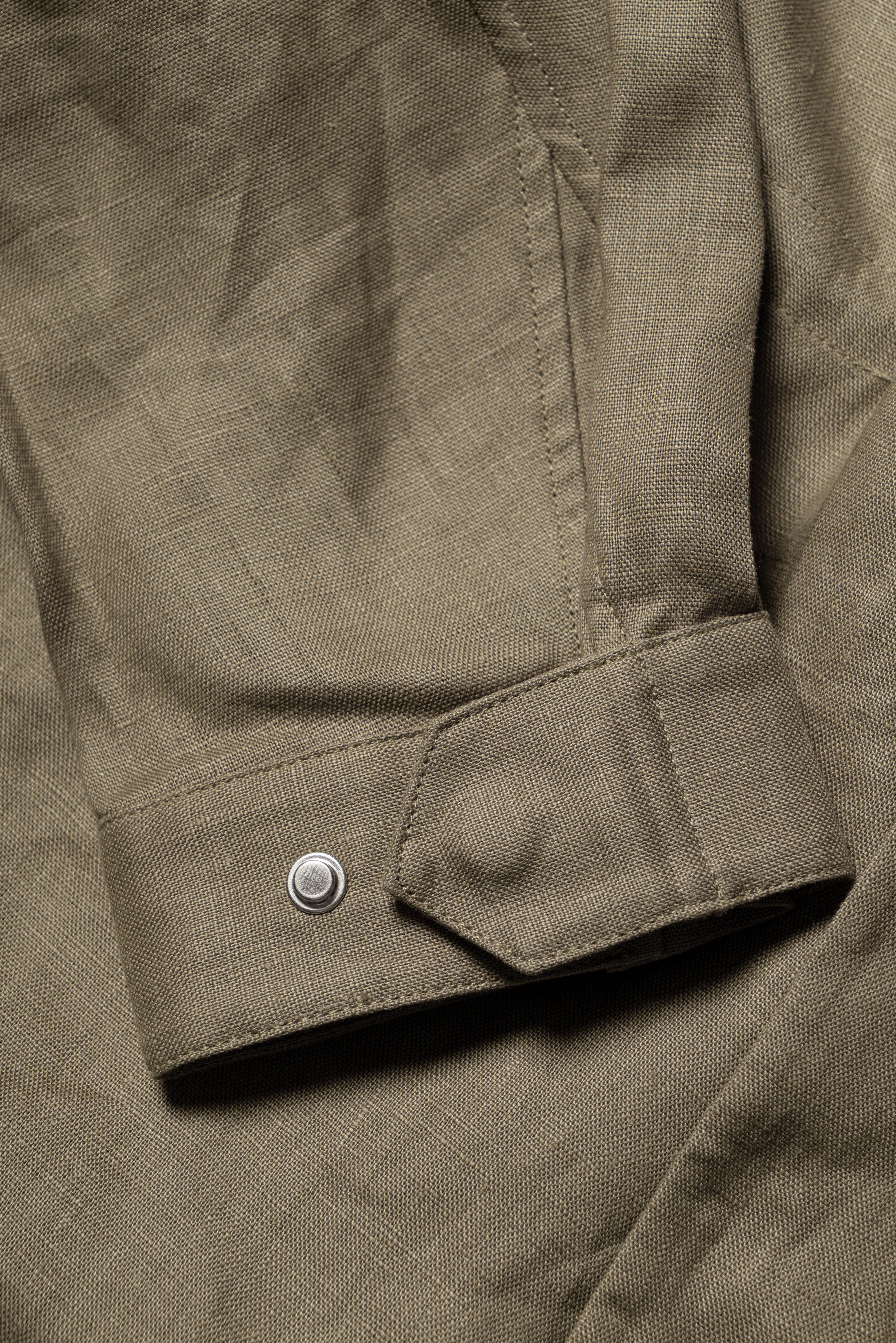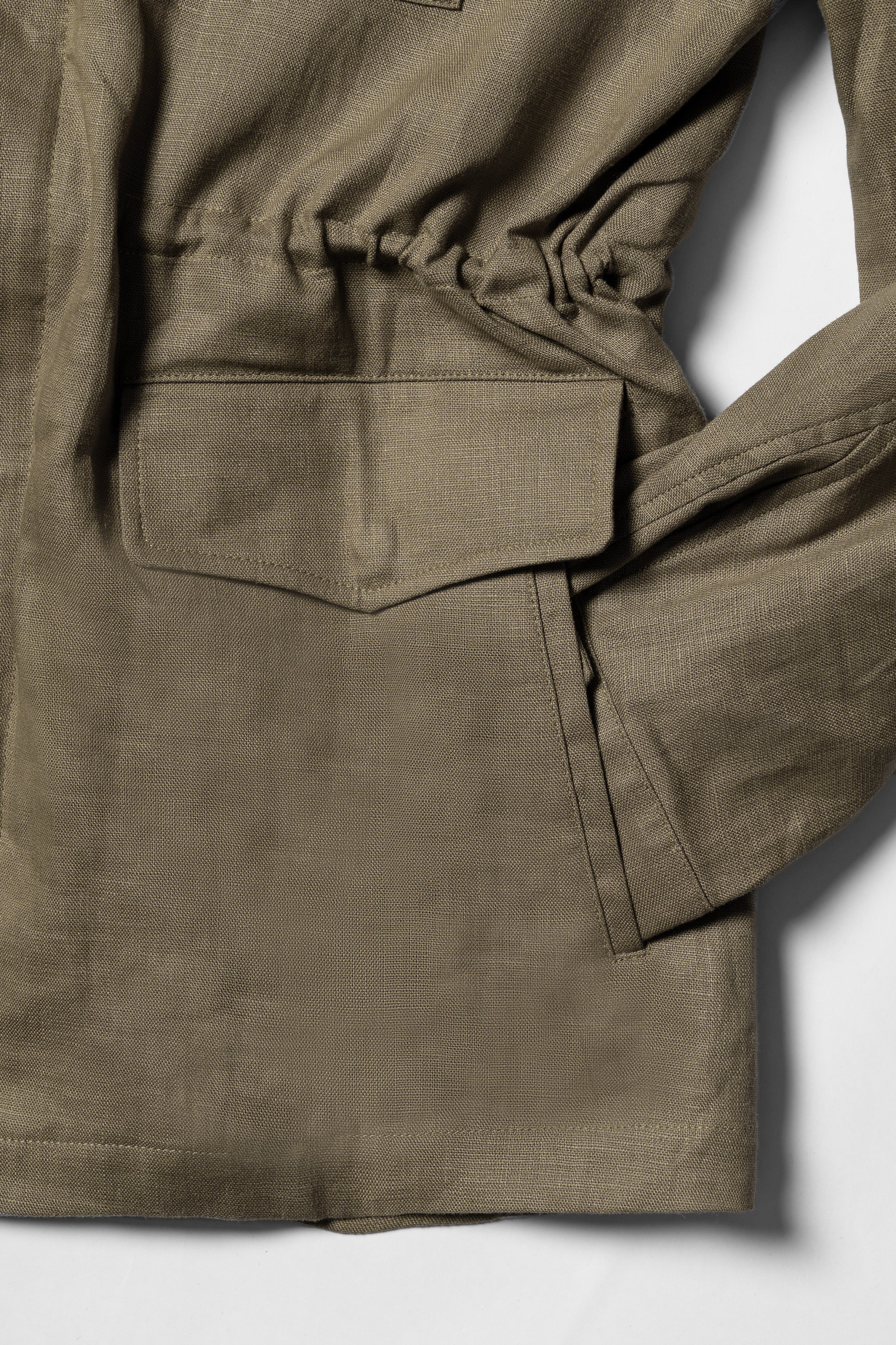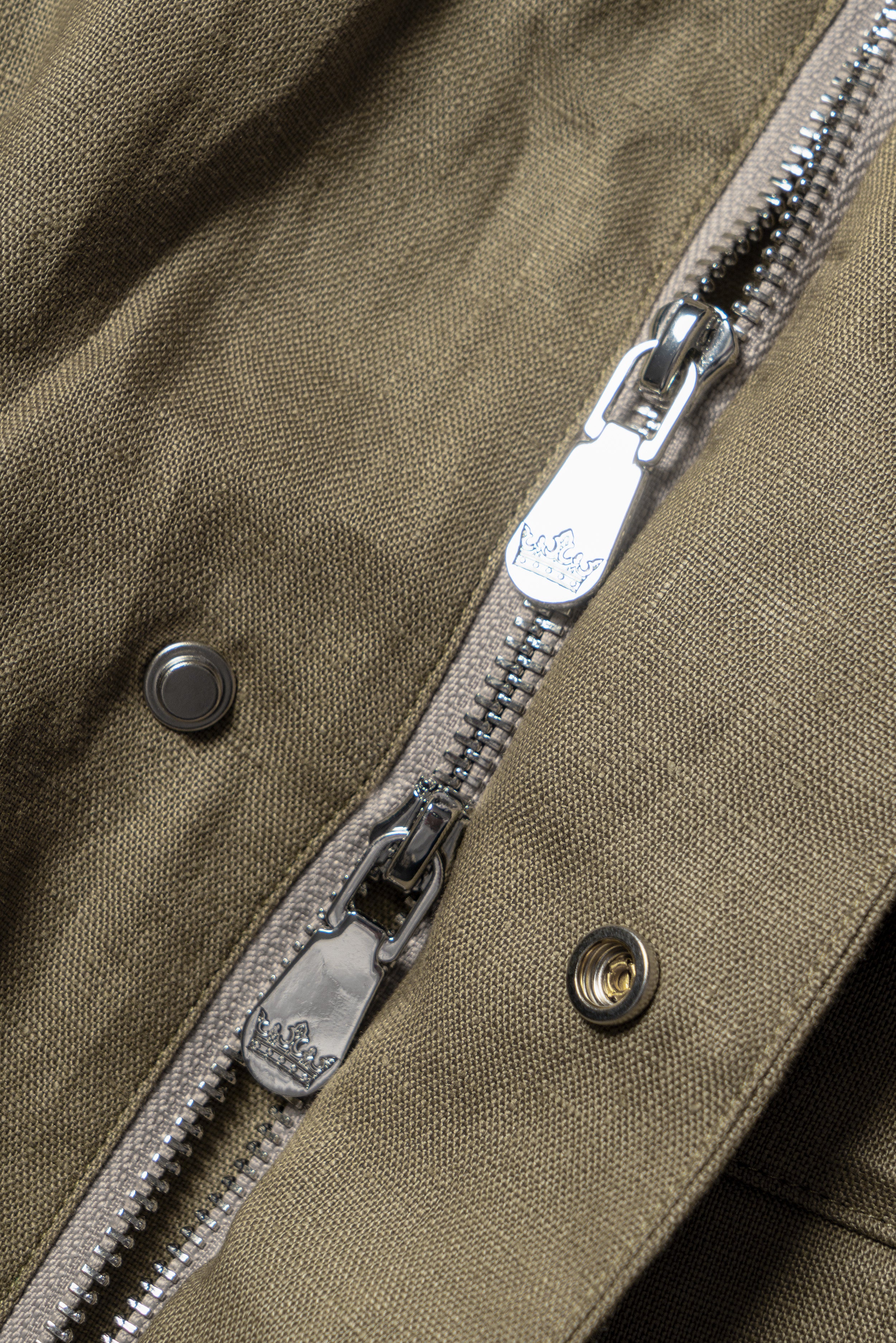 • The Olive Linen M65 Jacket brings a breezy sophistication to the iconic military design. Cut from pure linen, it offers lightweight breathability and a natural, relaxed drape ideal for warmer climates. The earthy brown tone enhances its rugged appeal, while signature M65 details—such as flap pockets and a concealed zip front—retain its timeless utility. A perfect blend of classic structure and effortless summer style.