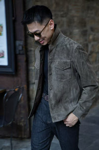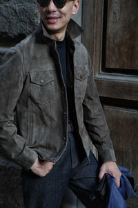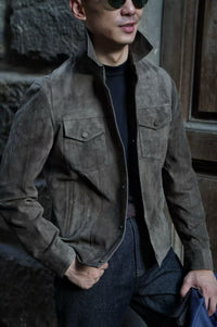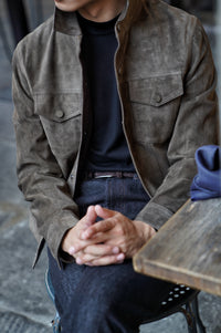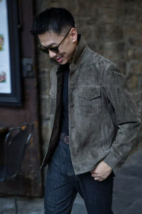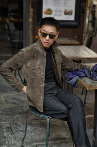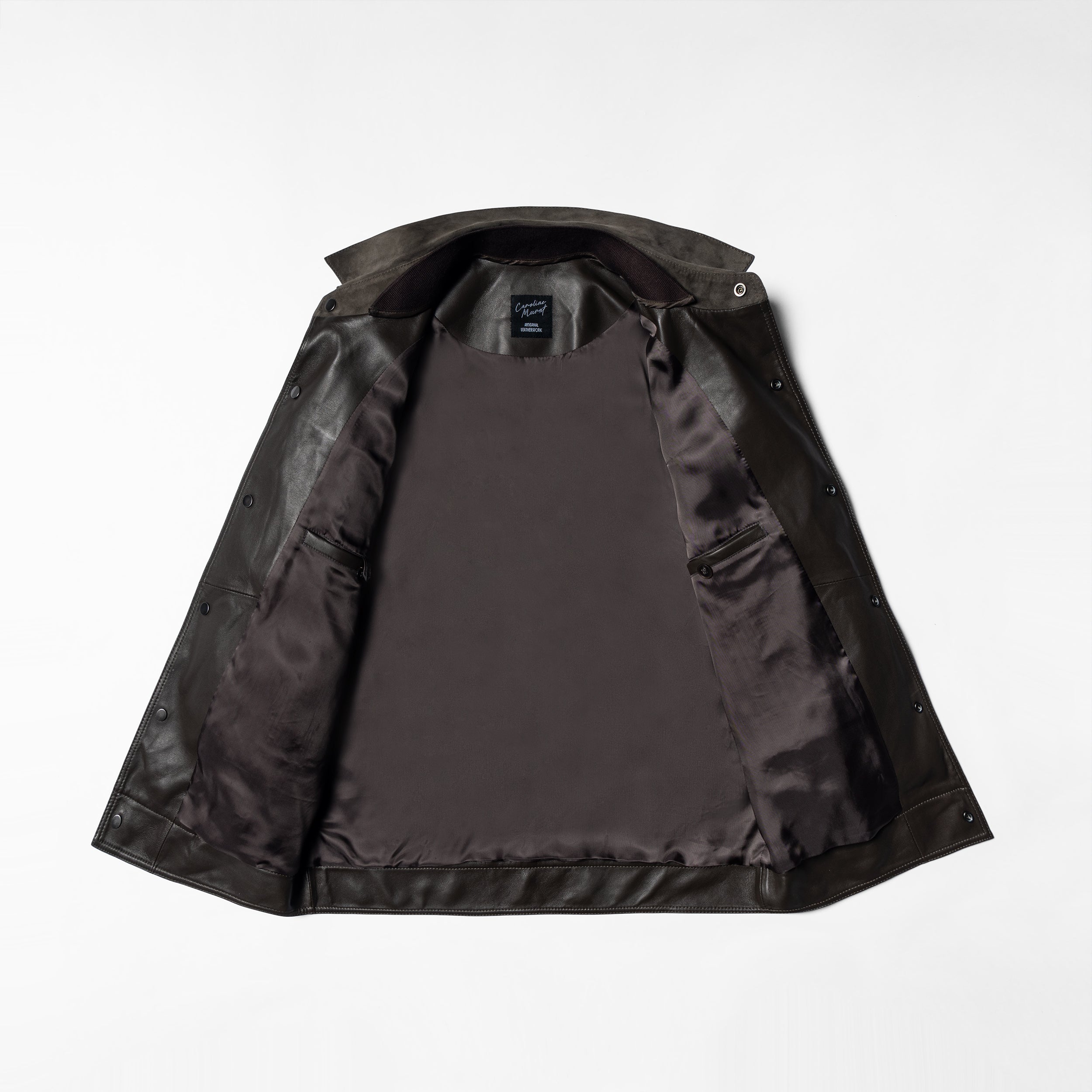 • The Olive Sheepskin Blouson Jacket is crafted from supple olive-toned sheepskin, featuring a classic blouson silhouette with ribbed cuffs and hem for a relaxed yet structured fit. Combining luxurious texture with versatile casual styling, it offers both comfort and understated sophistication for transitional layering.