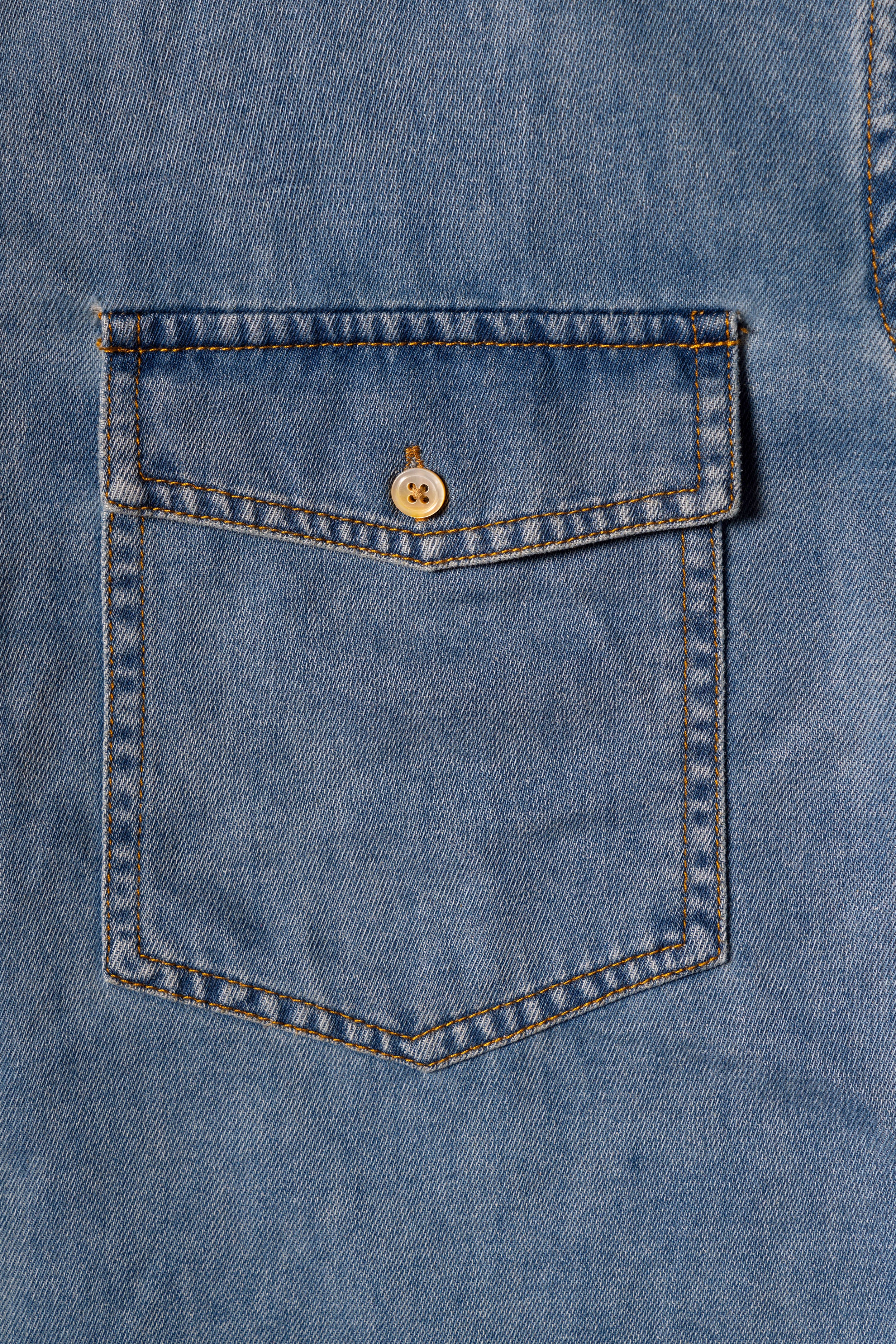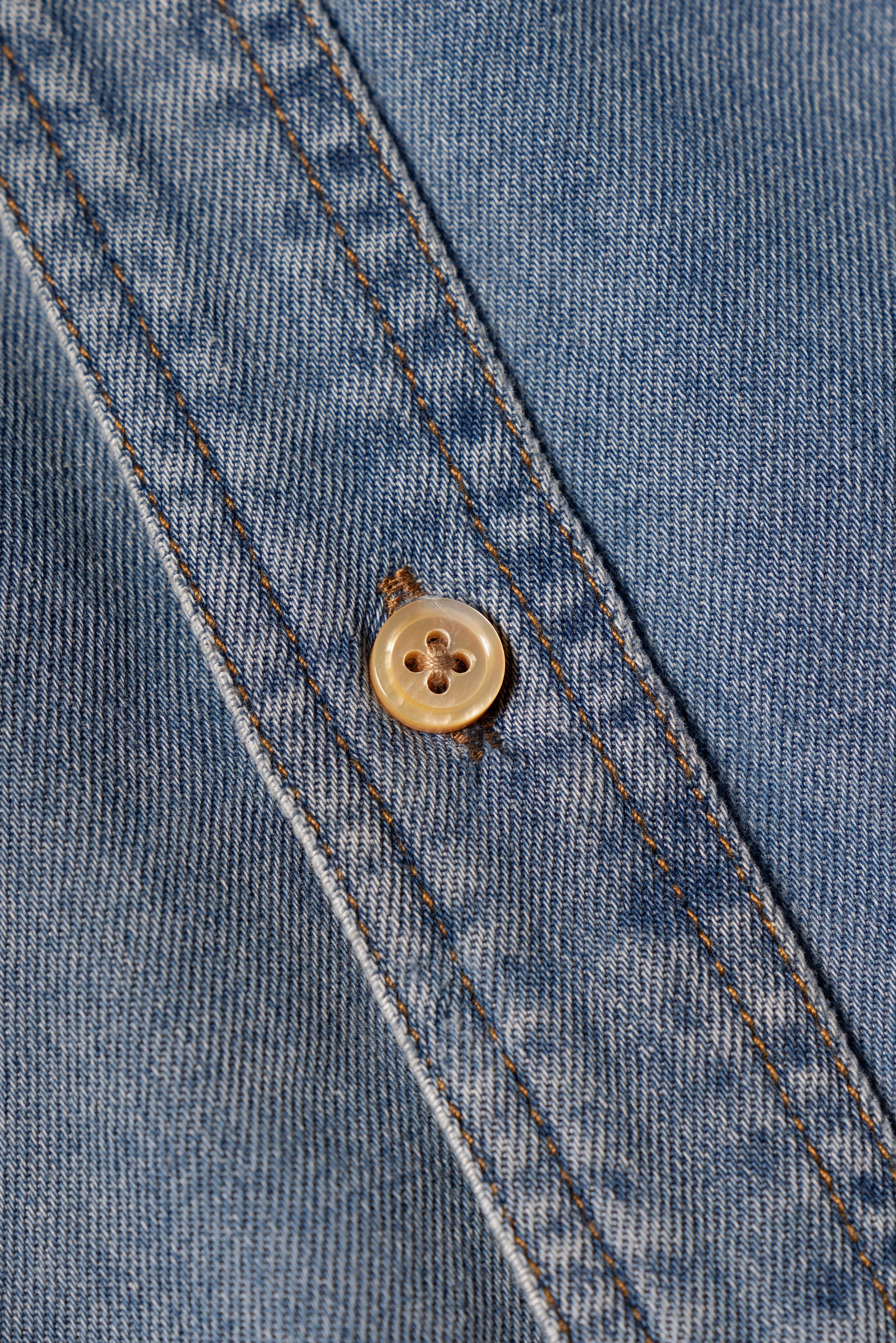 • The Denim Western Shirt is a rugged yet stylish piece inspired by classic Western wear. Made from durable denim, it features traditional details like chest pockets. The timeless blue denim offers versatility, making it perfect for both casual outfits and layering during cooler months. Whether you're going for a relaxed or a more polished look, this shirt brings a touch of Americana to any wardrobe.