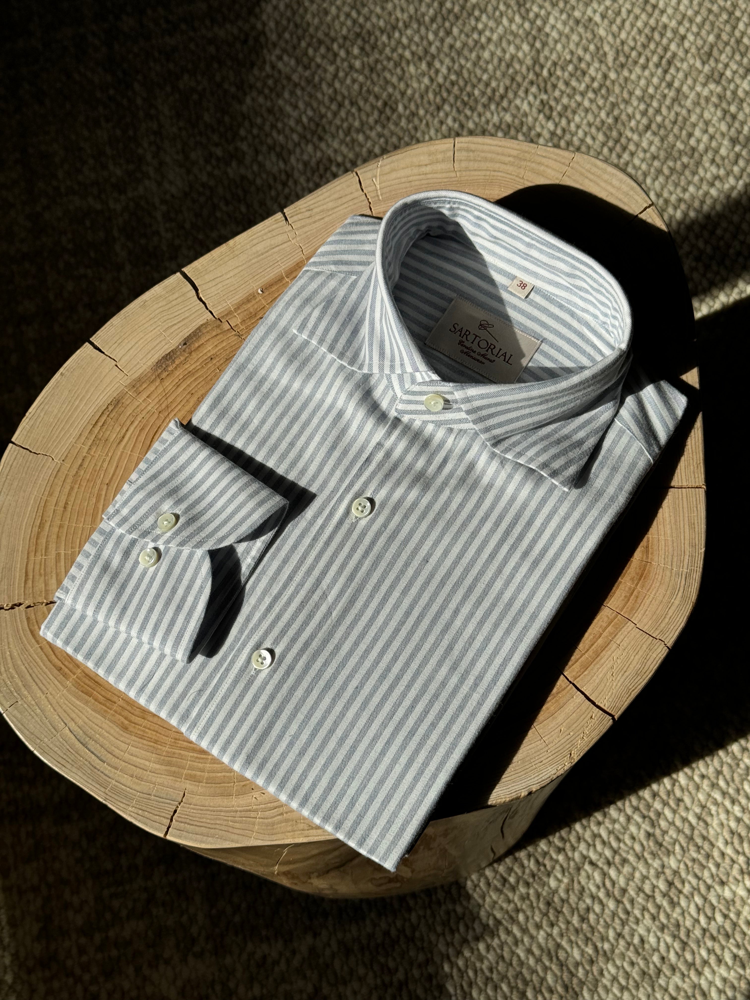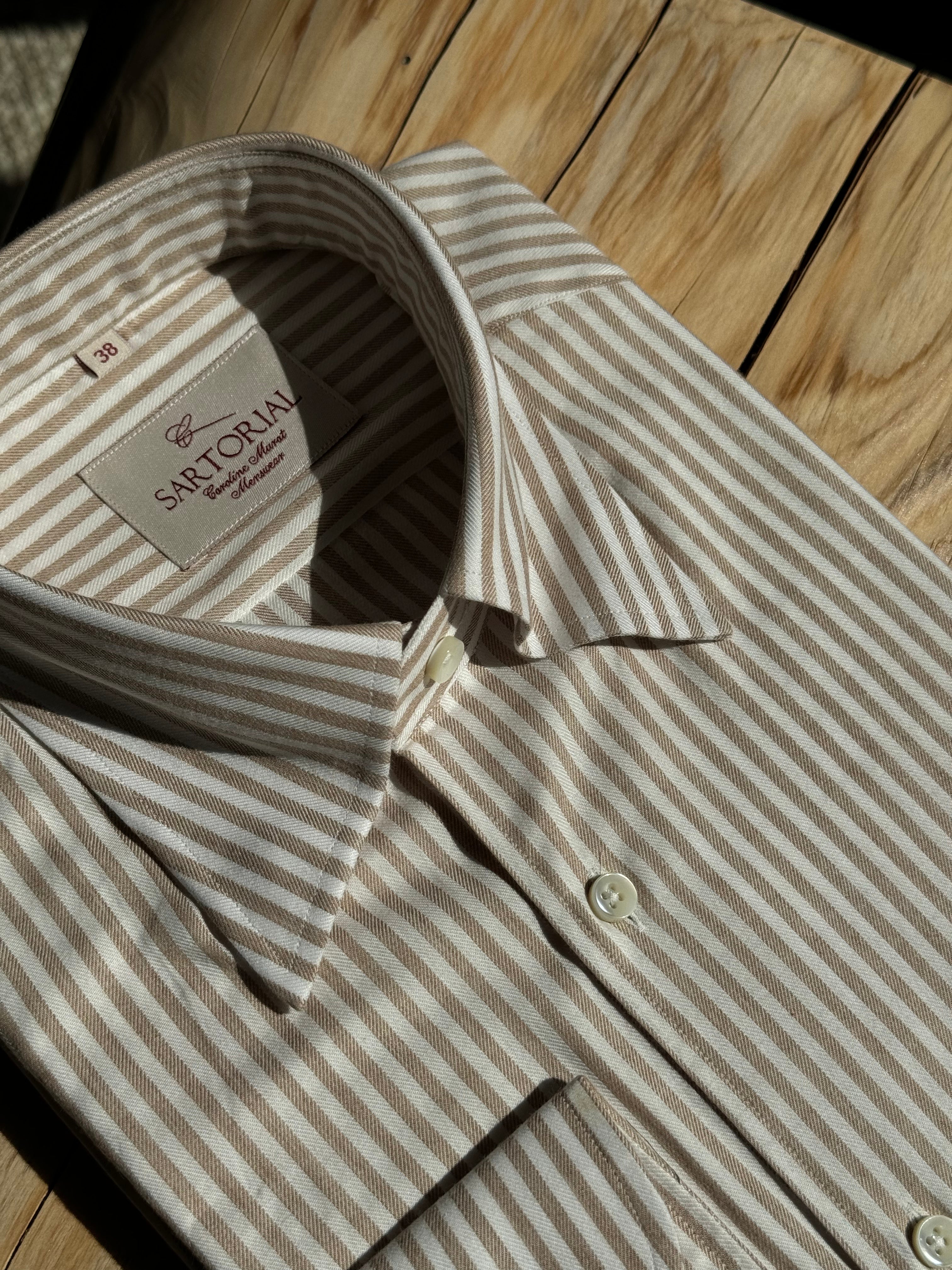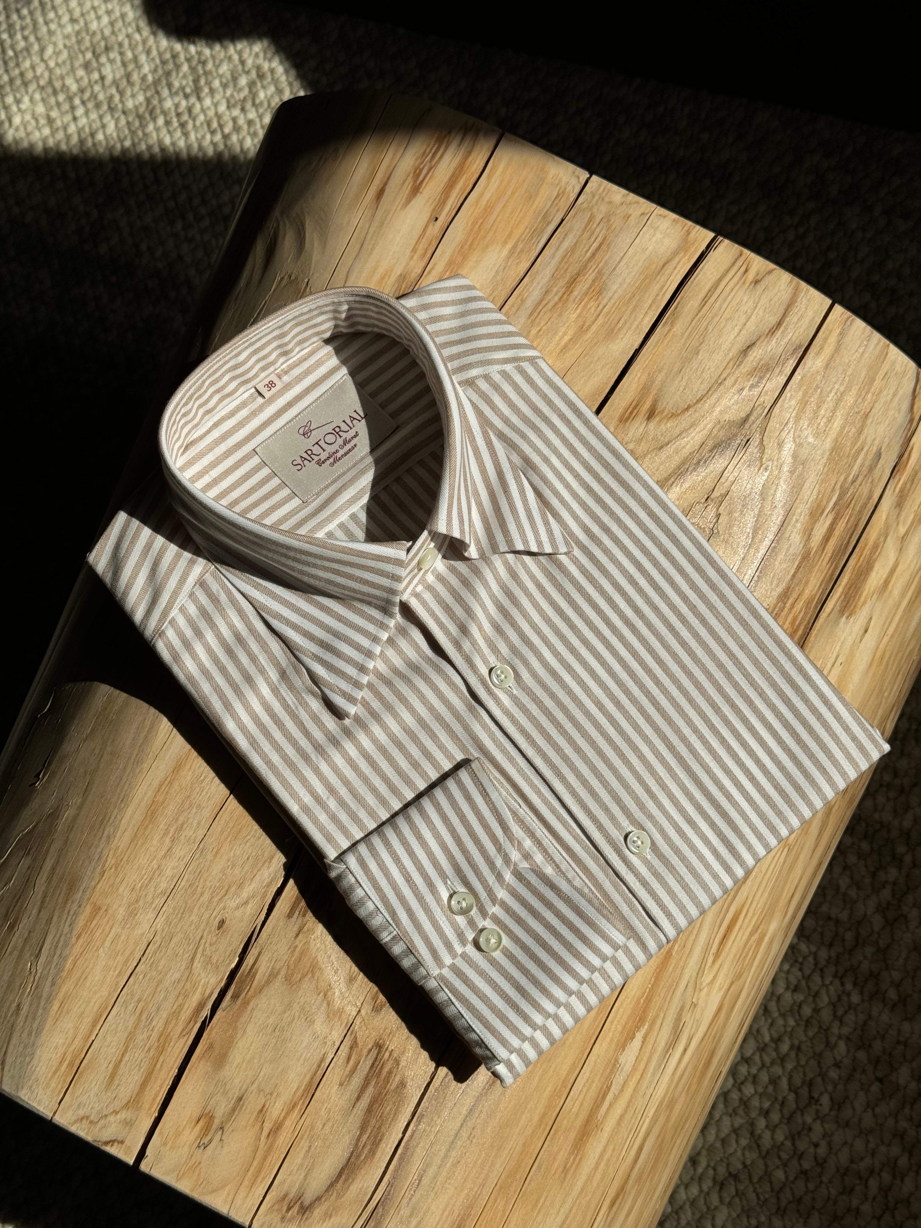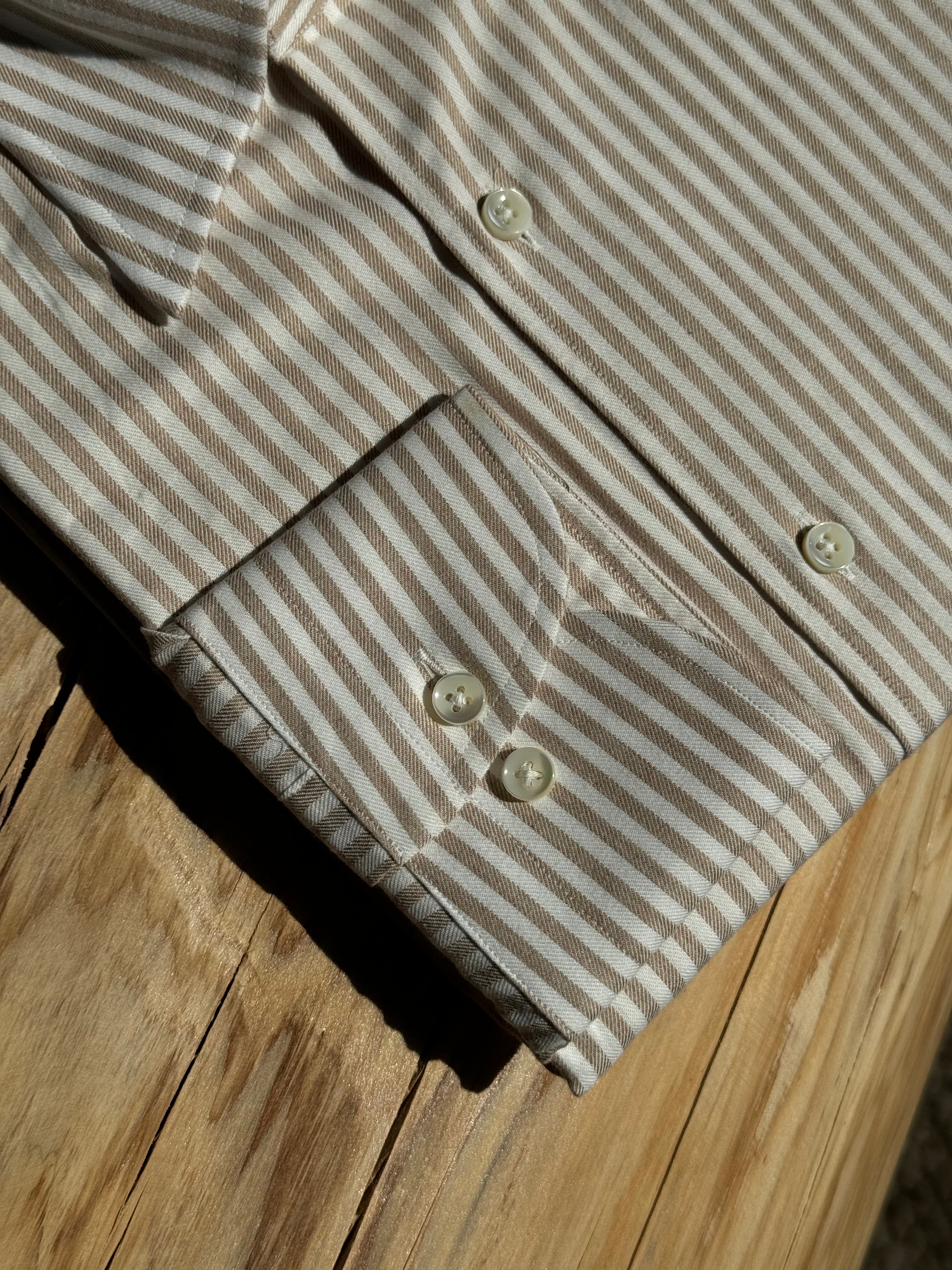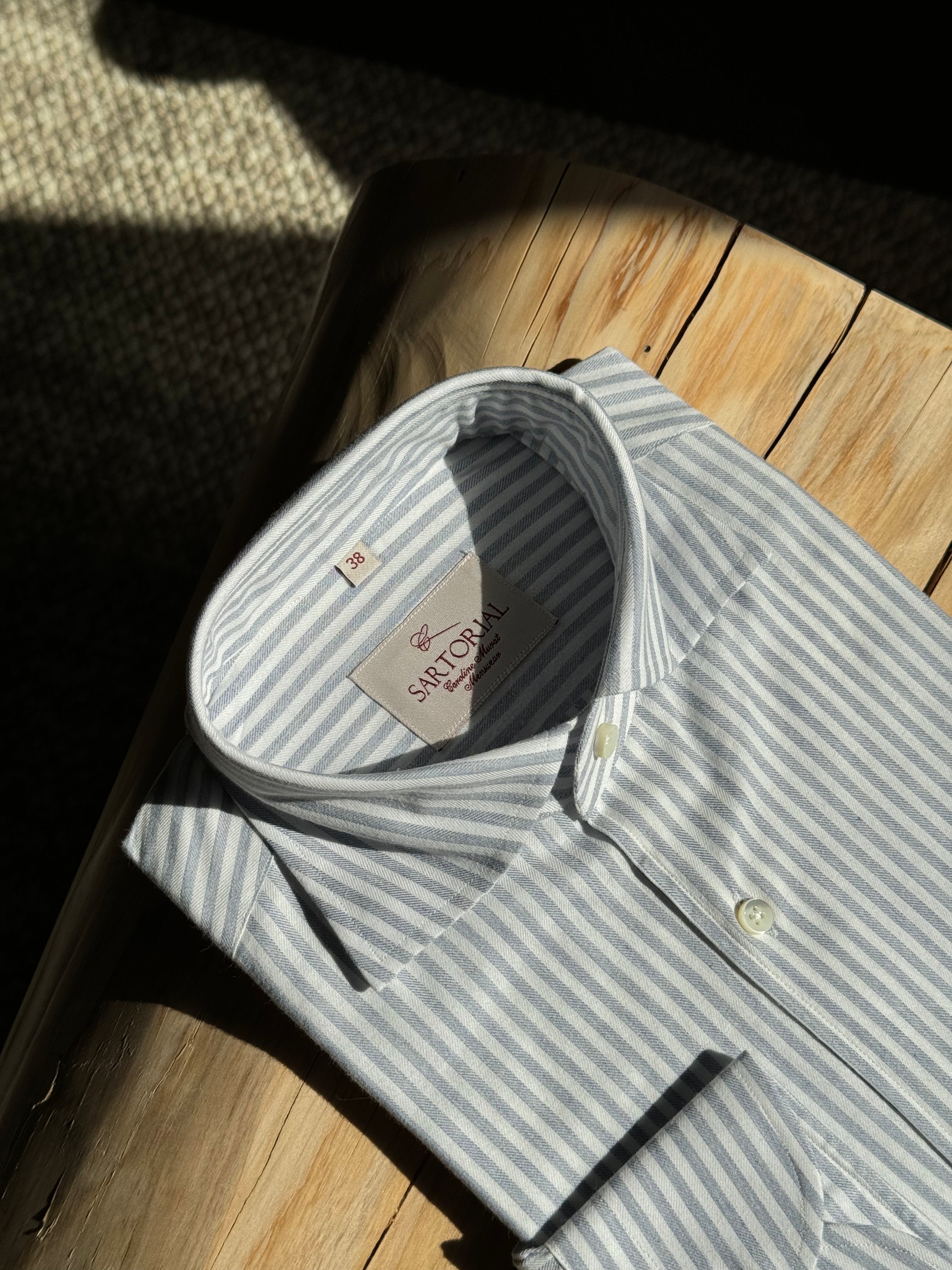 • This Cotton Lyocell Blending Stripe Shirt combines the natural softness of cotton with the silky smoothness of lyocell, offering a comfortable and breathable feel. The classic stripe pattern adds a timeless touch to its design, making it versatile for both casual and semi-formal looks. The fabric blend provides durability, moisture-wicking properties, and a luxurious drape, ensuring you stay cool and stylish all day long. Perfect for a day at the office or a weekend outing, this shirt brings together style and comfort in one effortless piece.