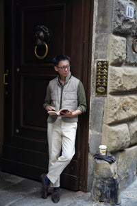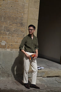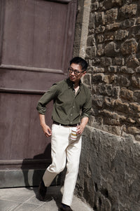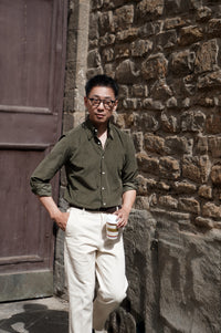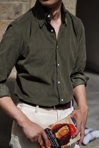 - The Olive / Cream Cotton Corduroy Shirt showcases a timeless approach to casual dressing with a refined touch. Cut from soft cotton corduroy, they offer a rich texture and comfortable structure that transitions seamlessly across seasons. The olive version brings a grounded, utilitarian character, while the cream option introduces a lighter, versatile tone for effortless layering. Worn alone or as overshirts, they strike the balance between relaxed ease and understated sophistication.