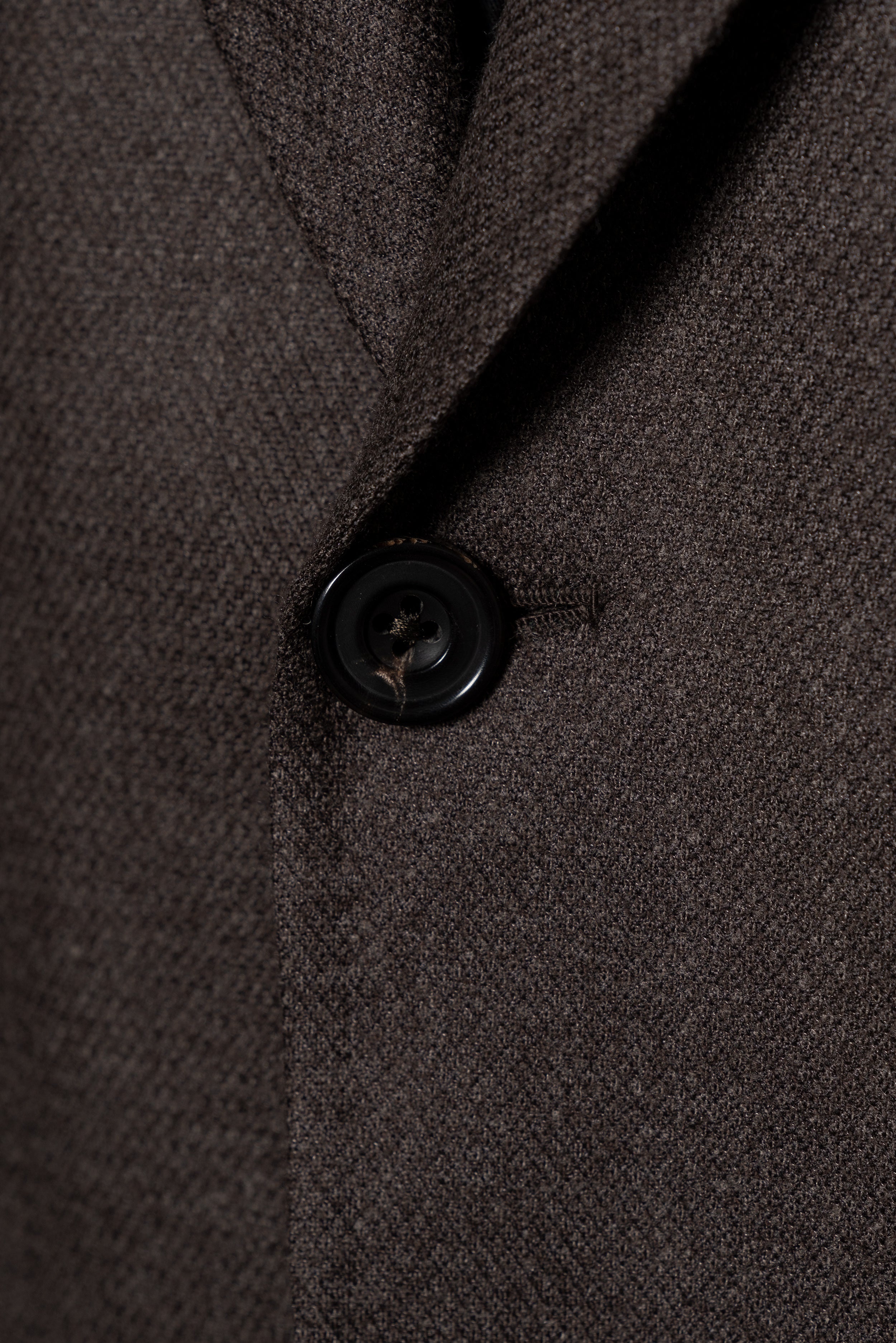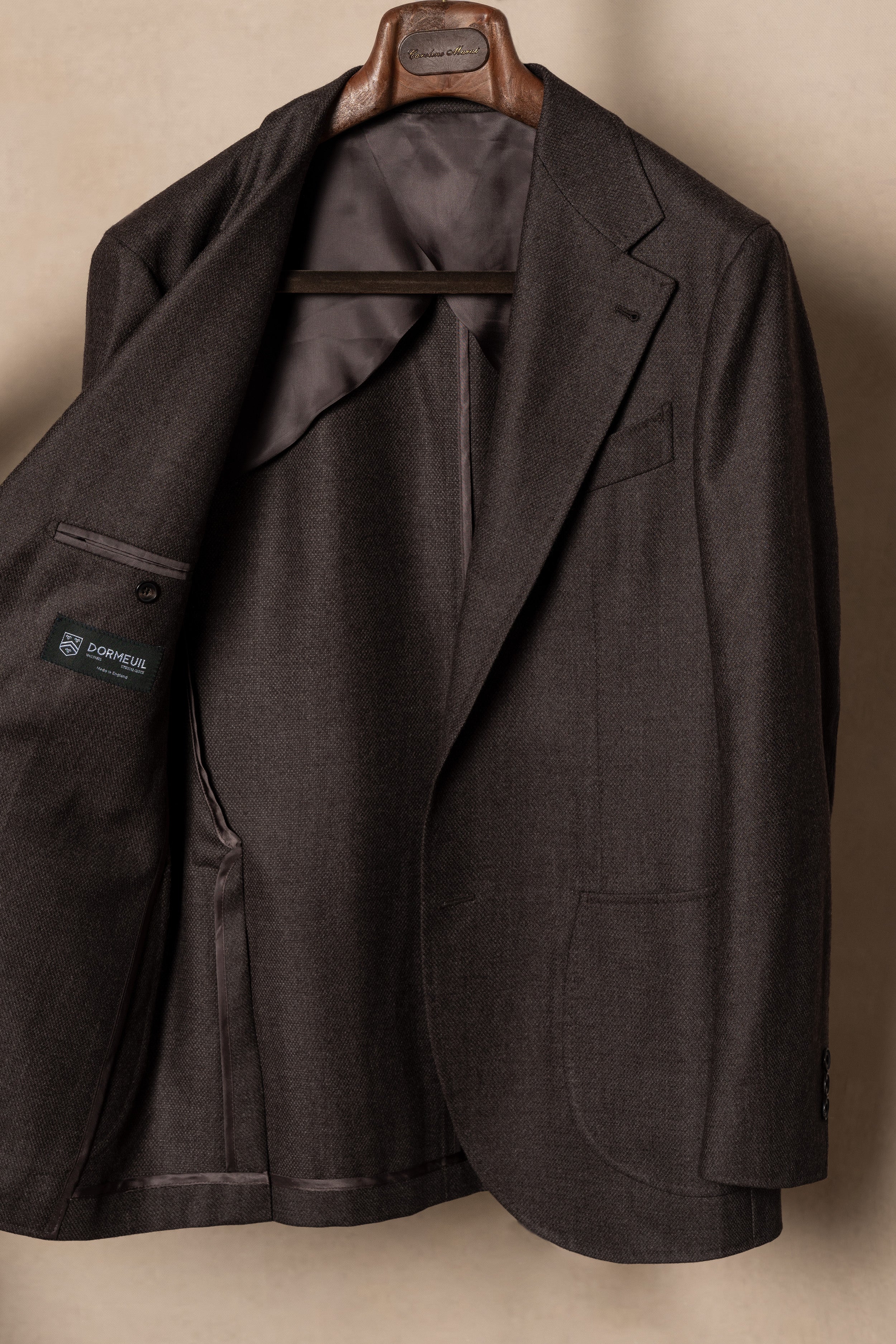 This Brown Birdseye Jacket features a subtle, textured weave that adds quiet sophistication to a timeless silhouette. The birdseye pattern, known for its fine dotted appearance, brings depth without distraction. Crafted from high-quality wool, it offers a soft hand, breathable comfort, and structured drape—ideal for business or elevated casual wear.