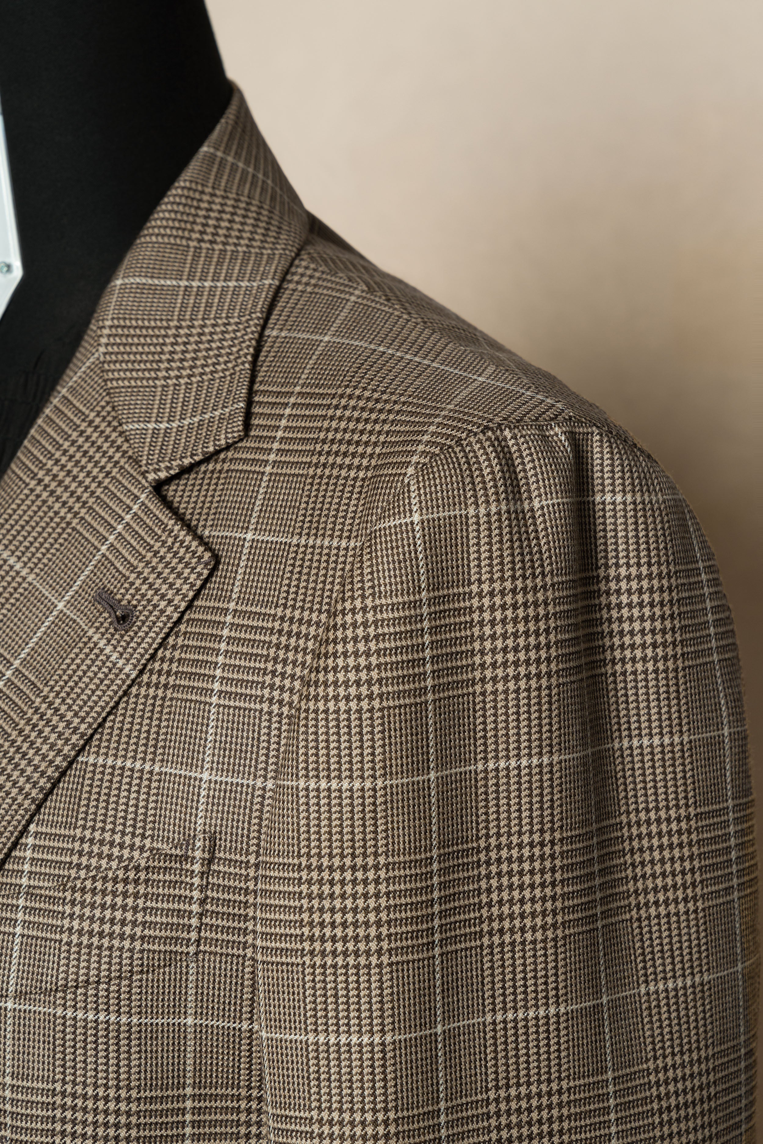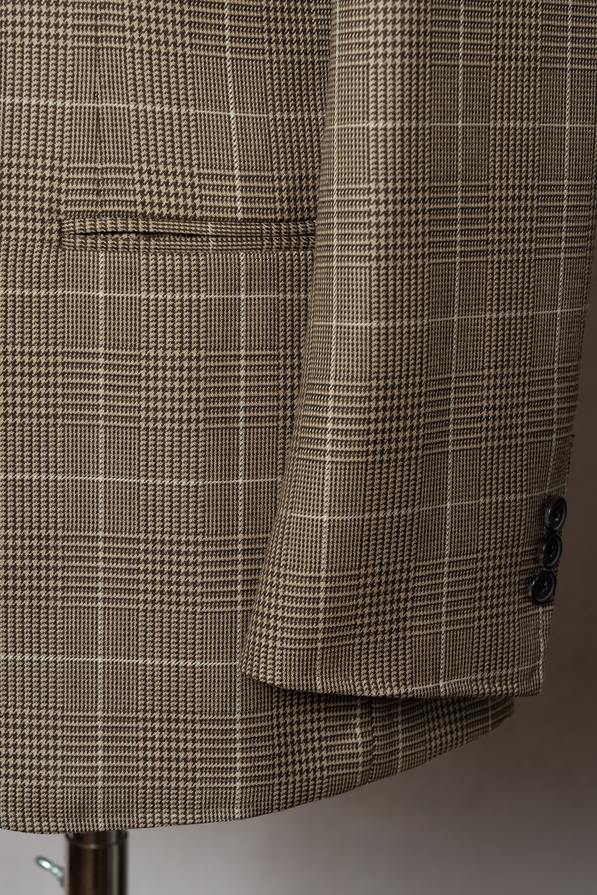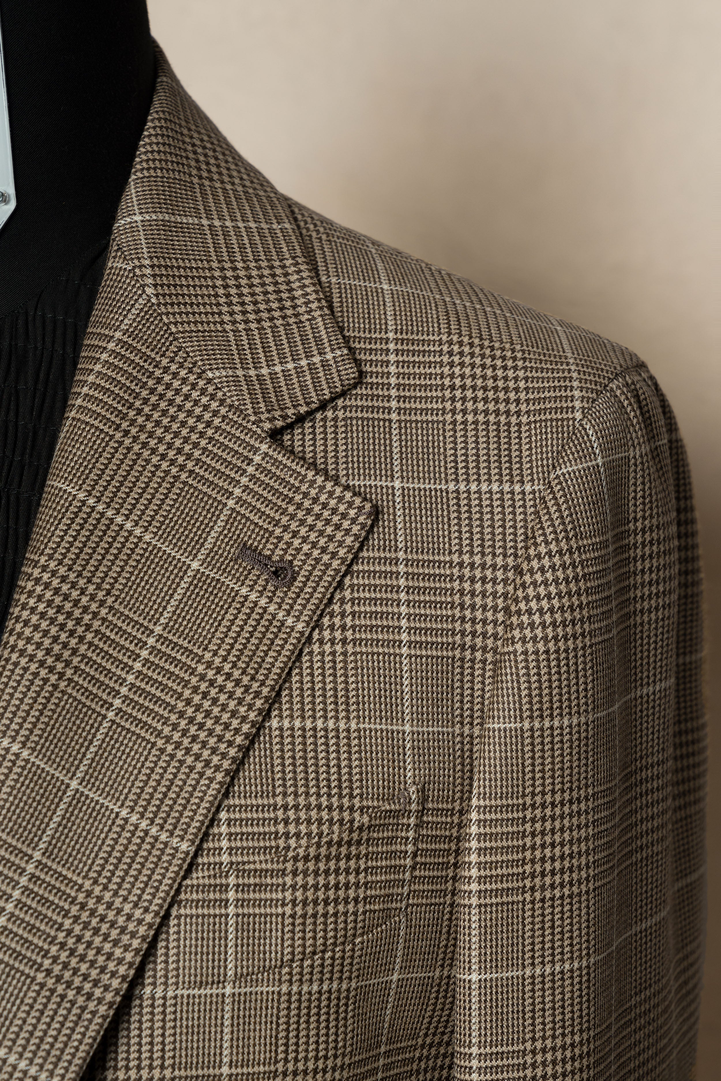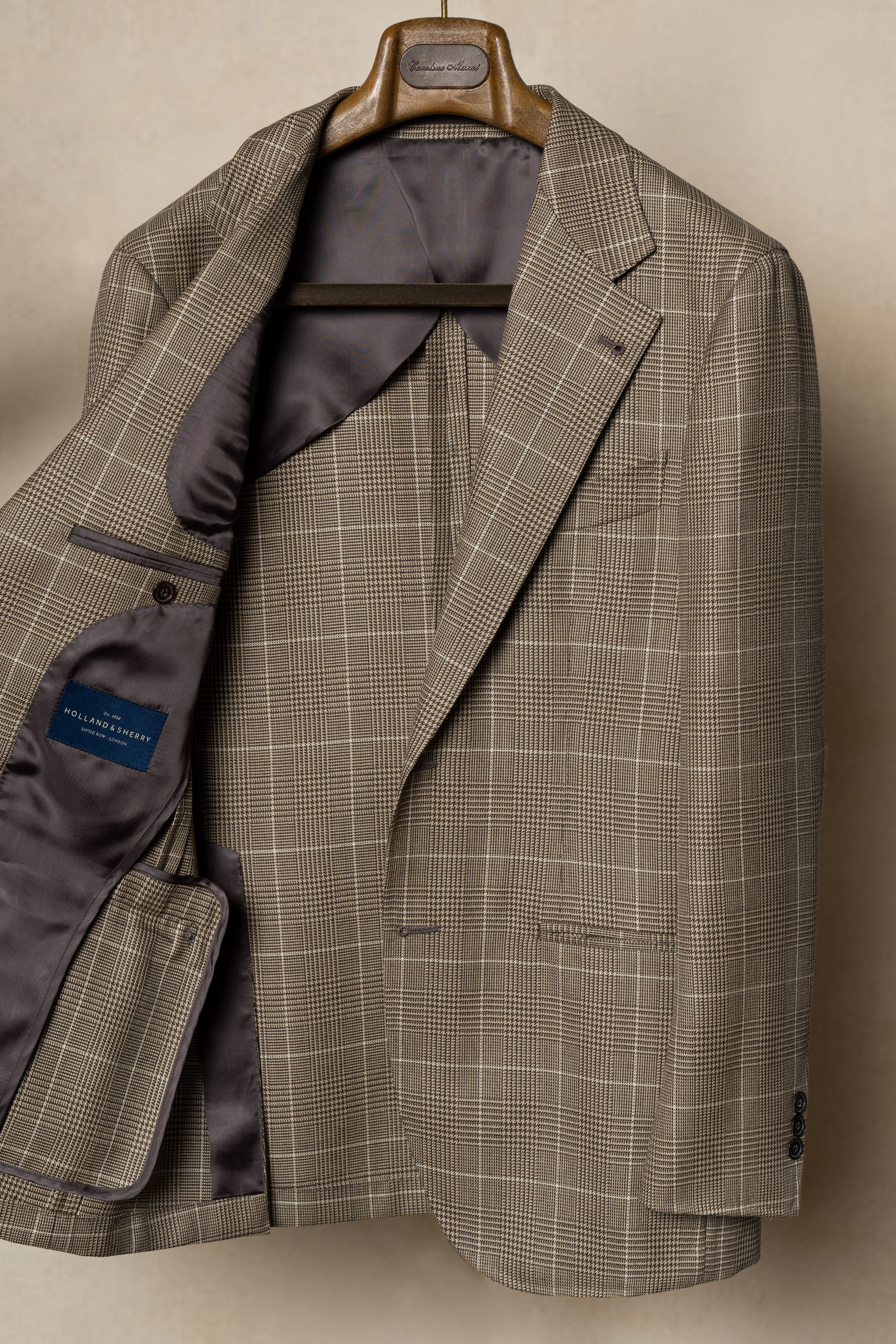 This Tan Glen Check Jacket combines classic British tailoring with warm, seasonal tones. Crafted from a pure wool, it features a soft tan base with a subtle glen check pattern, offering timeless sophistication with a relaxed feel. Ideal for both business-casual and weekend wear, it’s a versatile layer that adds understated charm to any ensemble.