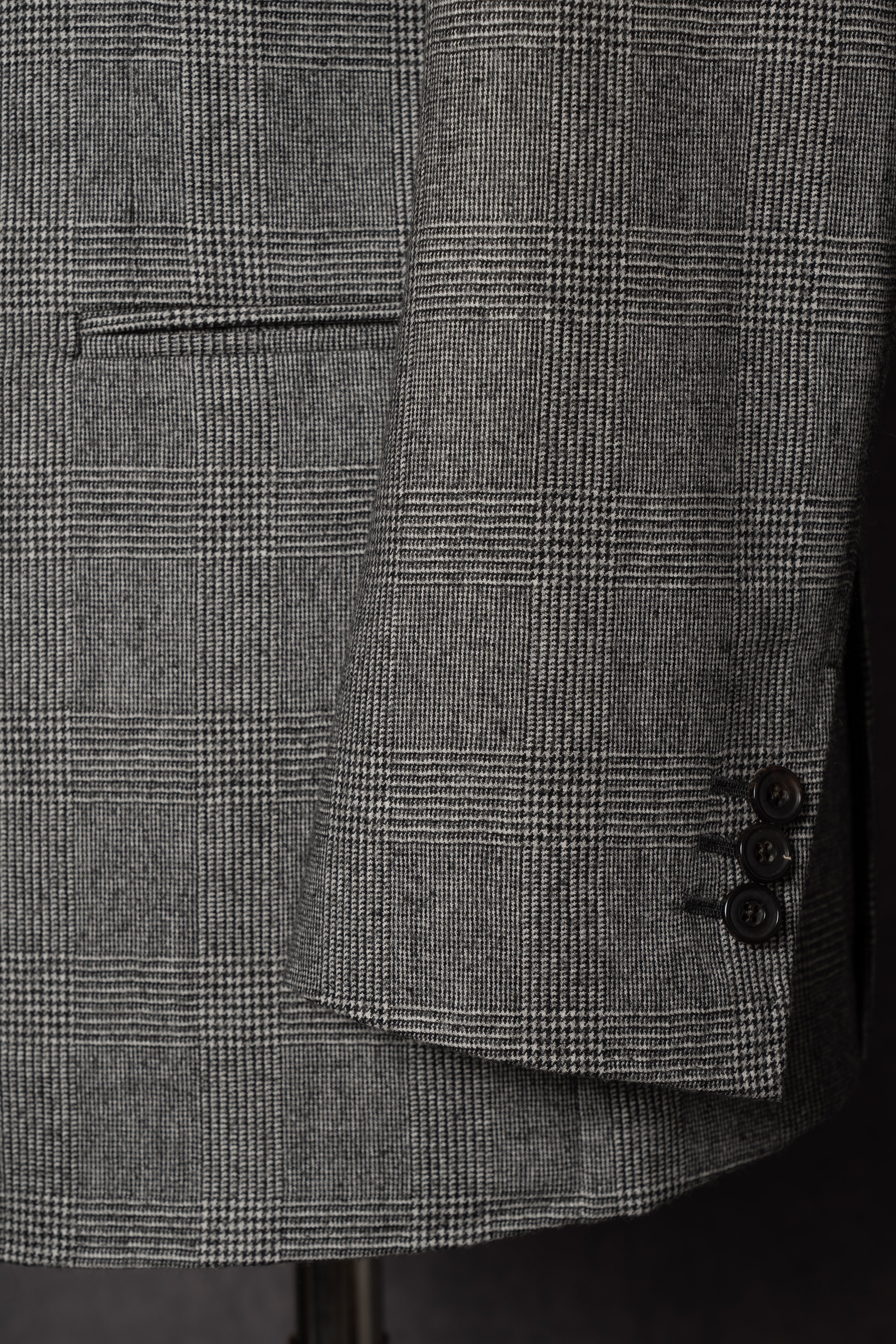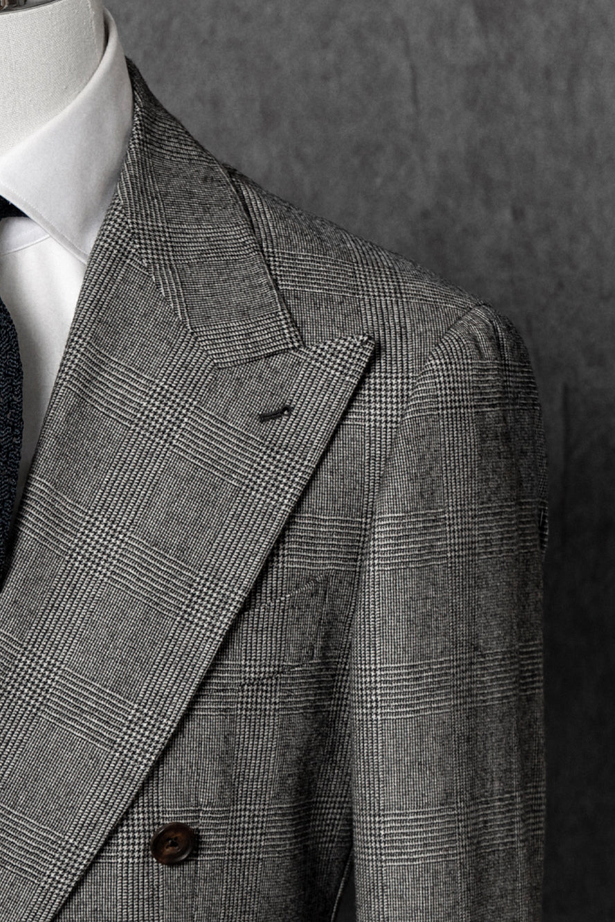 - The Black and White Glen Check Worsted Flannel Suit blends classic patterning with luxurious texture. Crafted from premium worsted flannel, it offers a refined balance of softness, warmth, and durability. The timeless black and white glen check pattern adds depth and sophistication, making it a perfect choice for business, formal occasions, and sartorial elegance.