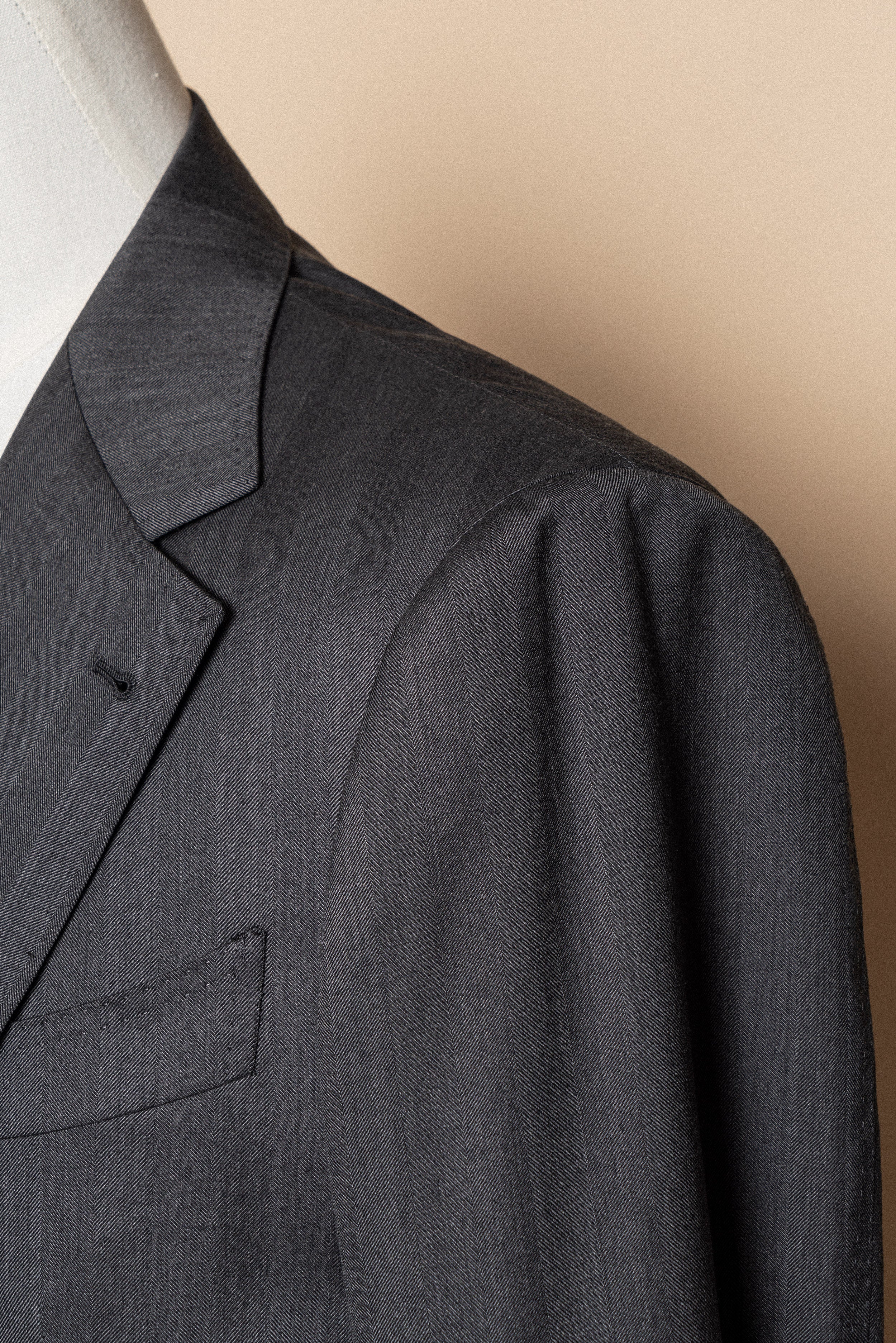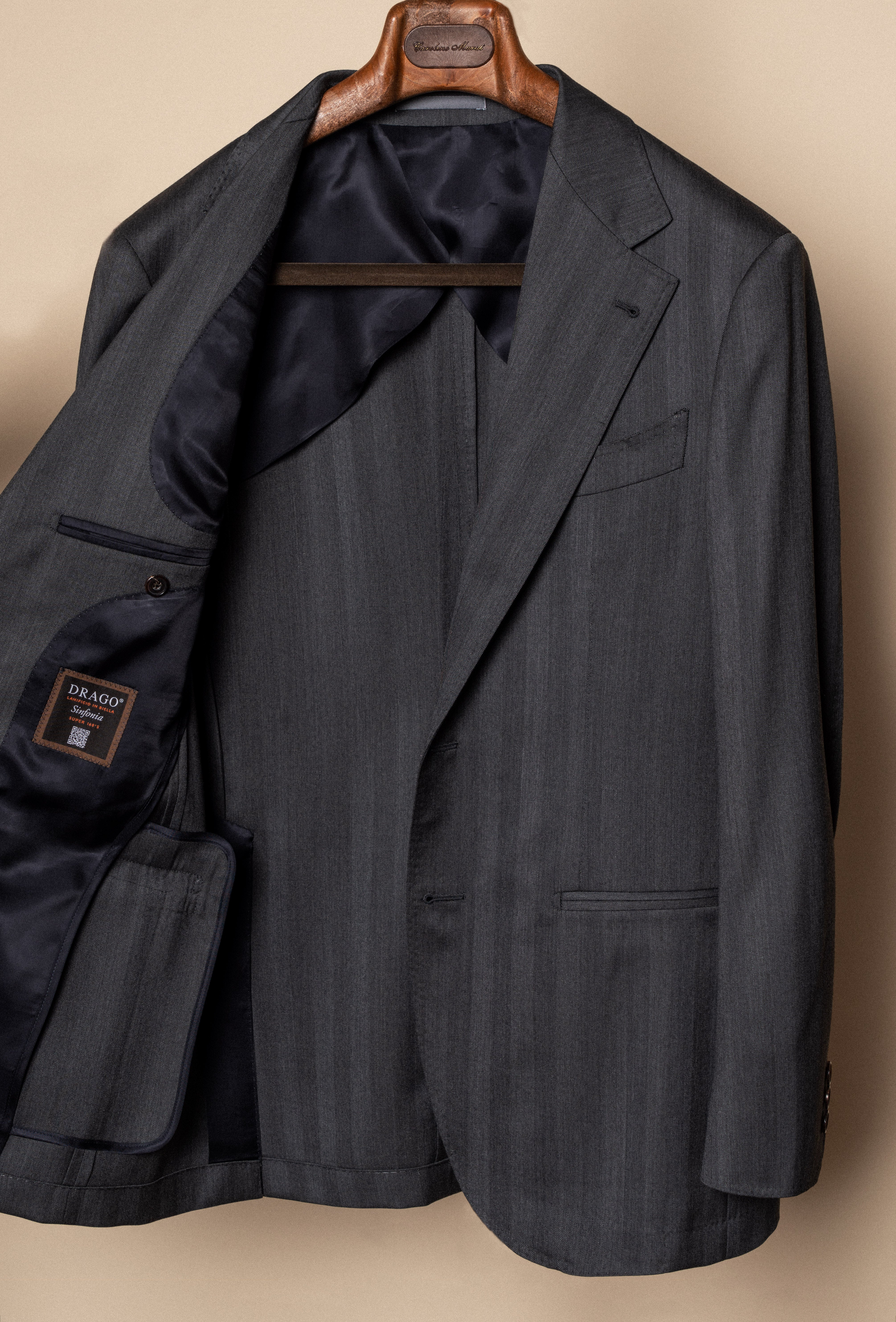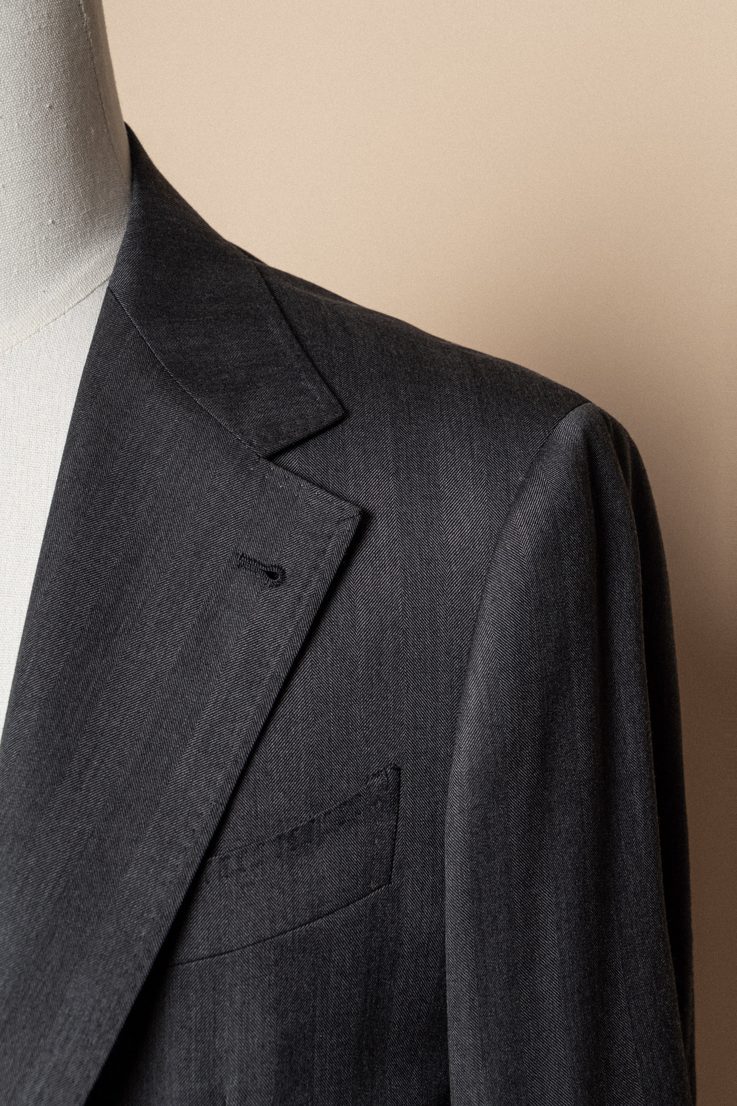 Crafted from exceptionally fine 15 micron Super 160s wool, this Grey Herringbone Suit offers a luxurious feel with elevated performance. The soft herringbone pattern lends classic texture to the cool grey hue, while the ultra-light, high-twist weave provides natural stretch, breathability, and graceful drape. Designed for refined dressing in warmer climates, it’s a statement of quiet sophistication and uncompromising quality.