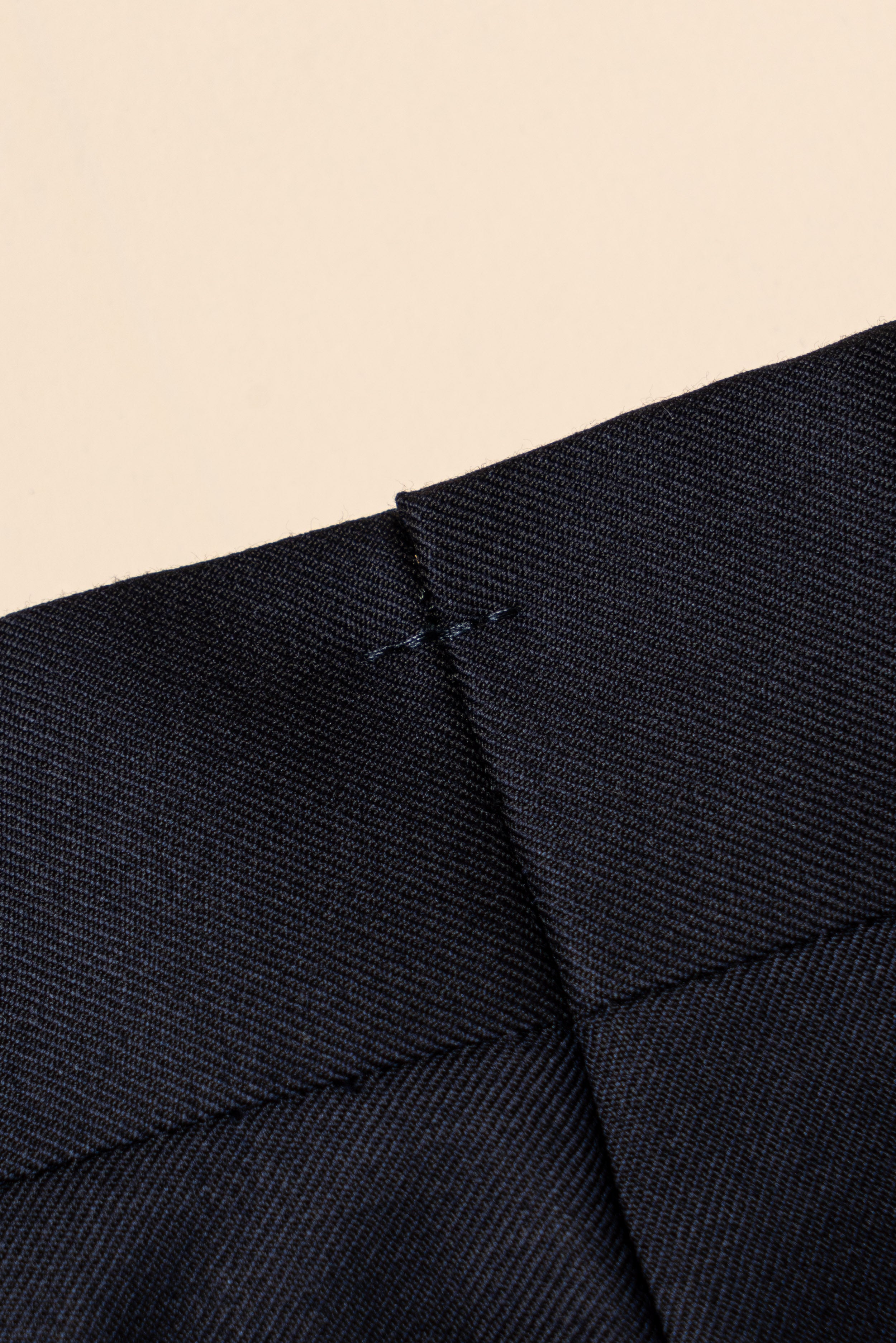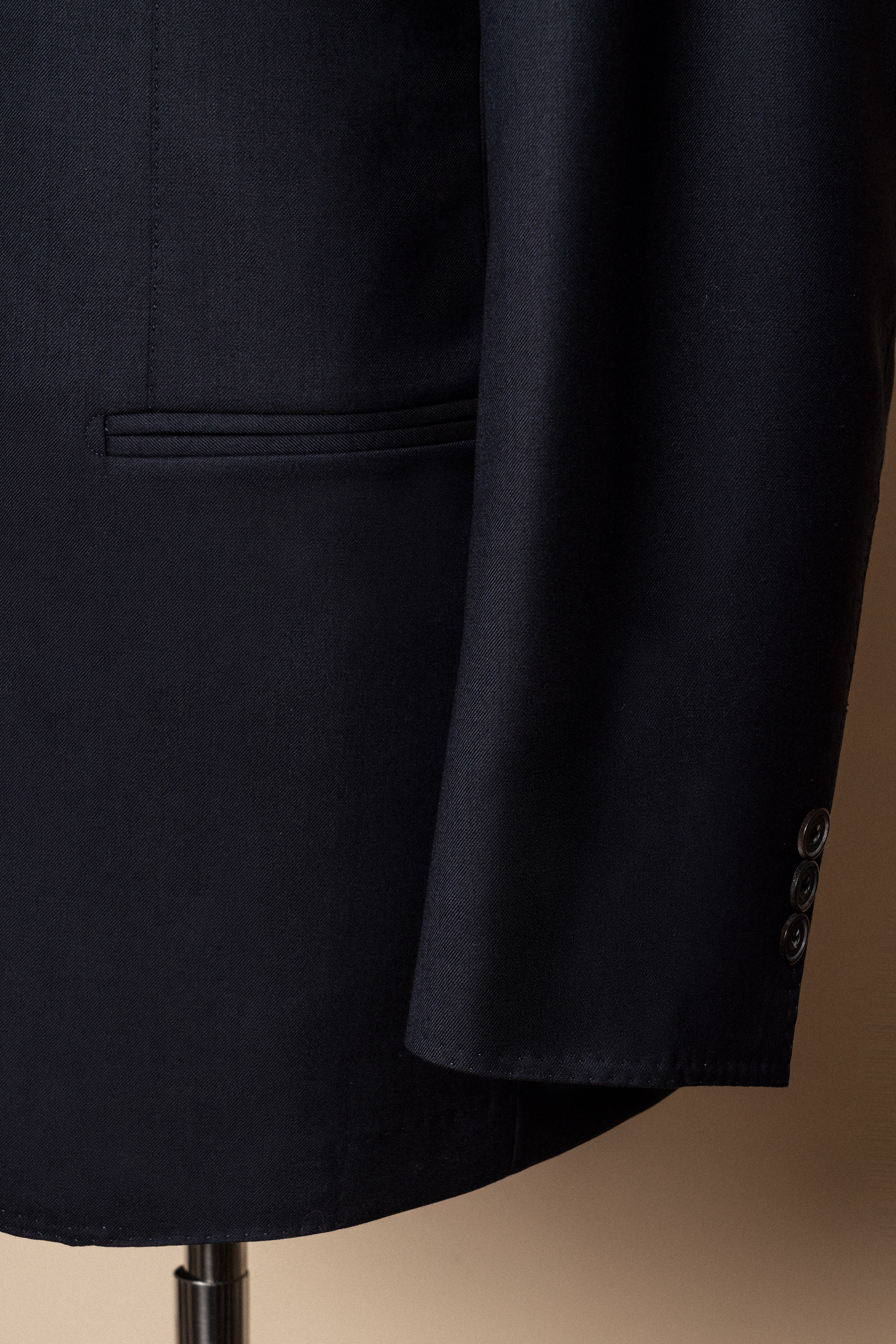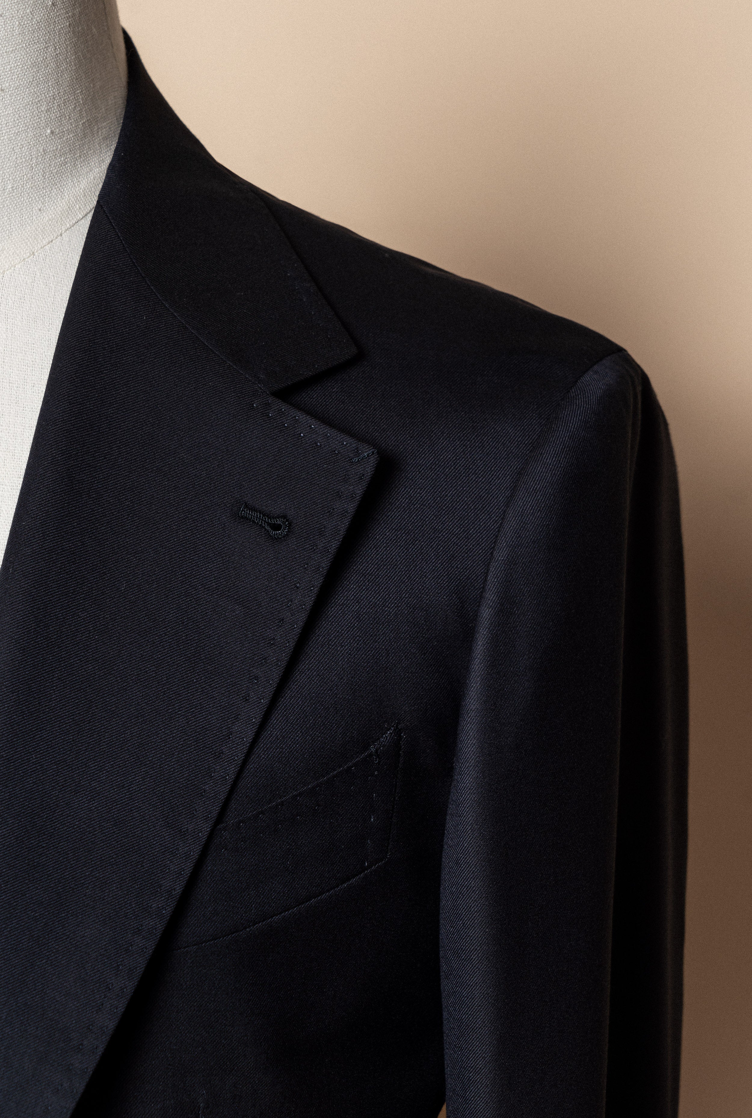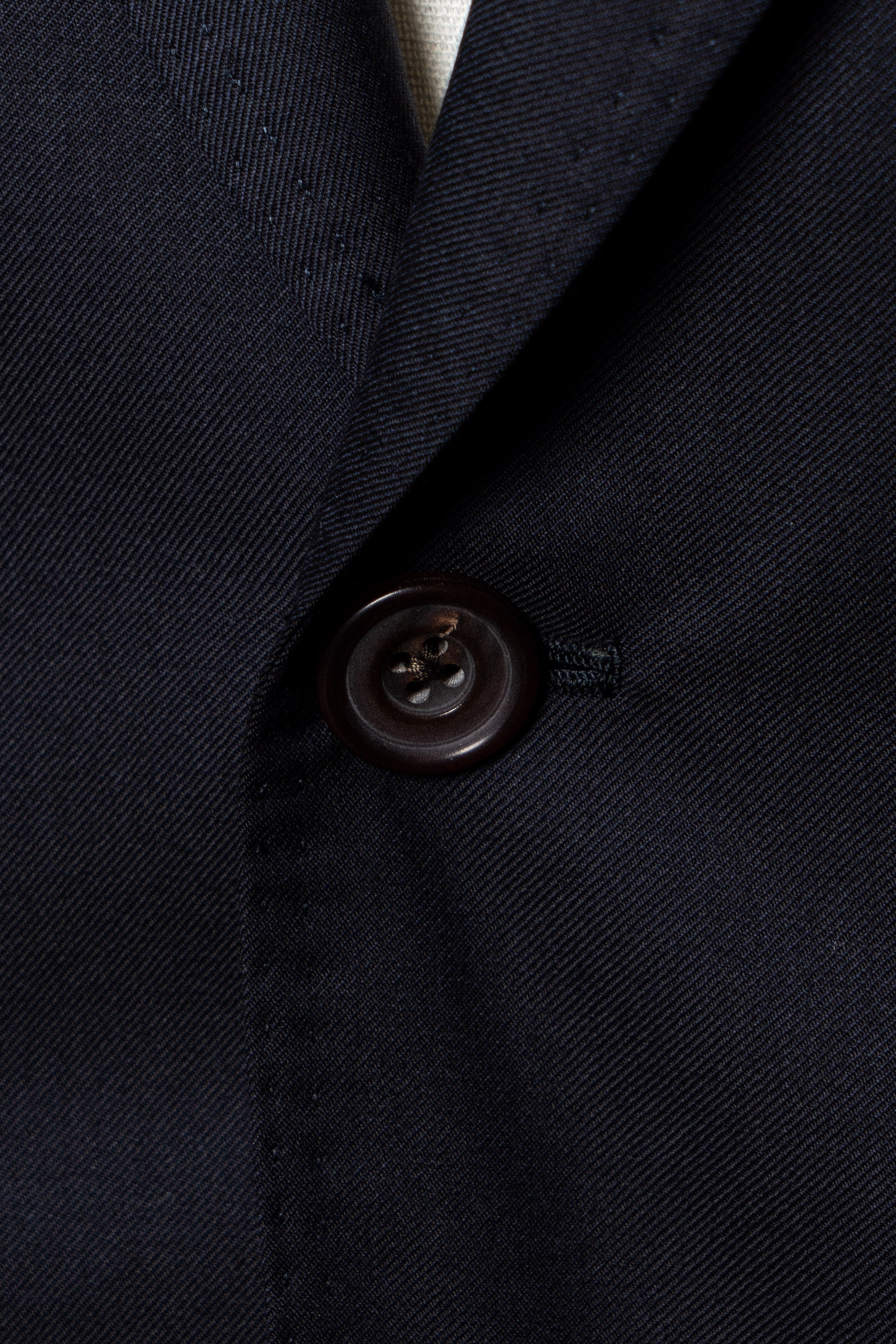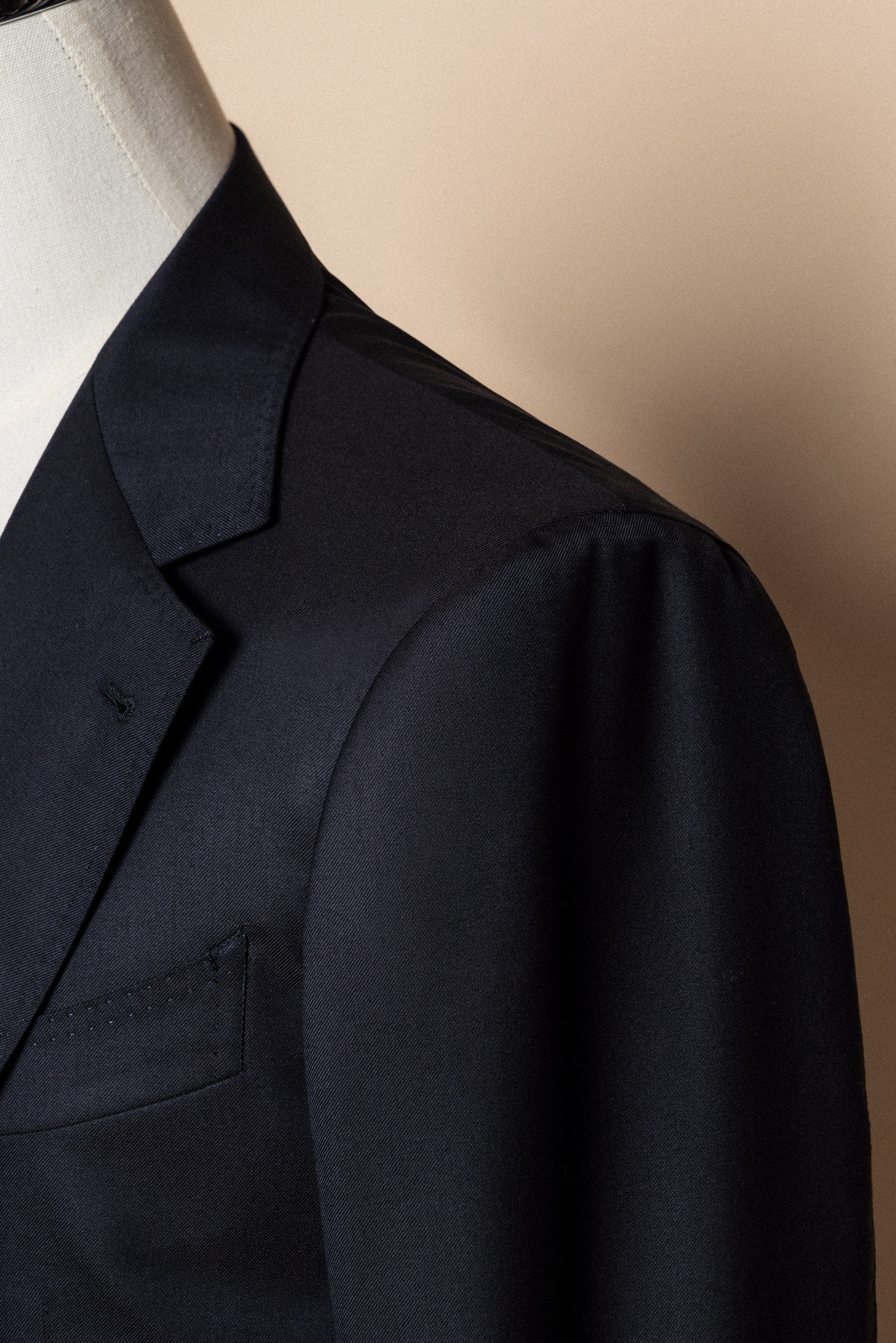 • Crafted from ultra-fine 15 micron Super 160s wool, this Navy Twill Suit offers an elevated take on a timeless classic. The elegant twill weave gives the fabric a soft diagonal texture and gentle sheen, while the high-twist yarns ensure breathability, resilience, and a fluid drape. Lightweight yet refined, it’s an ideal choice for year-round sophistication in both business and formal settings.