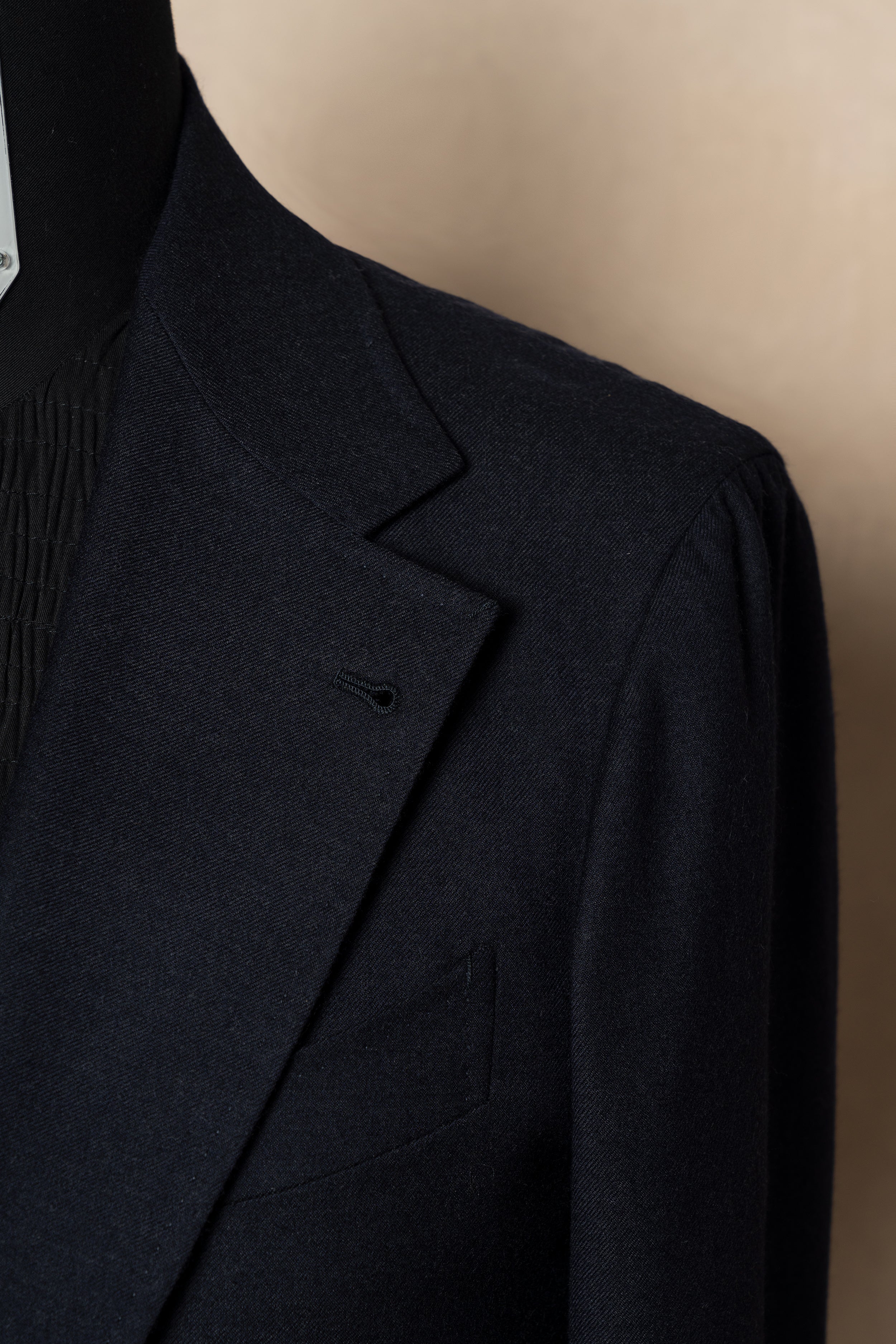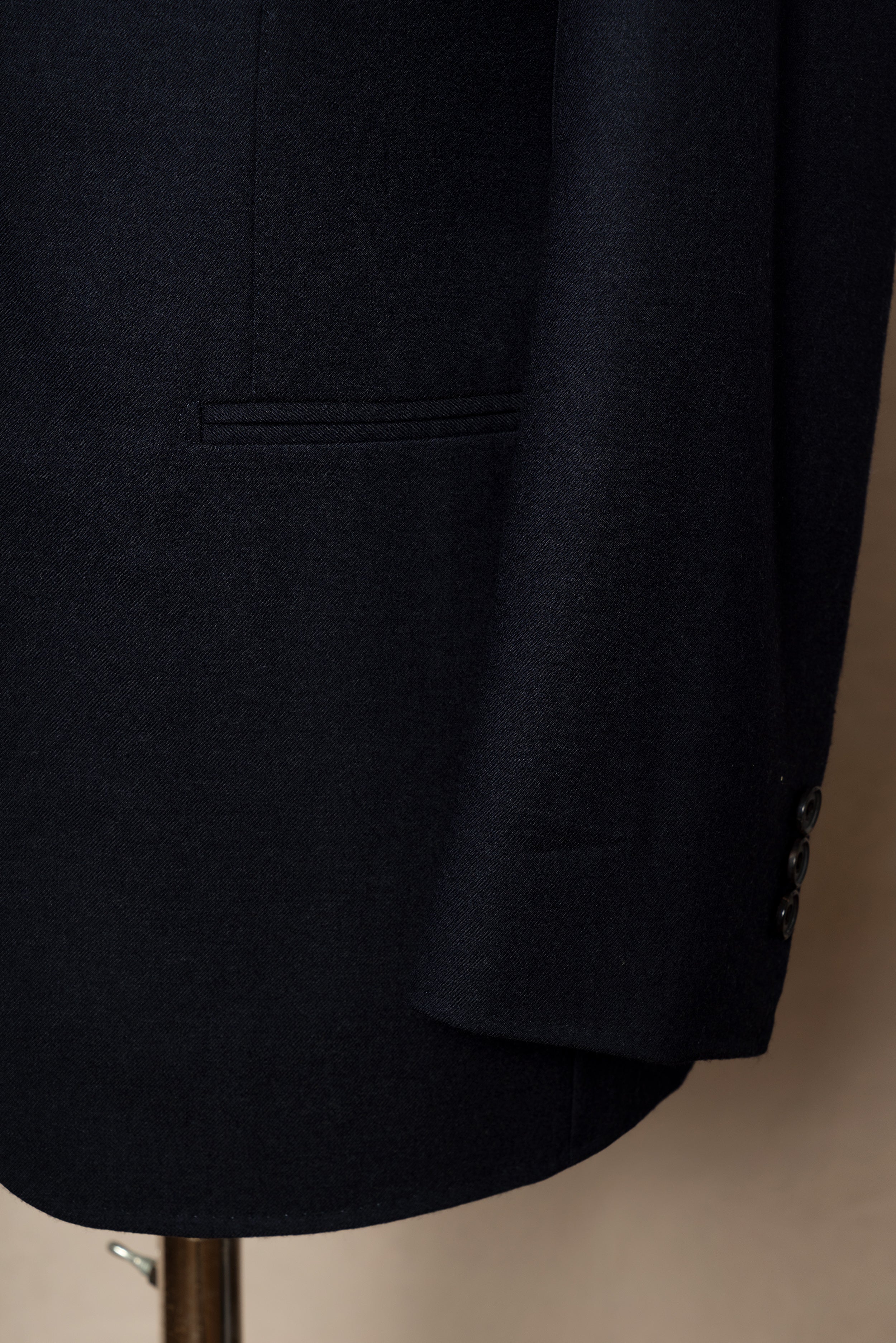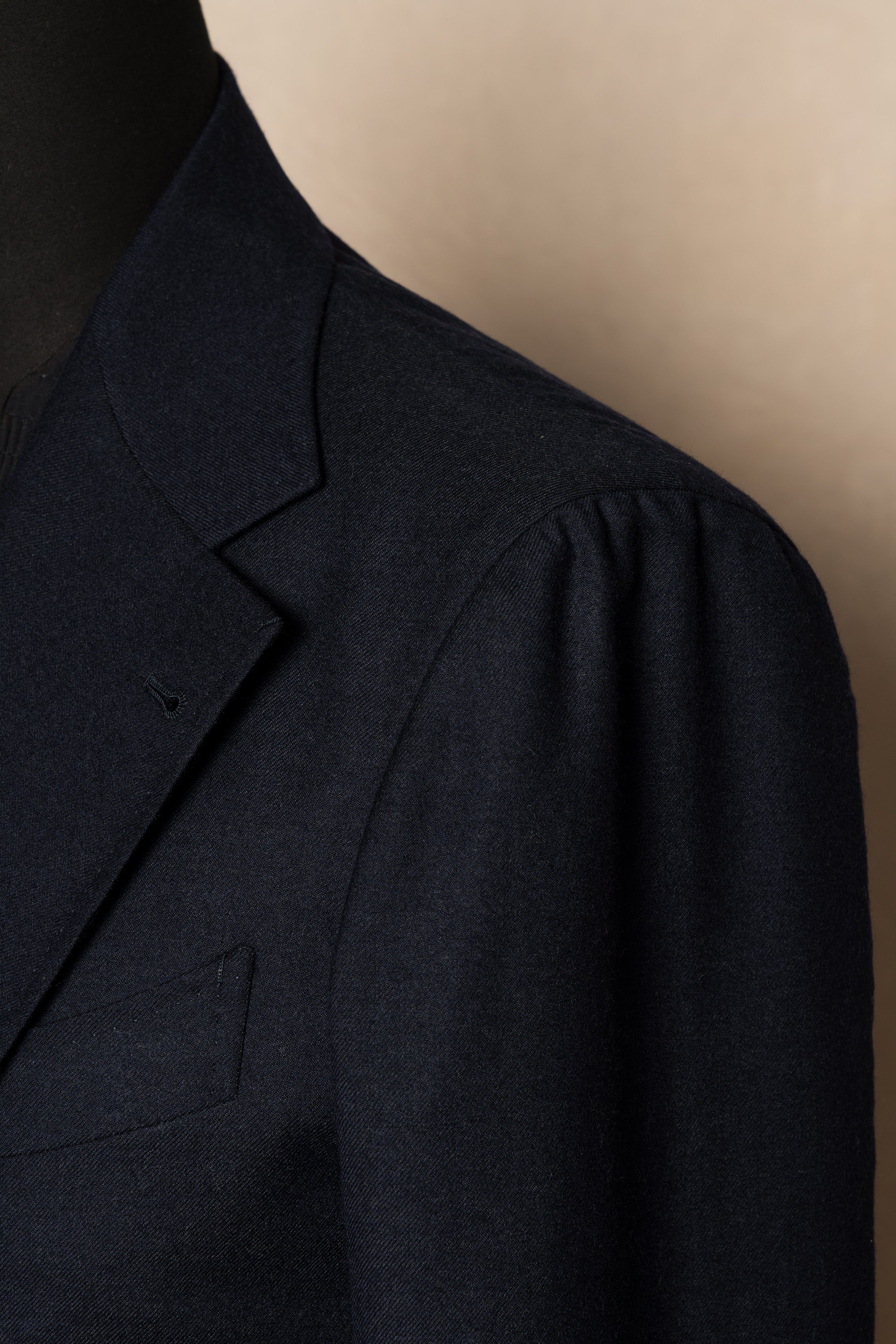 • The Navy Worsted Flannel Suit blends timeless elegance with refined craftsmanship. Made from high-quality worsted flannel, it offers a smooth yet slightly textured feel, while the subtle chalk stripes enhance its classic appeal. Perfect for business or formal occasions, this suit delivers both sophistication and comfort.