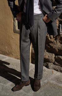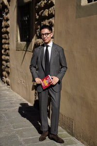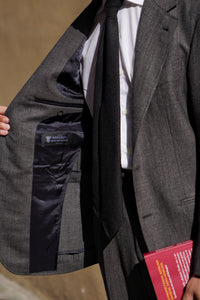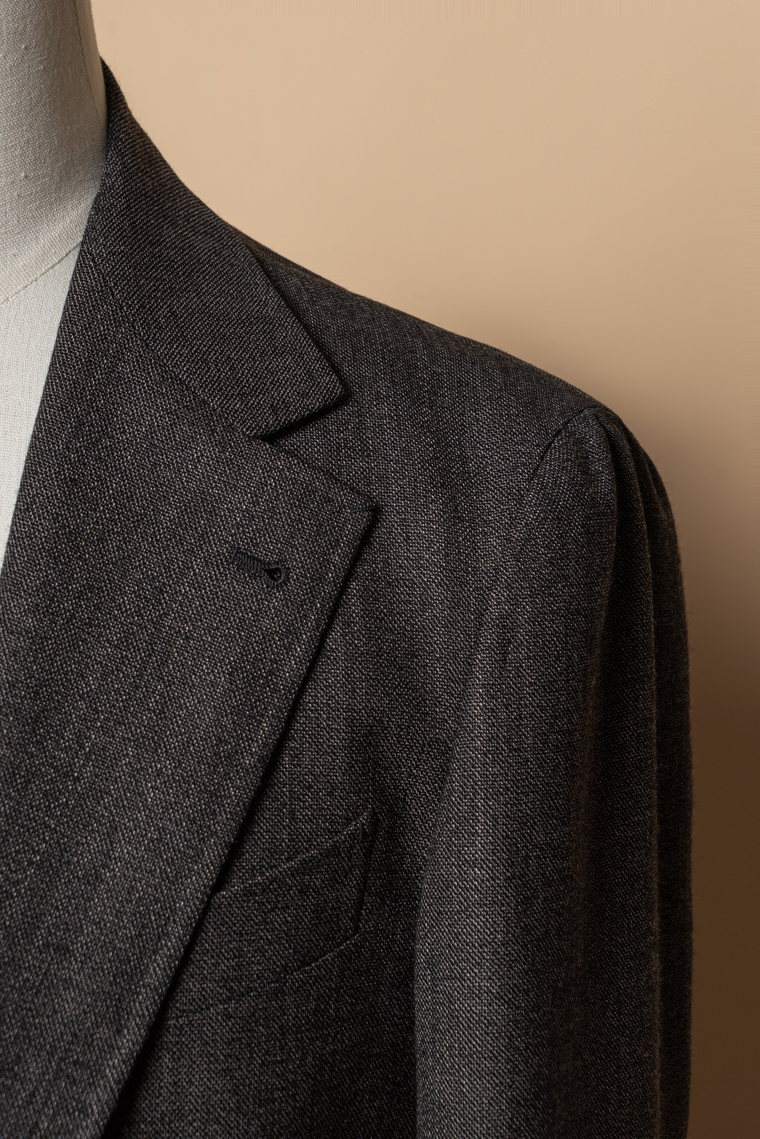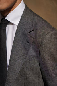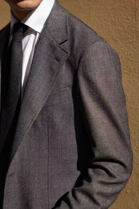 The MTO Taupe Sharkskin Wool Suit crafted from Dormeuil Sportex is a refined modern classic, tailored from robust yet elegant Sportex wool. The subtle sharkskin weave enhances the taupe tone with depth and dimension, creating a versatile alternative to traditional neutrals. Designed for a made-to-order fit, the suit offers a harmonious balance of durability, comfort, and sophistication, making it equally well-suited for formal occasions and contemporary business attire.