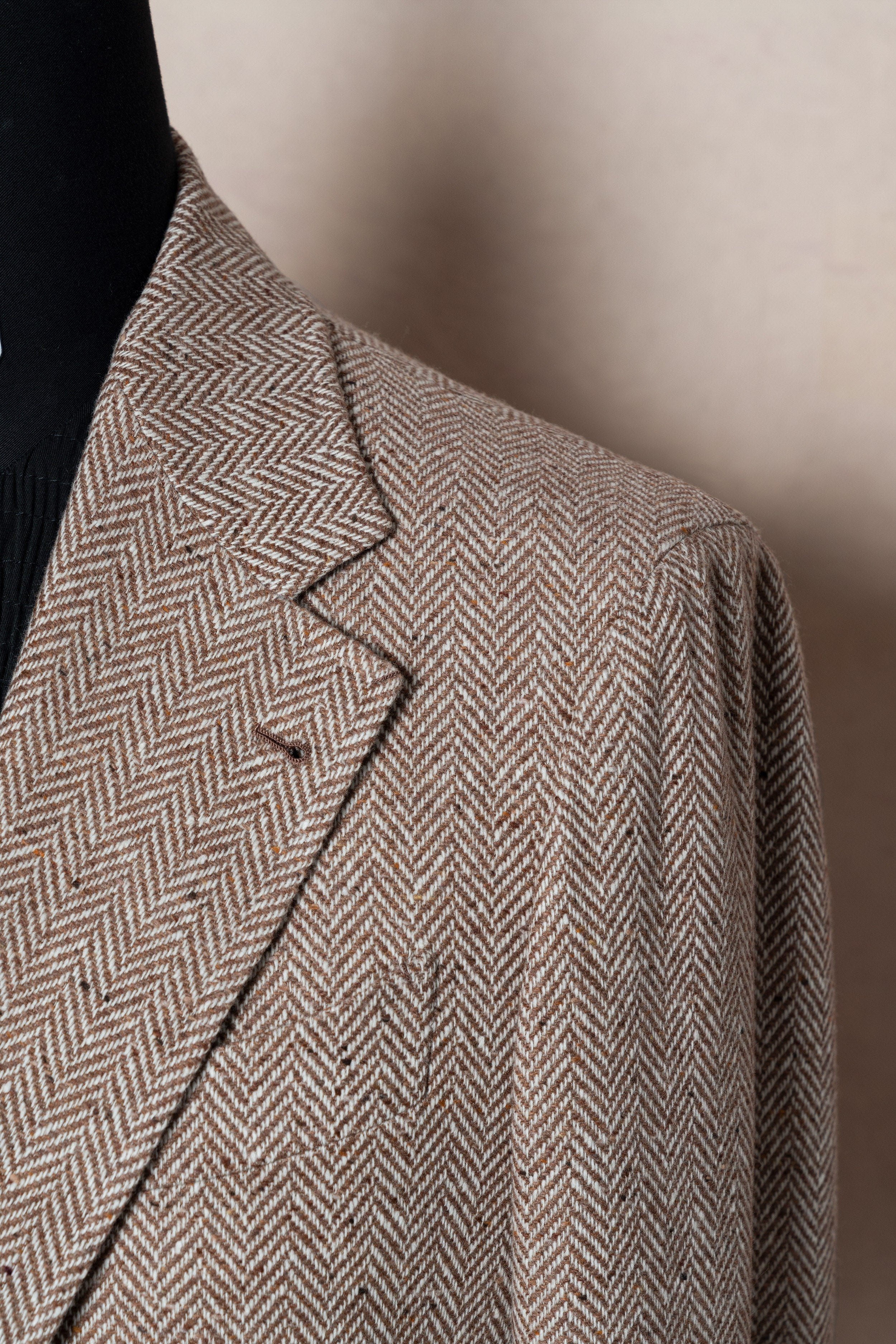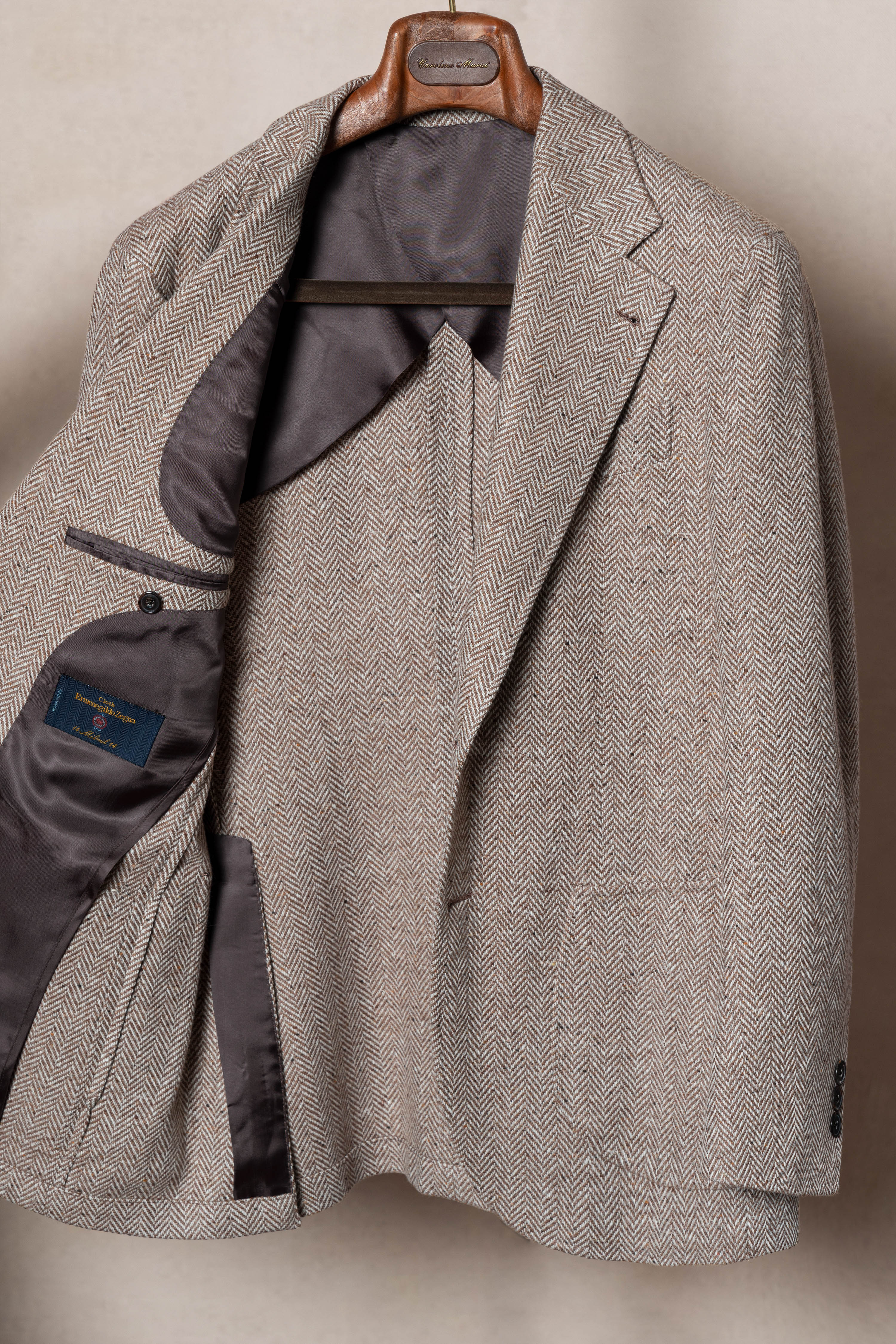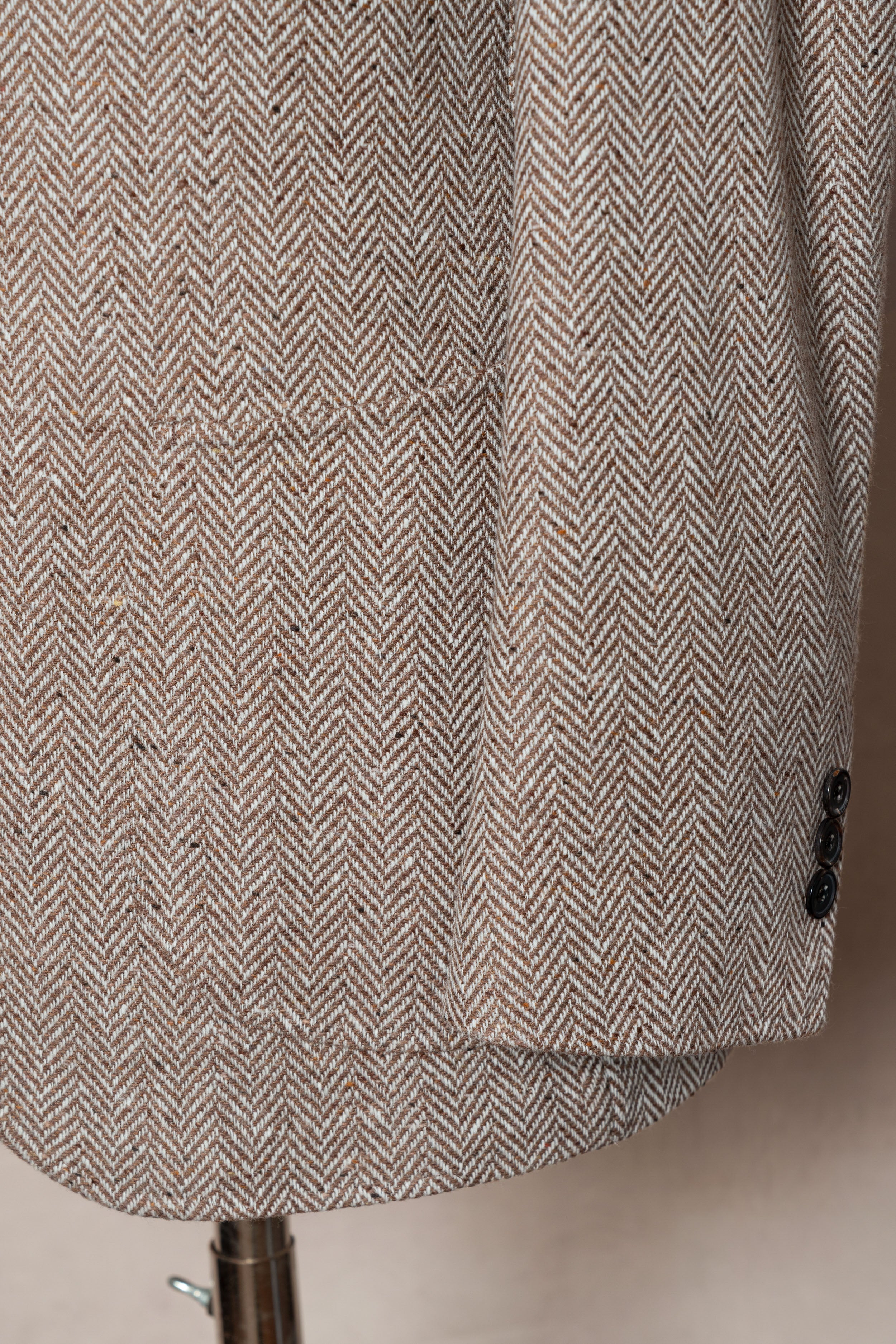 • The Camel Herringbone Blending Jacket exudes timeless elegance with its refined herringbone weave and luxurious fabric. Crafted from a premium blend of fine wool and ultra-soft cashmere from Zegna 14 Milmil, it offers exceptional comfort, warmth, and sophistication. The rich camel hue enhances its versatility, making it a perfect choice for both formal and smart-casual occasions.