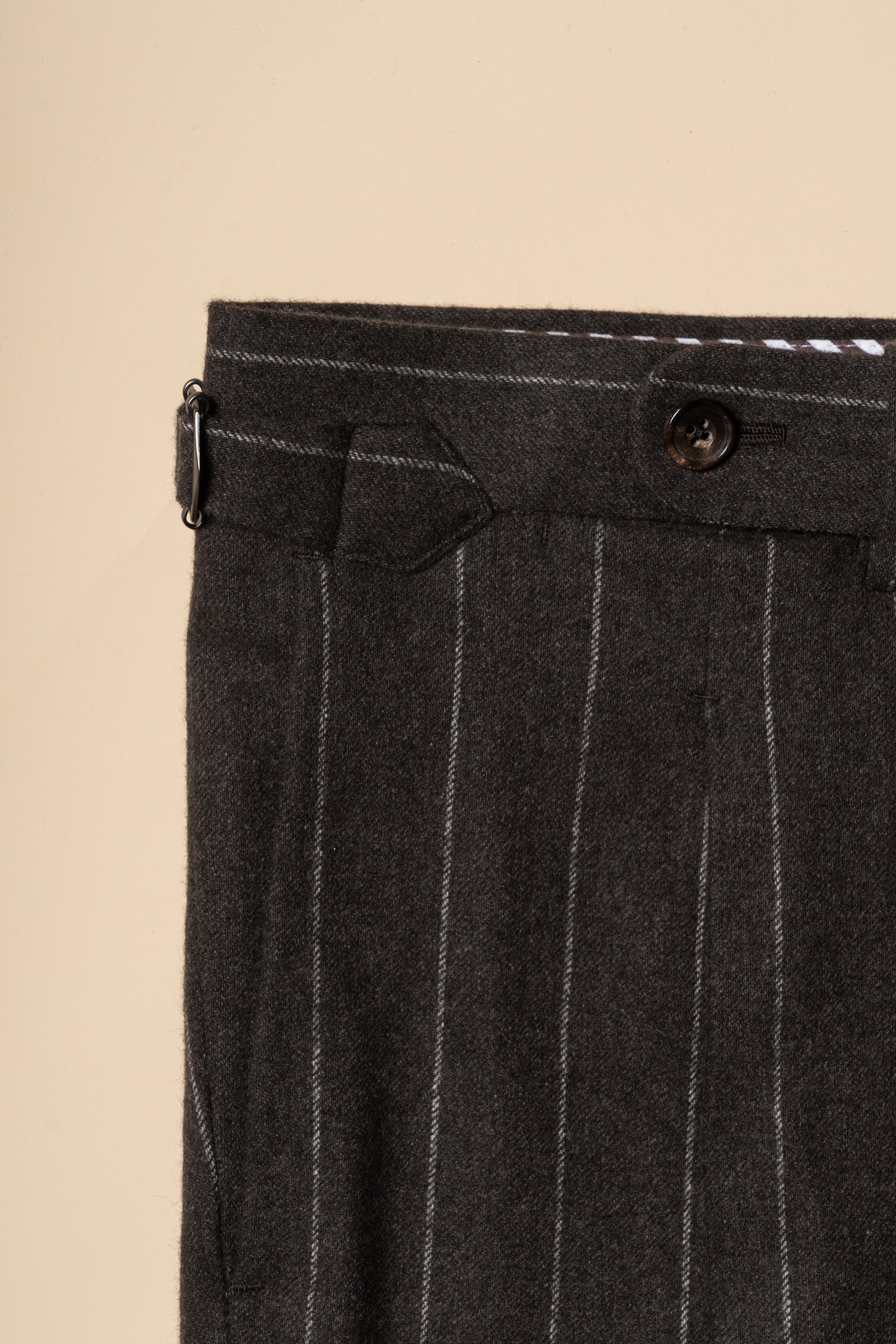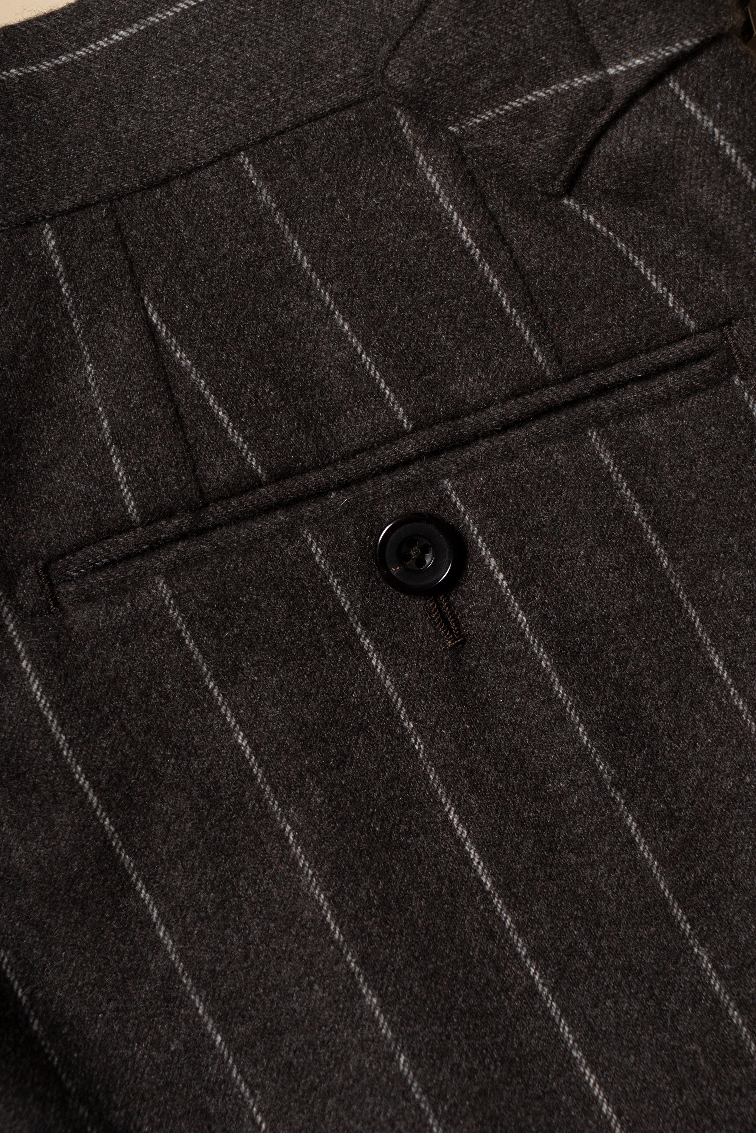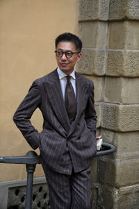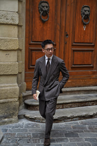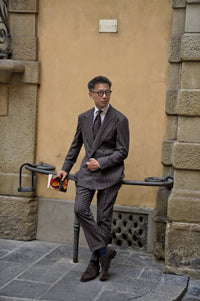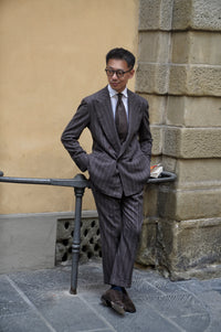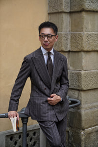 The Brown Chalkstripe Worsted Flannel Suit is crafted from premium worsted flannel, featuring a subtle chalkstripe pattern for refined texture and visual interest. Its warm brown hue adds a touch of classic sophistication, while the soft flannel provides comfort and structure. Designed for versatility across business and formal occasions, this suit embodies timeless elegance with understated modernity.