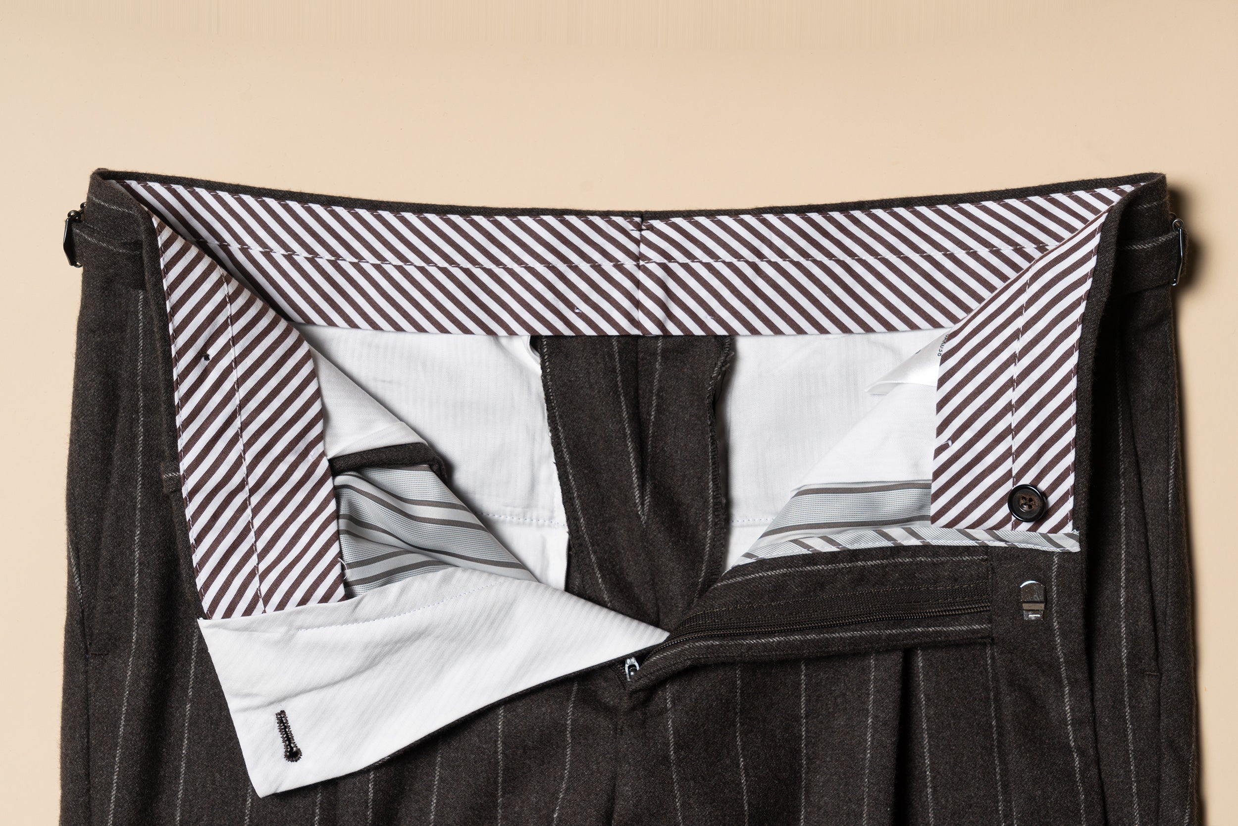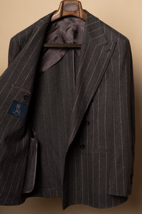 MTO Brown Chalkstripe Worsted Flannel Suit #499