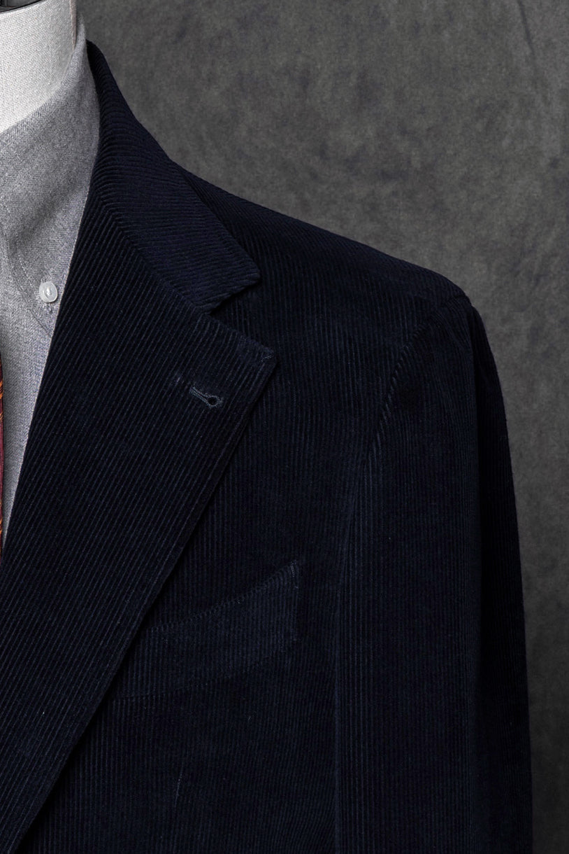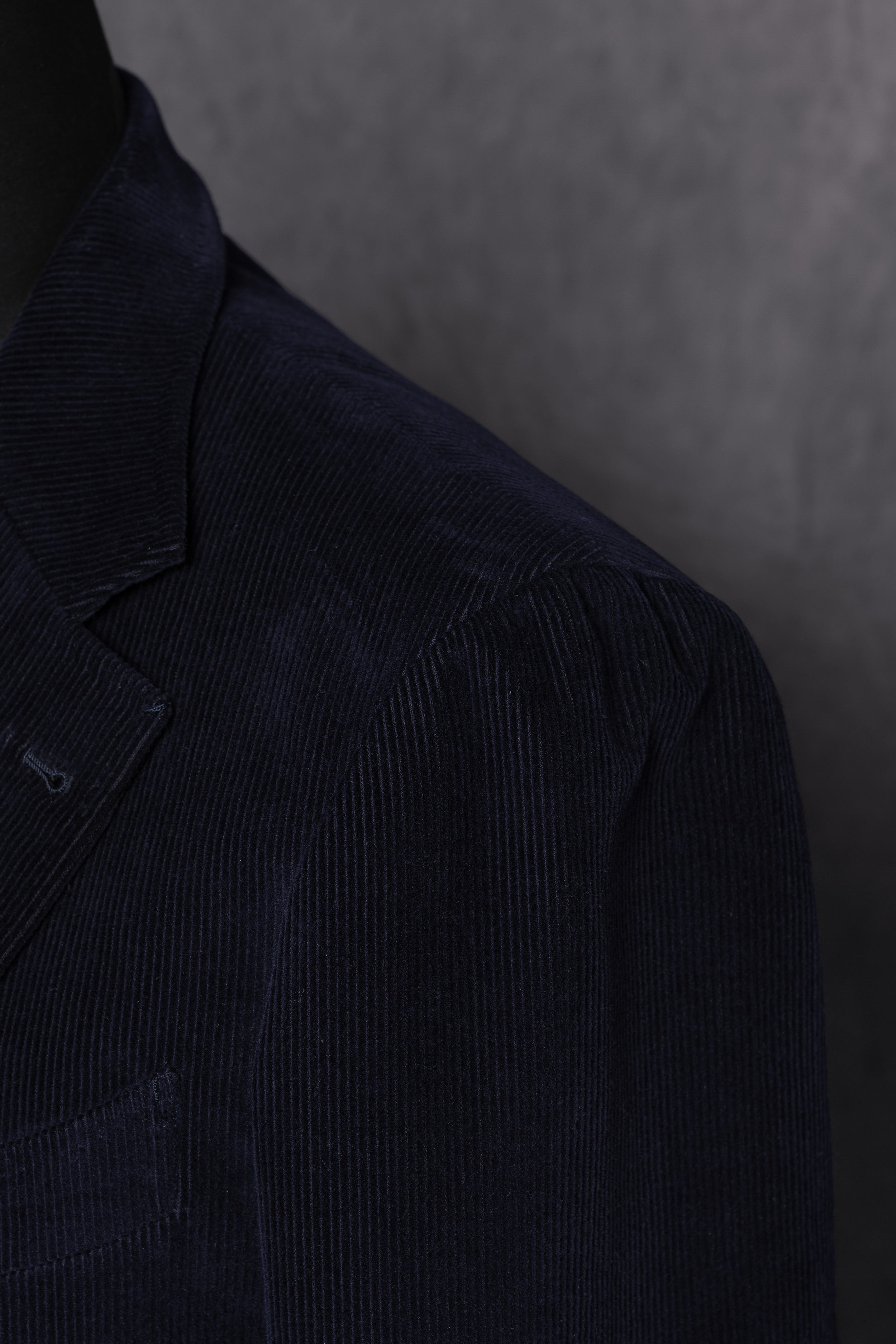 - The Navy Corduroy Jacket combines classic tailoring with a rich, textured finish. Crafted from soft, fine-wale corduroy, its deep navy hue enhances versatility and sophistication. Designed with a structured yet comfortable fit, this jacket is perfect for smart-casual styling, offering a refined look with a touch of relaxed elegance.