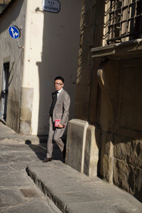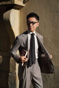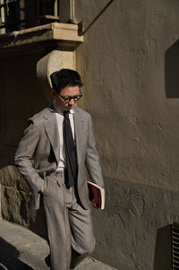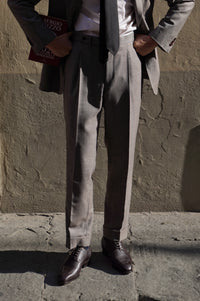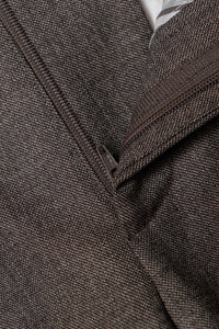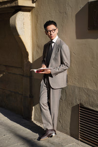 • The Taupe Sharkskin Worsted Wool Suit is tailored from premium worsted wool with a subtle two-tone sharkskin weave, creating a refined texture and gentle sheen. Its versatile taupe hue brings a modern twist to classic tailoring, making it ideal for both professional and elegant social settings. With a smooth drape and timeless silhouette, this suit perfectly balances sophistication and contemporary style.