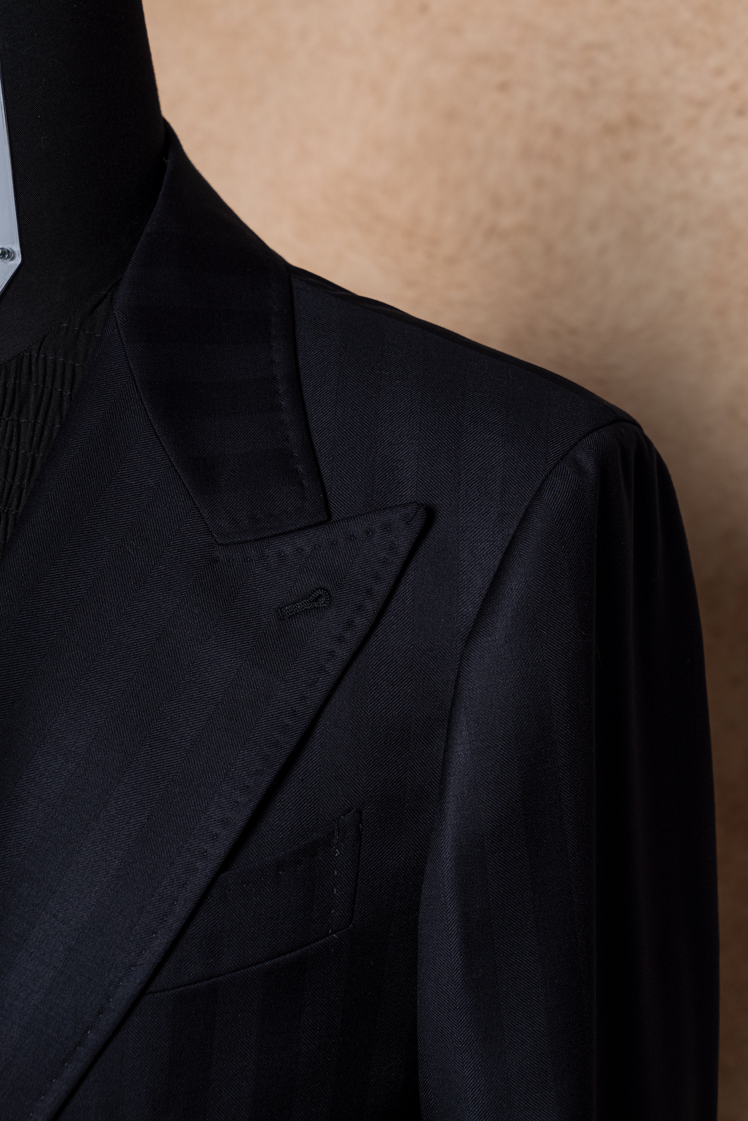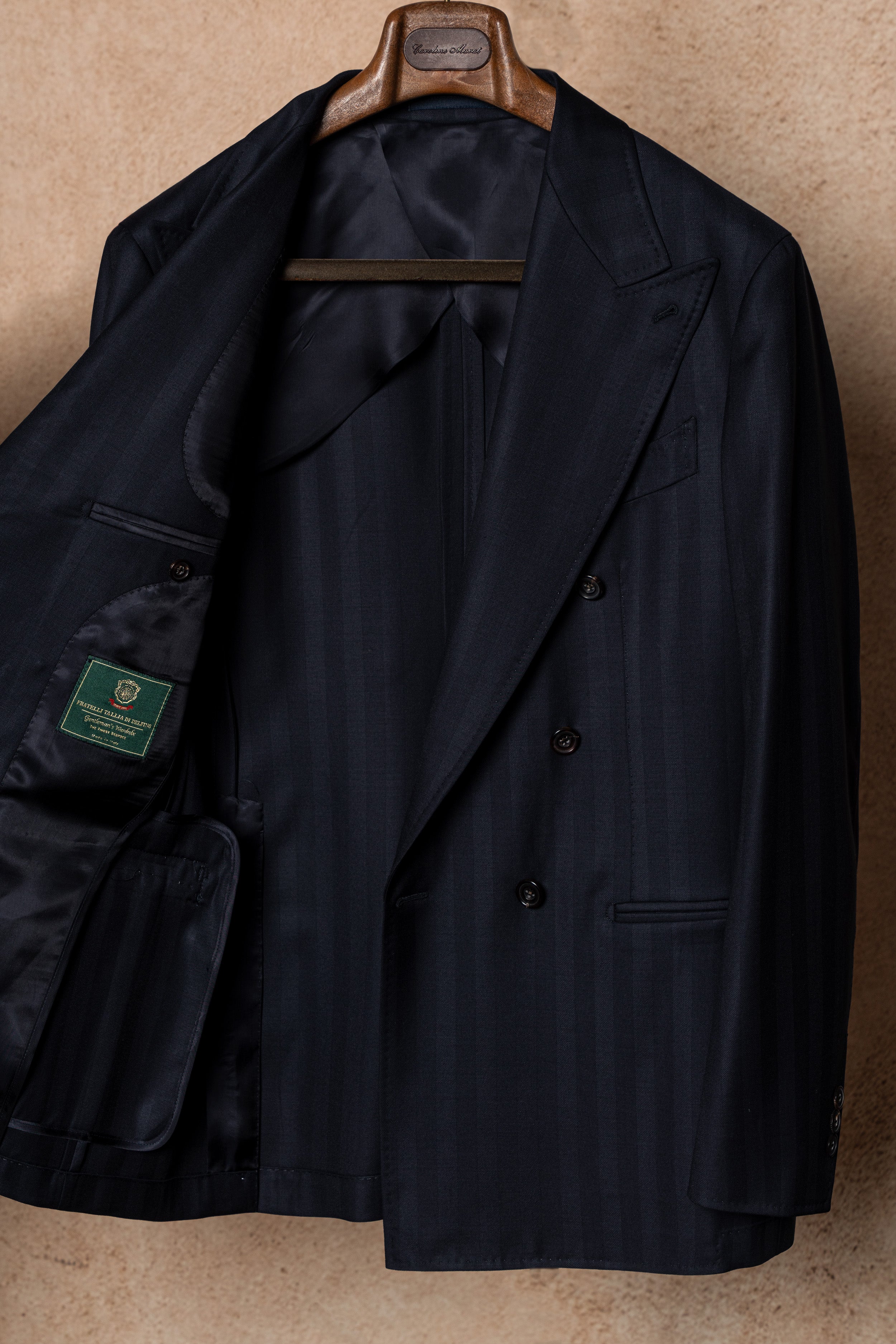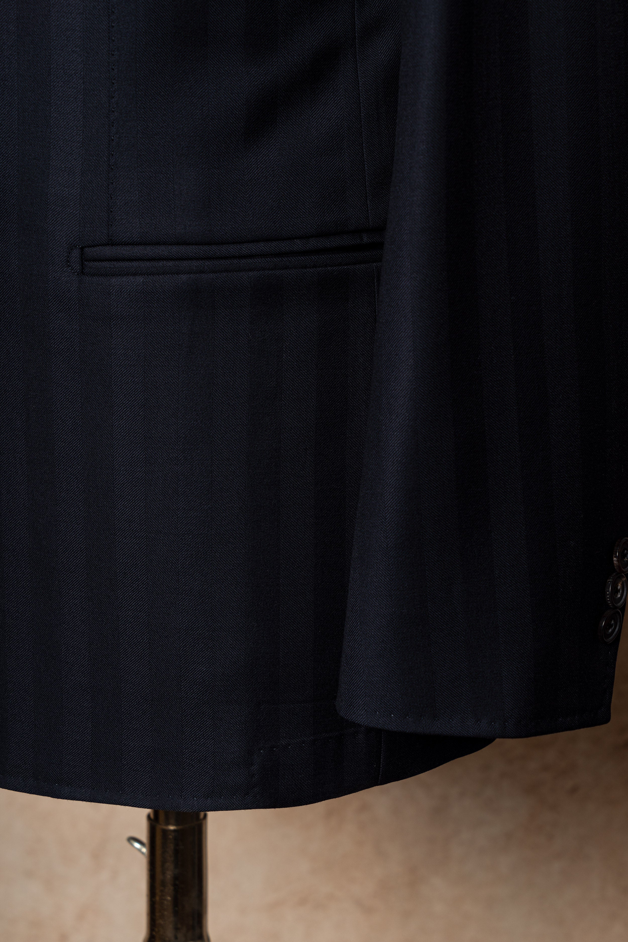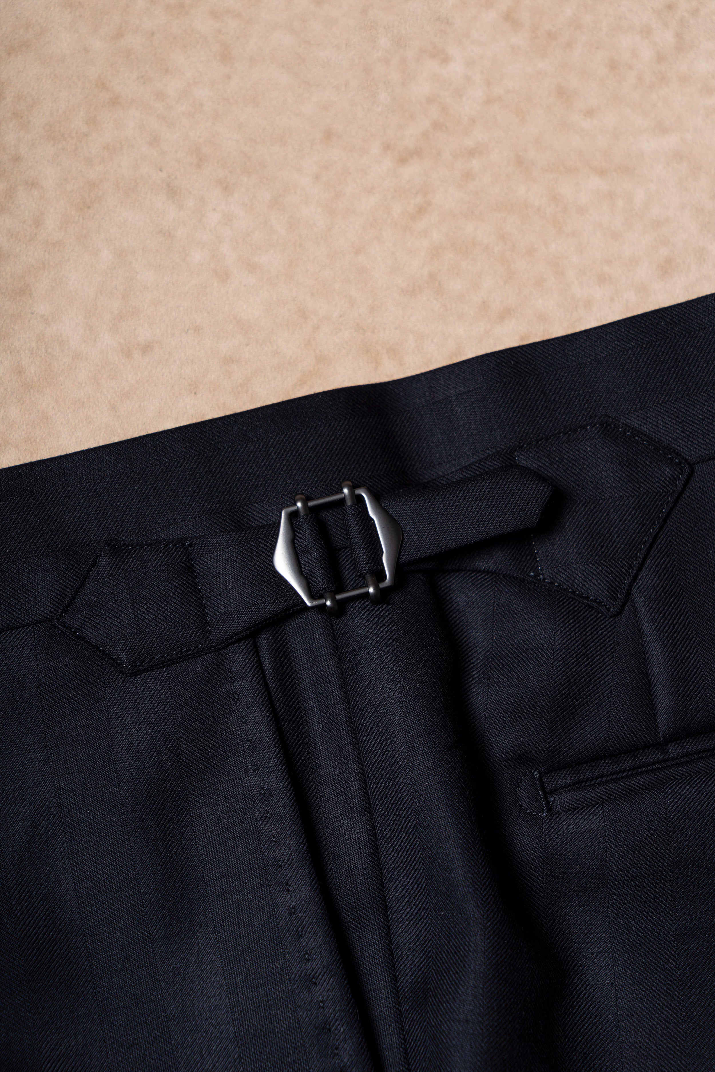 • Crafted from luxurious Super 120s wool, this Navy Herringbone Suit combines smooth texture with a timeless pattern. The subtle herringbone weave adds depth to the classic navy tone, offering a refined update to traditional tailoring. Lightweight and elegant, it's ideal for business, formal events, and year-round sophistication.