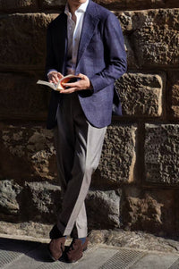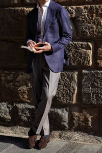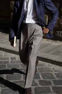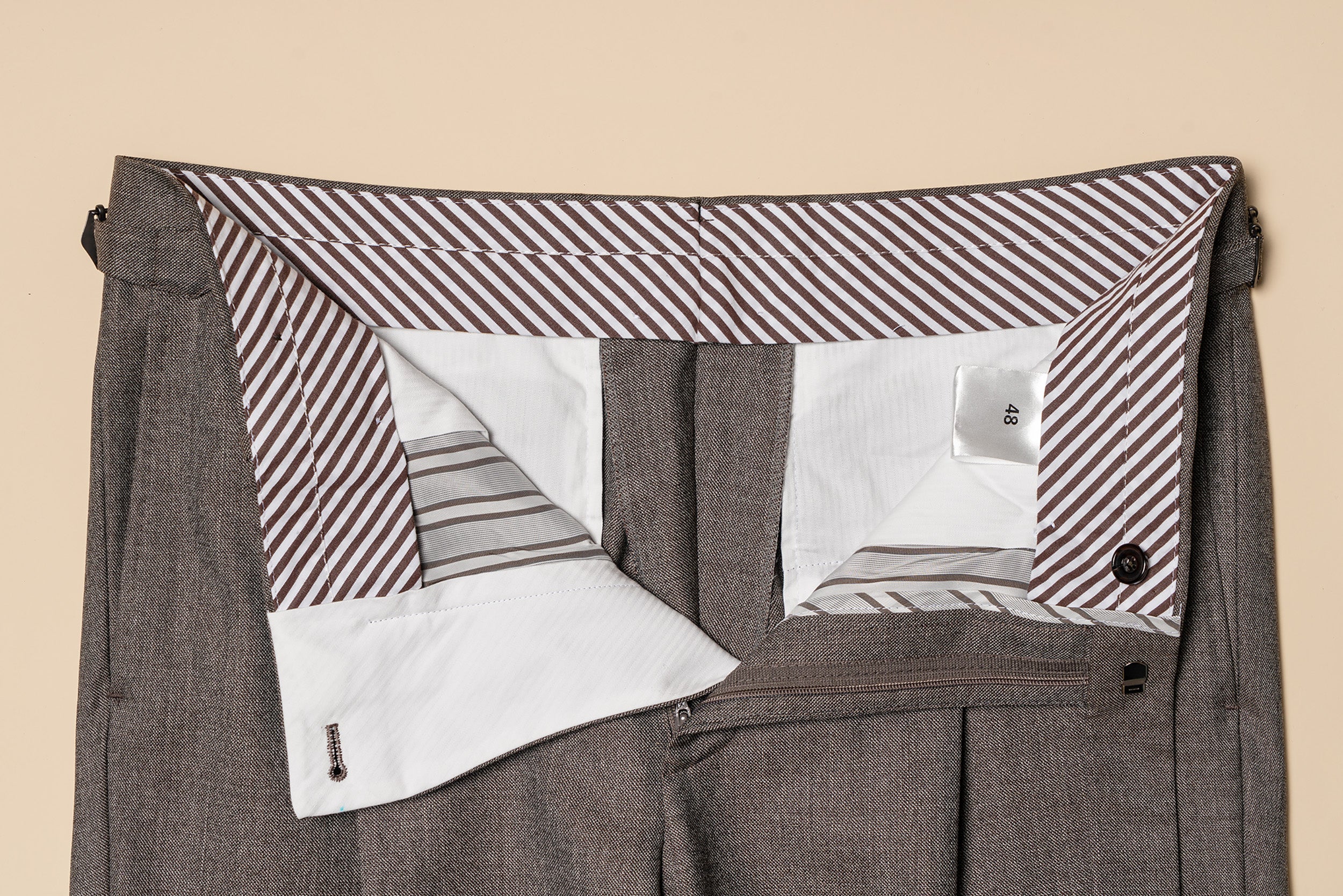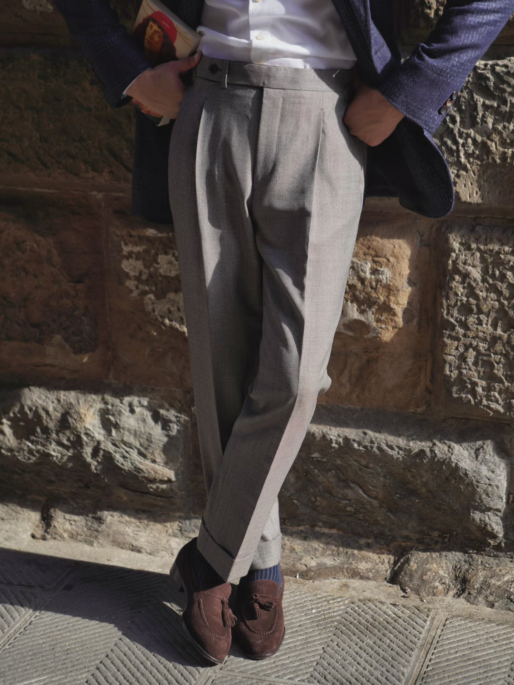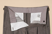 • The Taupe Worsted Wool Sharkskin Trousers are a sophisticated wardrobe staple, woven from fine worsted wool with a subtle sharkskin texture that adds depth and refinement. The soft taupe hue offers a versatile, contemporary alternative to traditional neutrals. Cut with a clean, tailored silhouette, they balance elegance and comfort, making them ideal for both formal occasions and smart-casual ensembles.