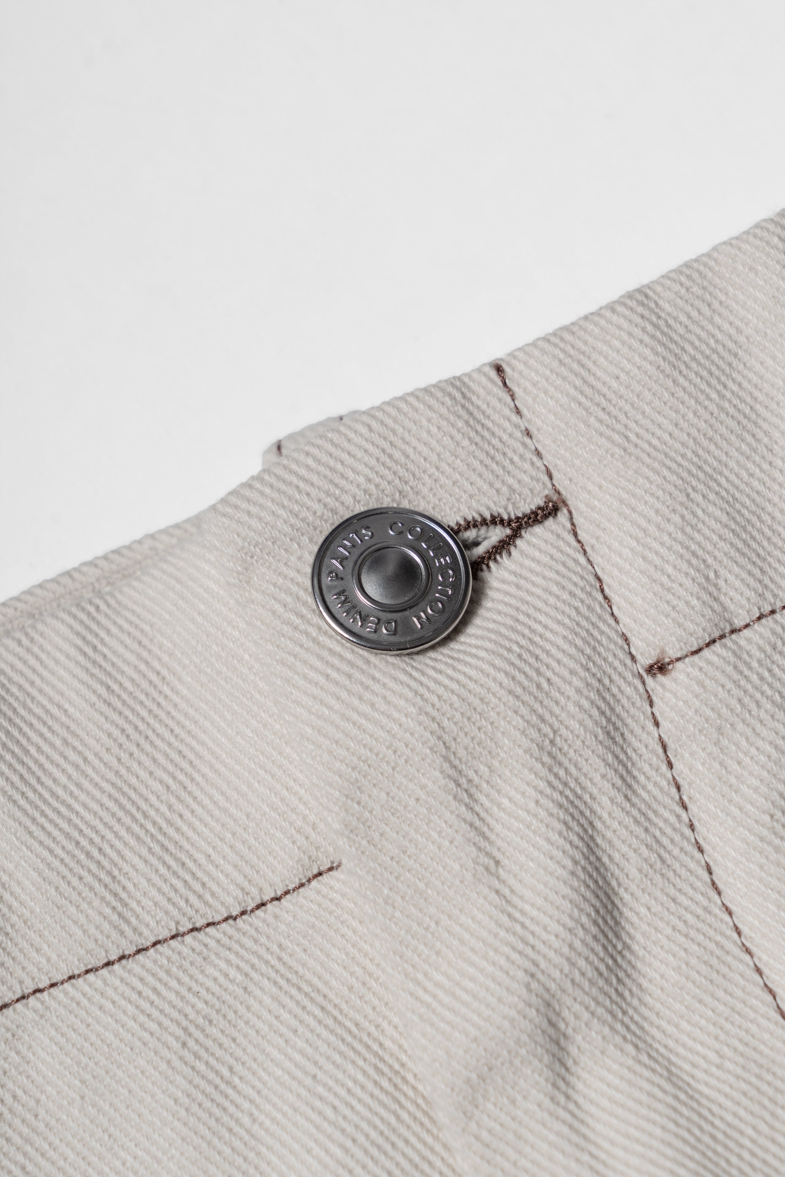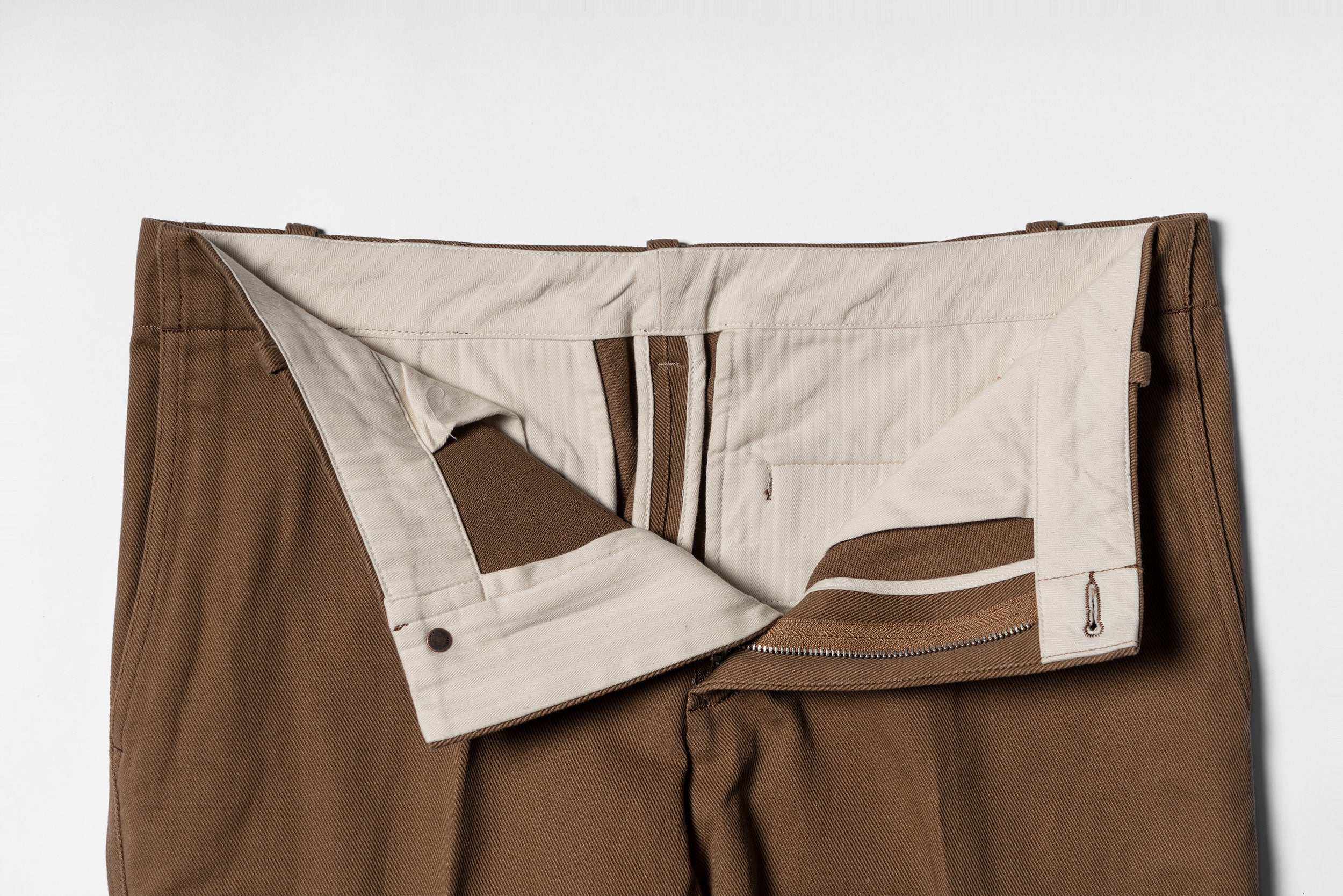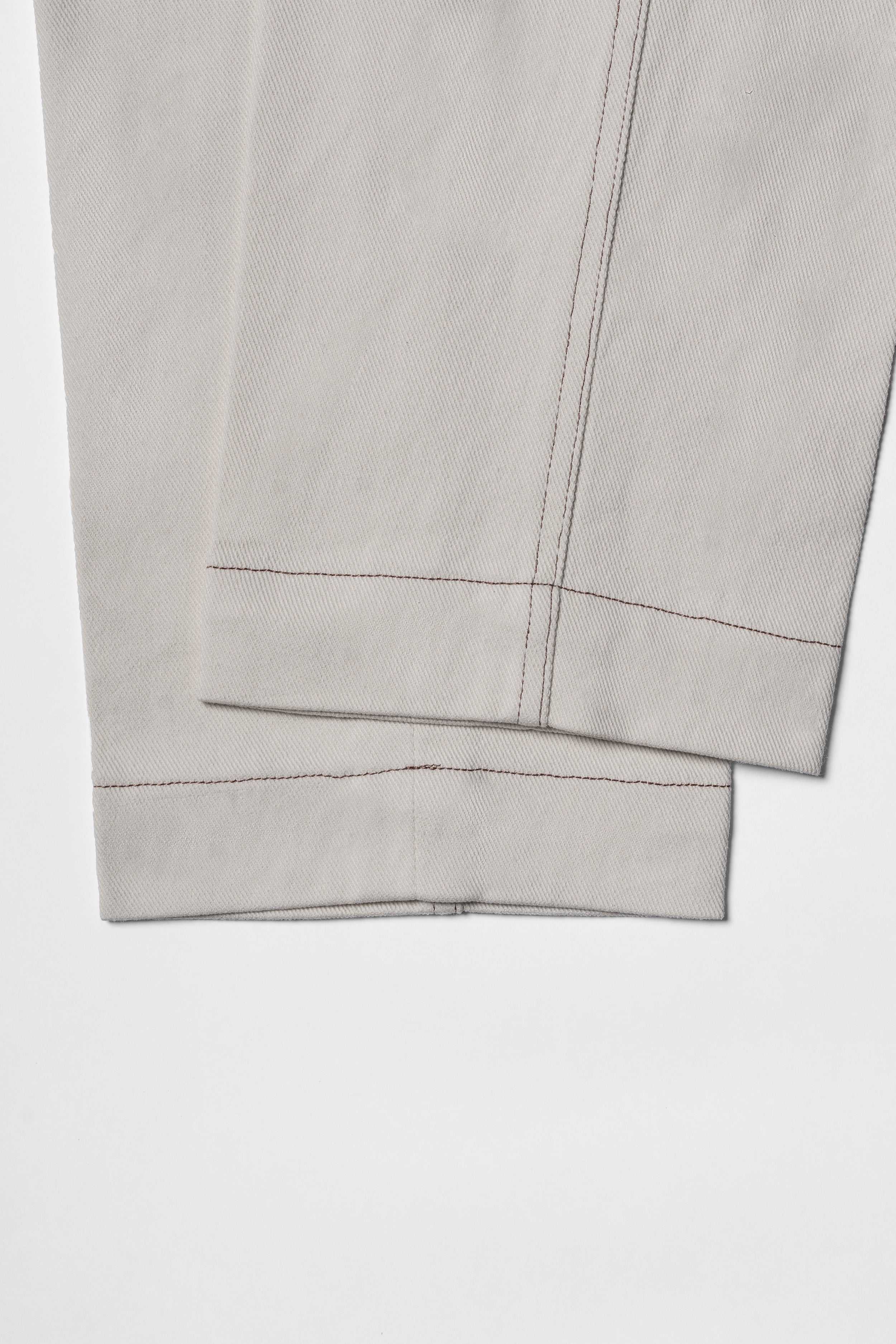 These washed twill cotton chinos come in dark green, dark khaki, and ivory—each offering a timeless, understated palette. Crafted from heavy-weight cotton with a soft, broken-in feel, they feature a clean silhouette, subtle taper, and classic detailing for everyday versatility. Perfectly suited for both casual layering and smart off-duty looks.