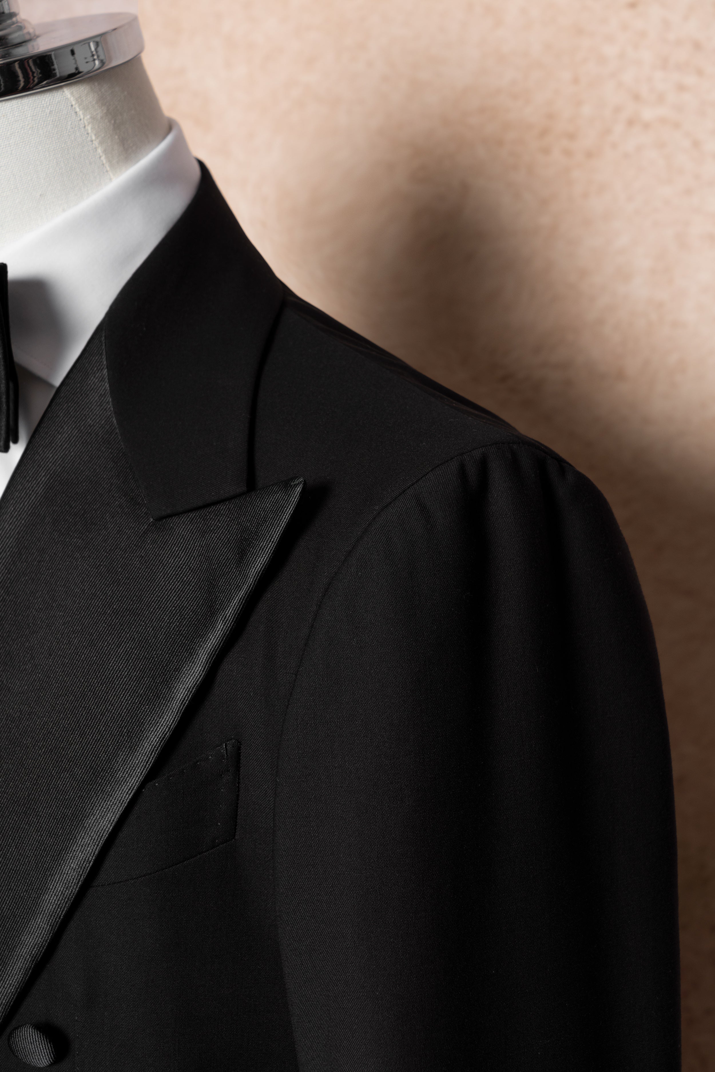 Black Wool Barathea Peak Lapel Double Breasted Dinner Suit #219