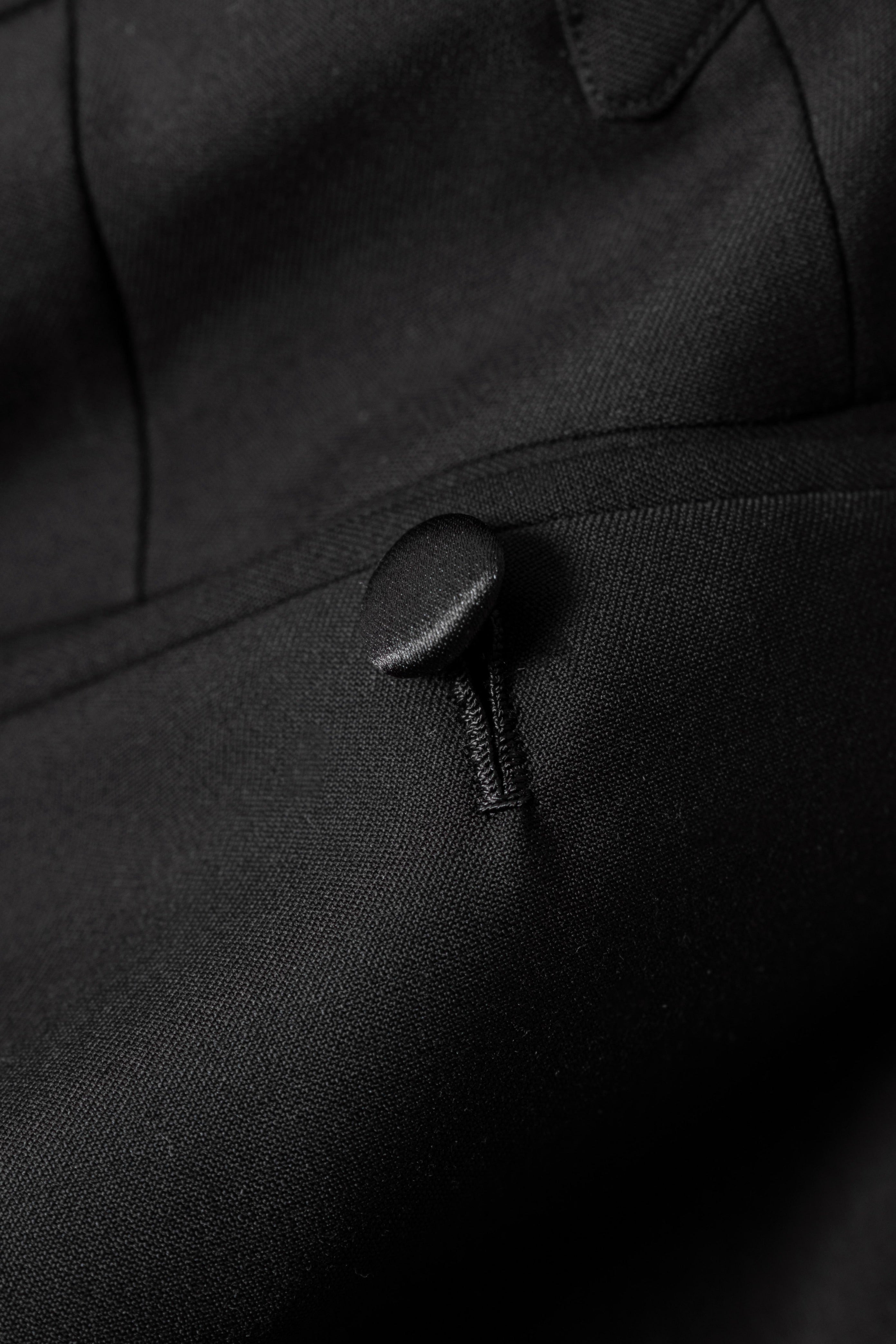 • The Black Wool Barathea Peak Lapel Single Breasted Dinner Suit is the epitome of timeless sophistication. Crafted from luxurious wool barathea, known for its fine weave and matte finish, this suit exudes understated elegance. The structured peak lapel enhances its formal appeal, making it an impeccable choice for black-tie events and special occasions. Designed for a flawless fit and classic refinement, it pairs seamlessly with a crisp dress shirt, bow tie, and polished evening shoes for a truly distinguished look.