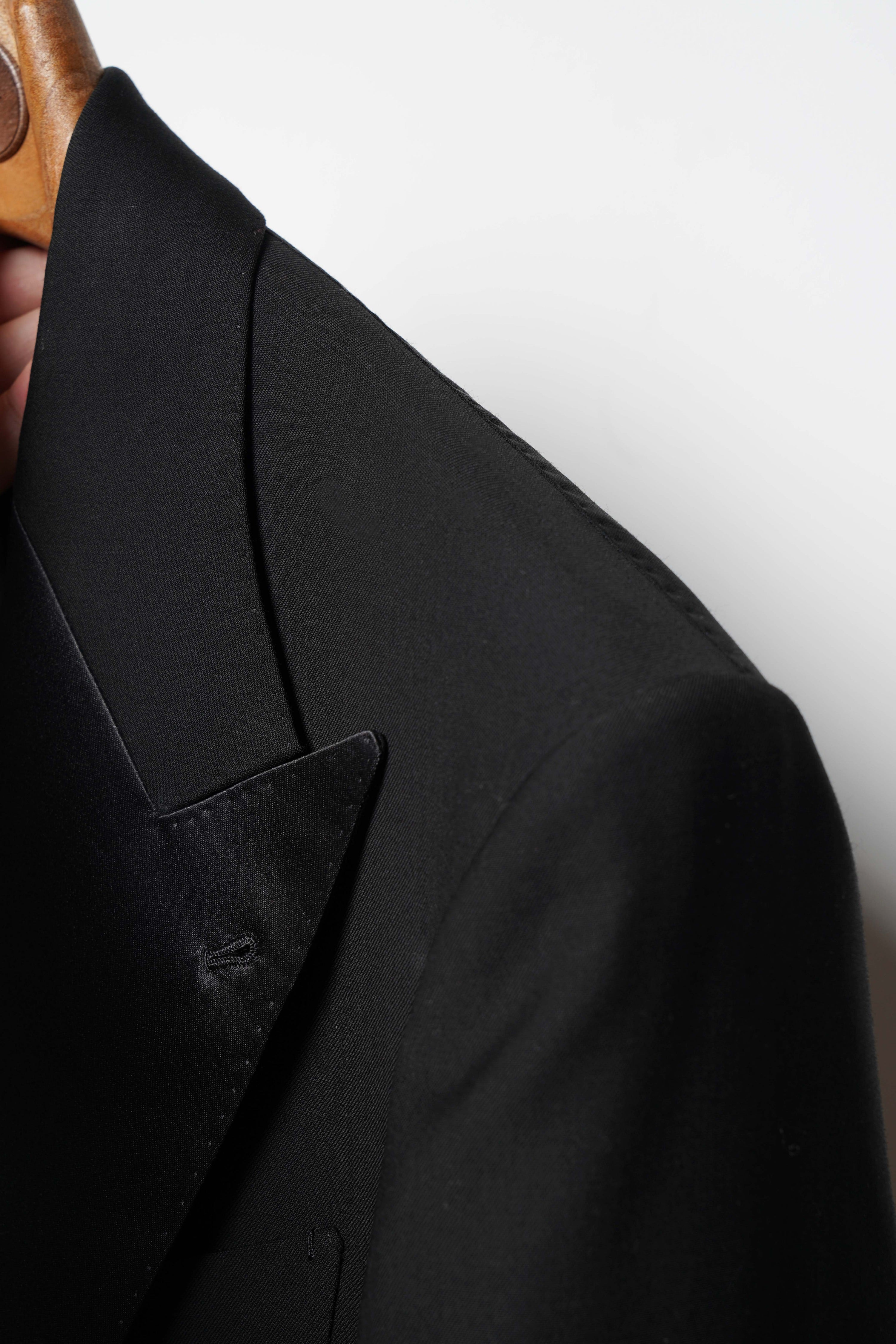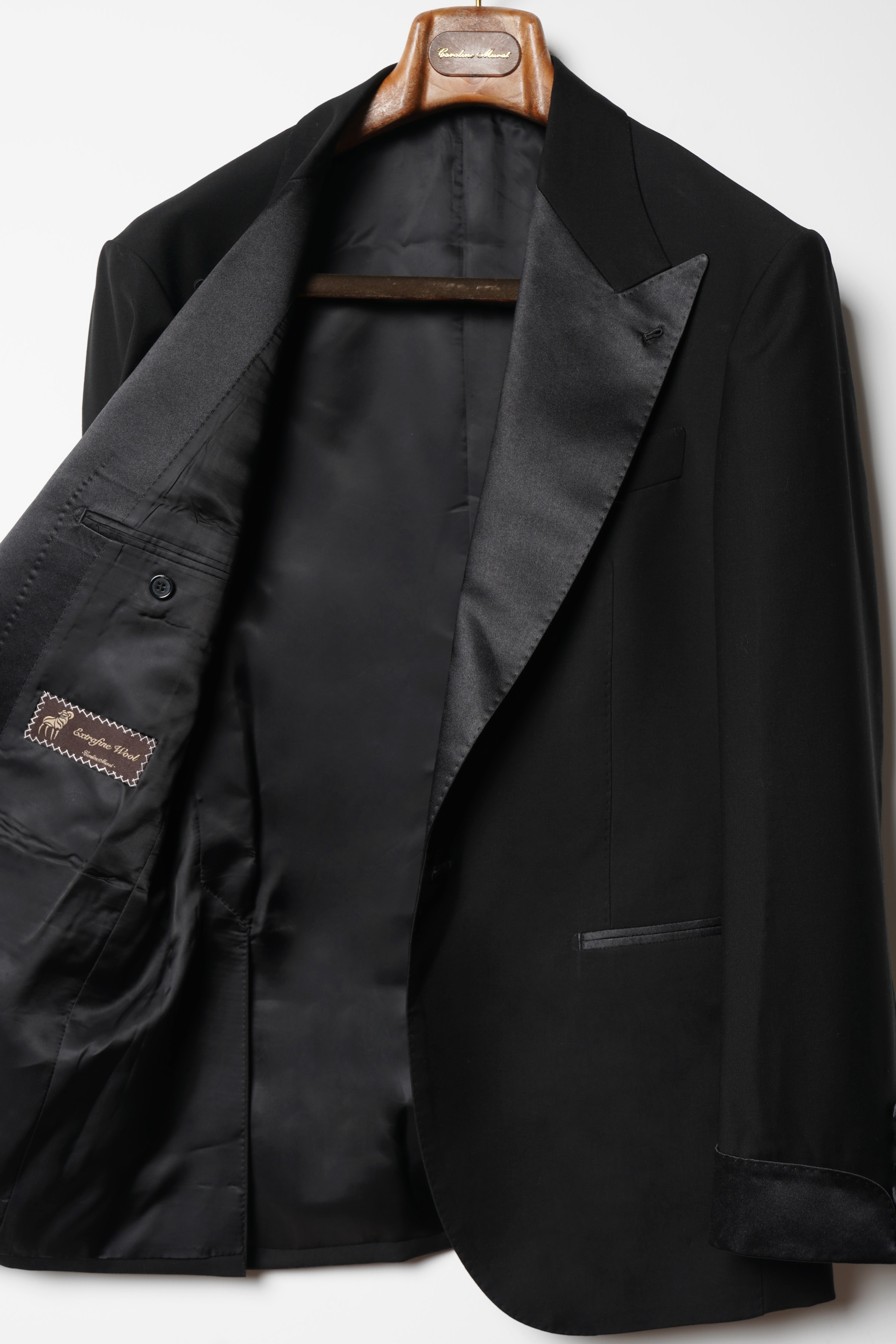 Black Wool Barathea Peak Lapel Single Breasted Dinner Suit #219