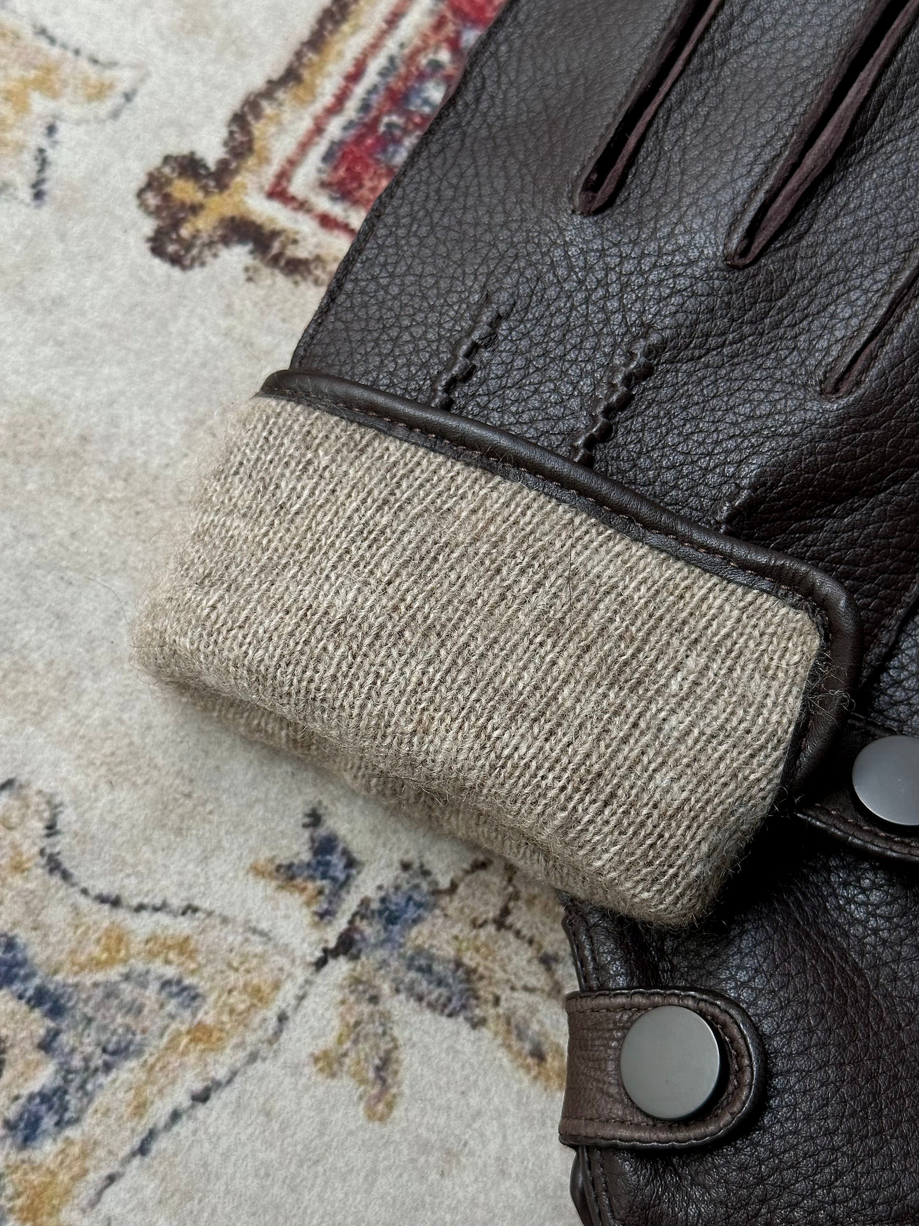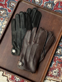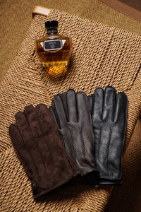 - The CM Suede / Deerskin Gloves combine timeless craftsmanship with refined practicality. Made from supple deerskin leather and goatskin suede, they offer exceptional softness, durability, and a natural elasticity that molds perfectly to the hand over time. A fine cashmere wool blending lining provides warmth without bulk, ensuring comfort through colder months. Each pair is hand-cut and stitched with meticulous precision—an embodiment of classic menswear elegance and enduring quality.