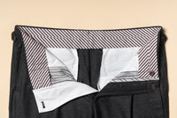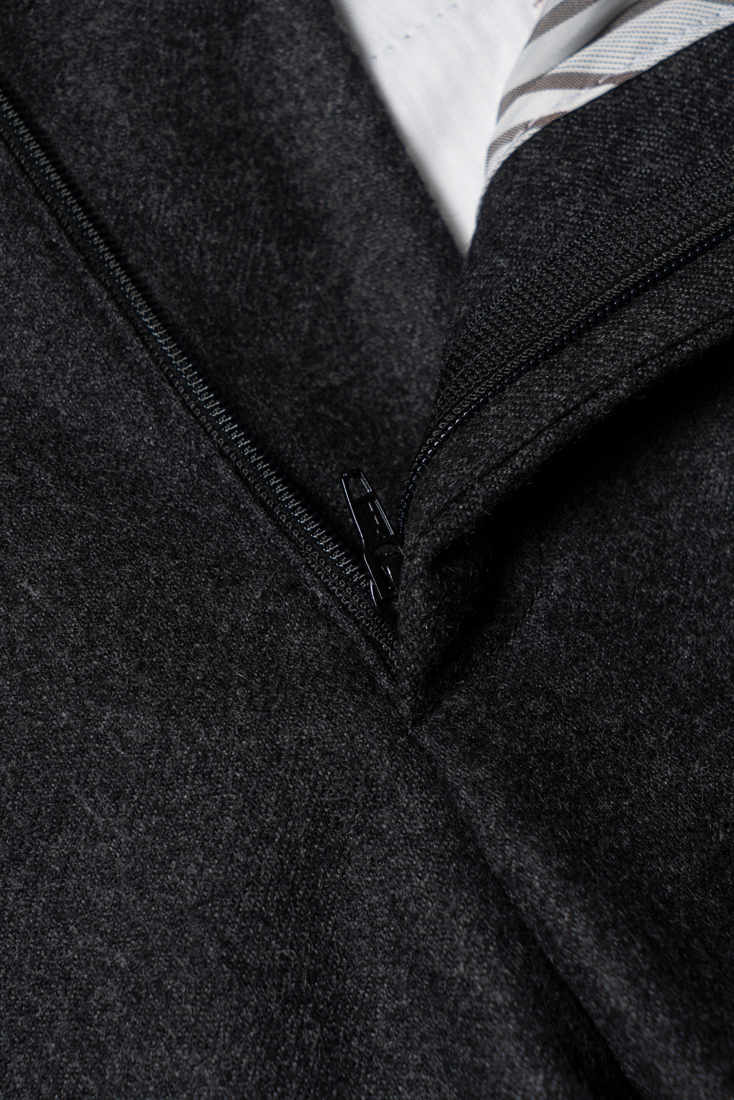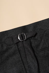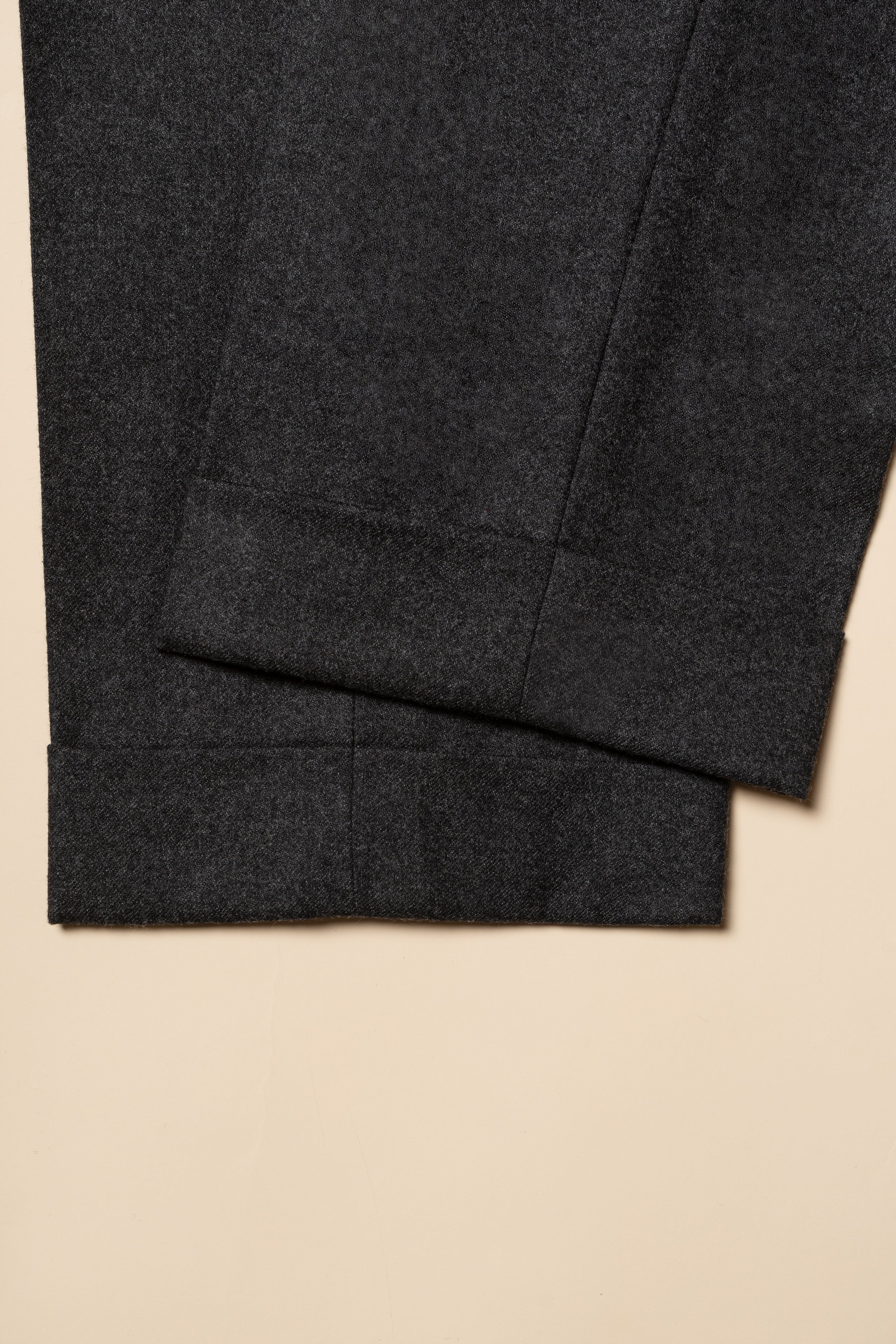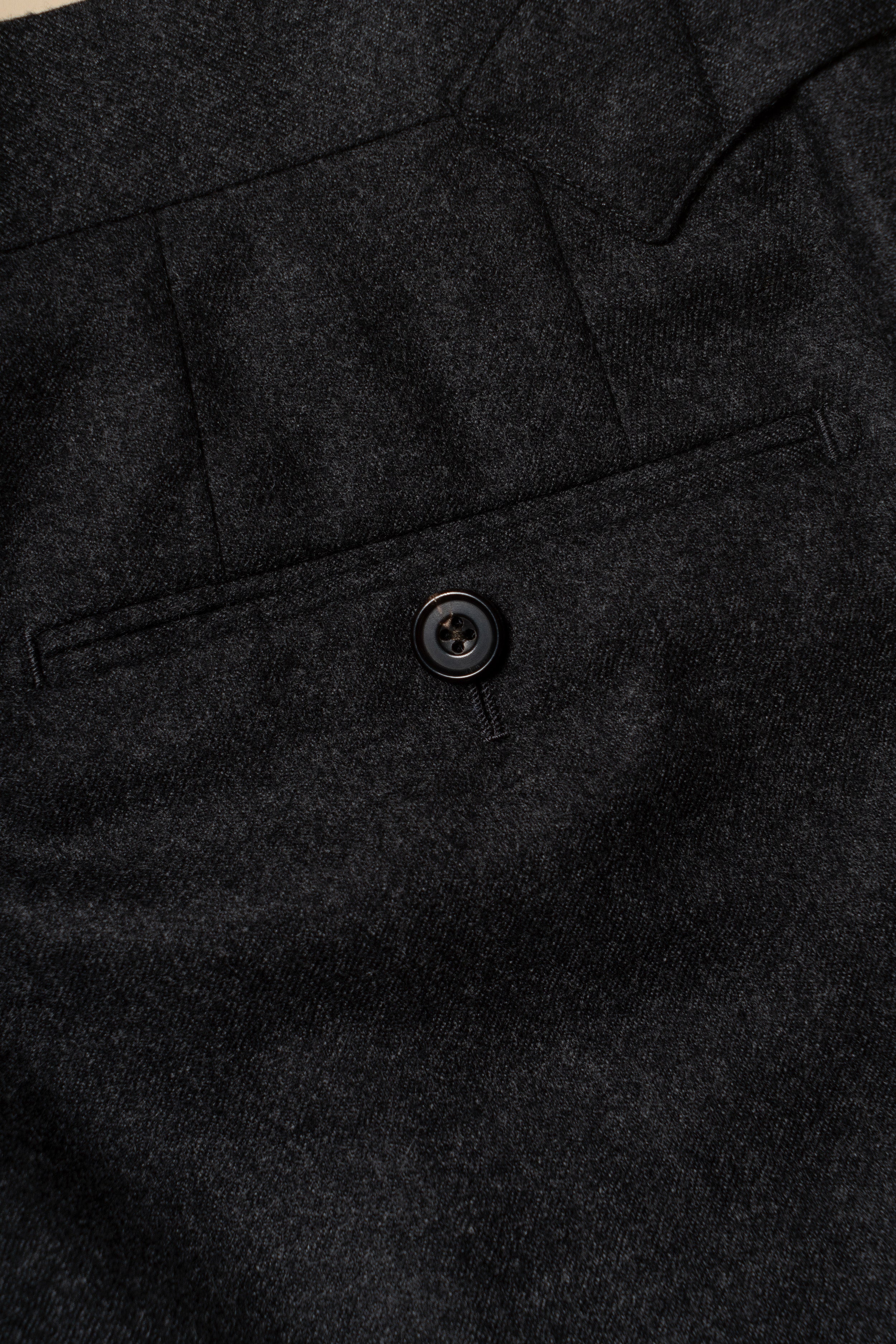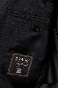 • Crafted from Drago’s “Rugby Flannel” collection, this charcoal twill suit exemplifies refined versatility and enduring elegance. The tightly woven wool flannel provides warmth, resilience, and a smooth hand-feel, while the twill structure enhances the fabric’s natural drape. Its deep charcoal hue makes it a timeless essential for both professional and formal occasions.