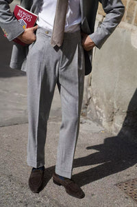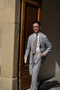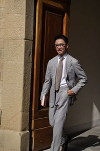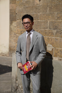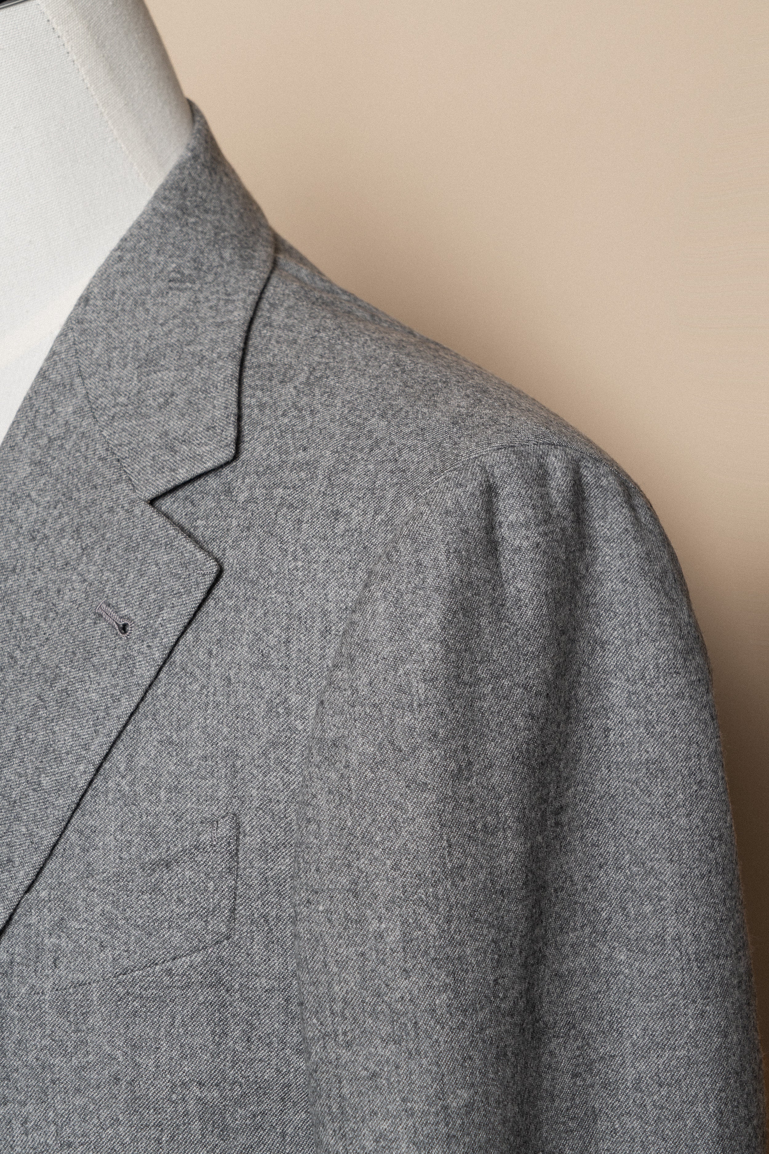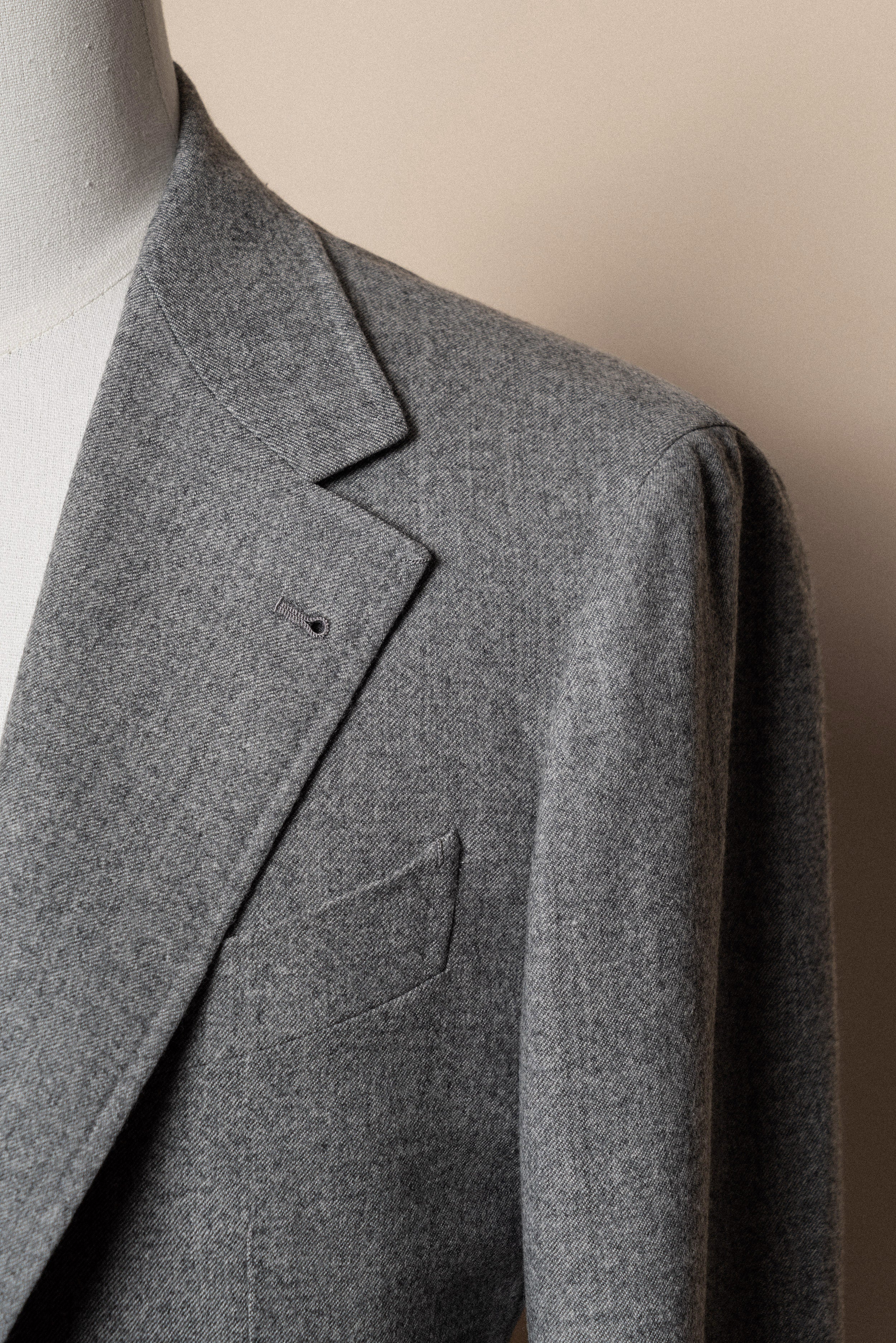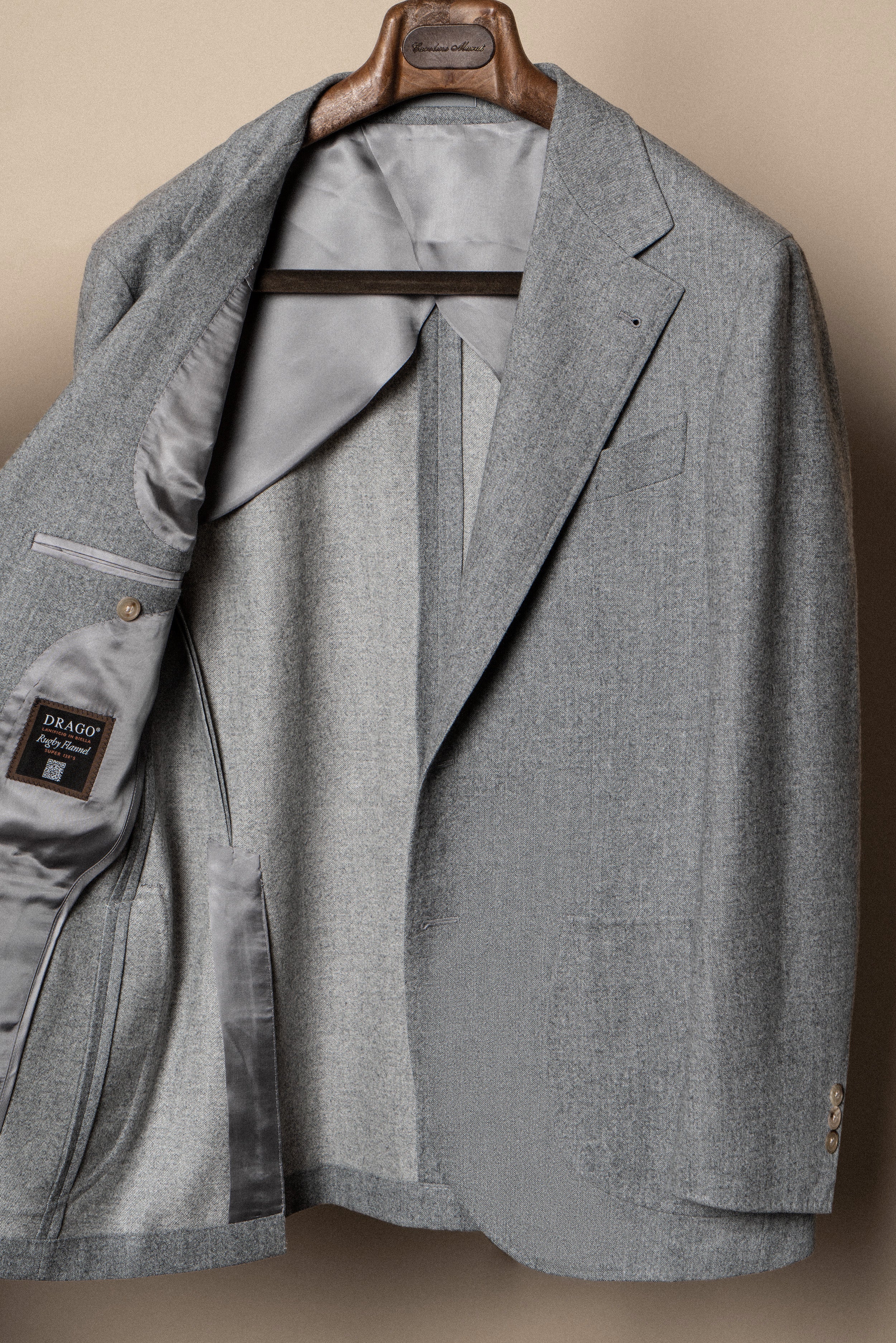 • Crafted from Drago’s “Rugby Flannel” collection, this grey mélange twill suit blends classic tailoring with a modern, tactile appeal. The dense wool flannel offers structure, warmth, and a refined drape, while the mélange tone adds depth and versatility—ideal for both business and sophisticated casual wear.